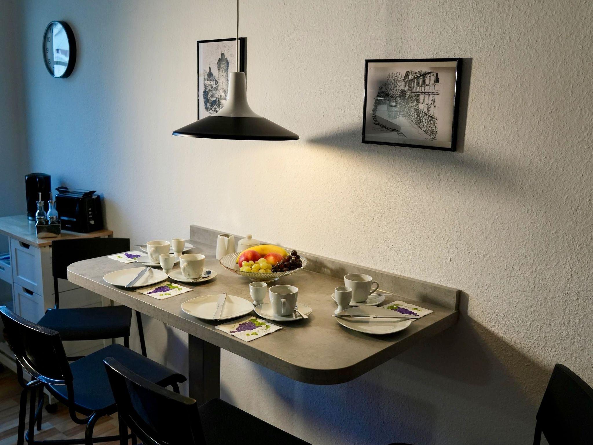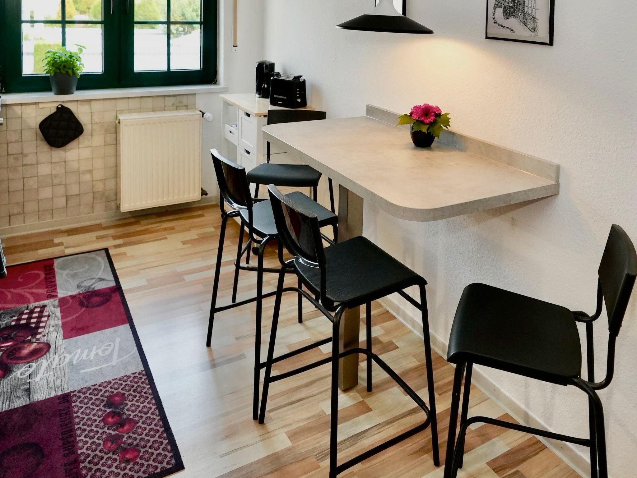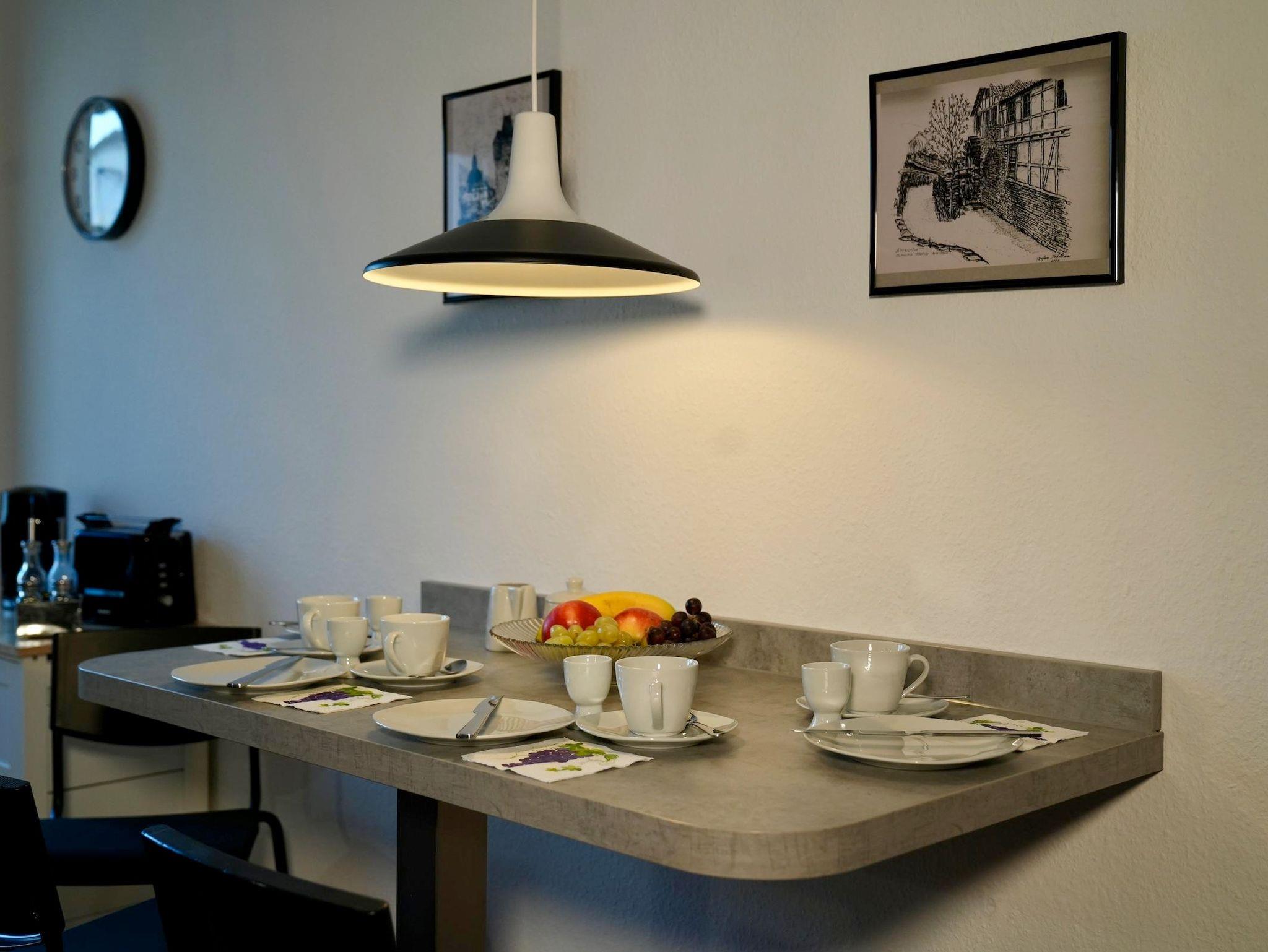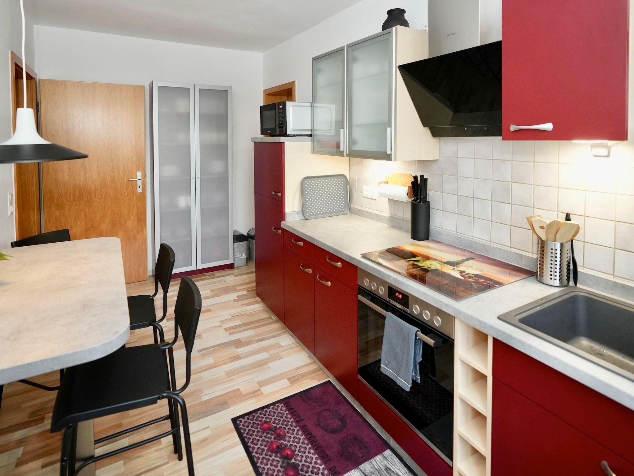 Die moderne Küche bietet allen Komfort für gemeinsames Kochen und einen Plausch am Tisch. Eine Grundausstattung an Gewürzen etc. (Salz, Pfeffer, Zucker, Curry, Paprika, Kräuter, Öl, Essig) ist vorhanden. Kaffeepads für die Kaffeemaschine liegen bereit.