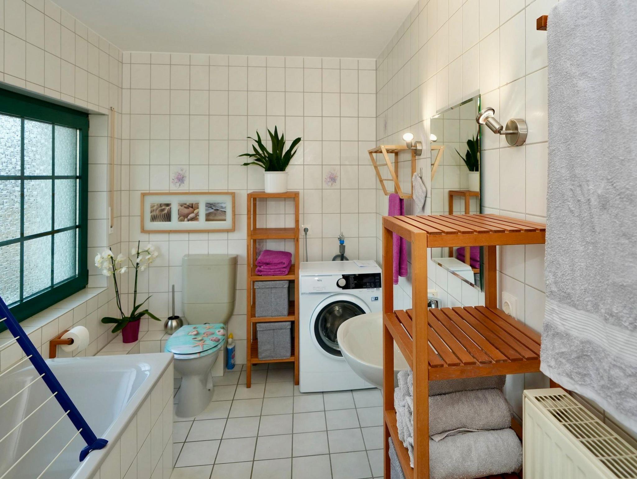 Das geräumige Badezimmer bietet eine Dusche und eine Badewanne für ein Entspannungsbad. Eine Waschmaschine ist vorhanden. Ausreichend Handtücher, Fön, Toilettenpapier, Handseife, Waschpulver sind inbegriffen.