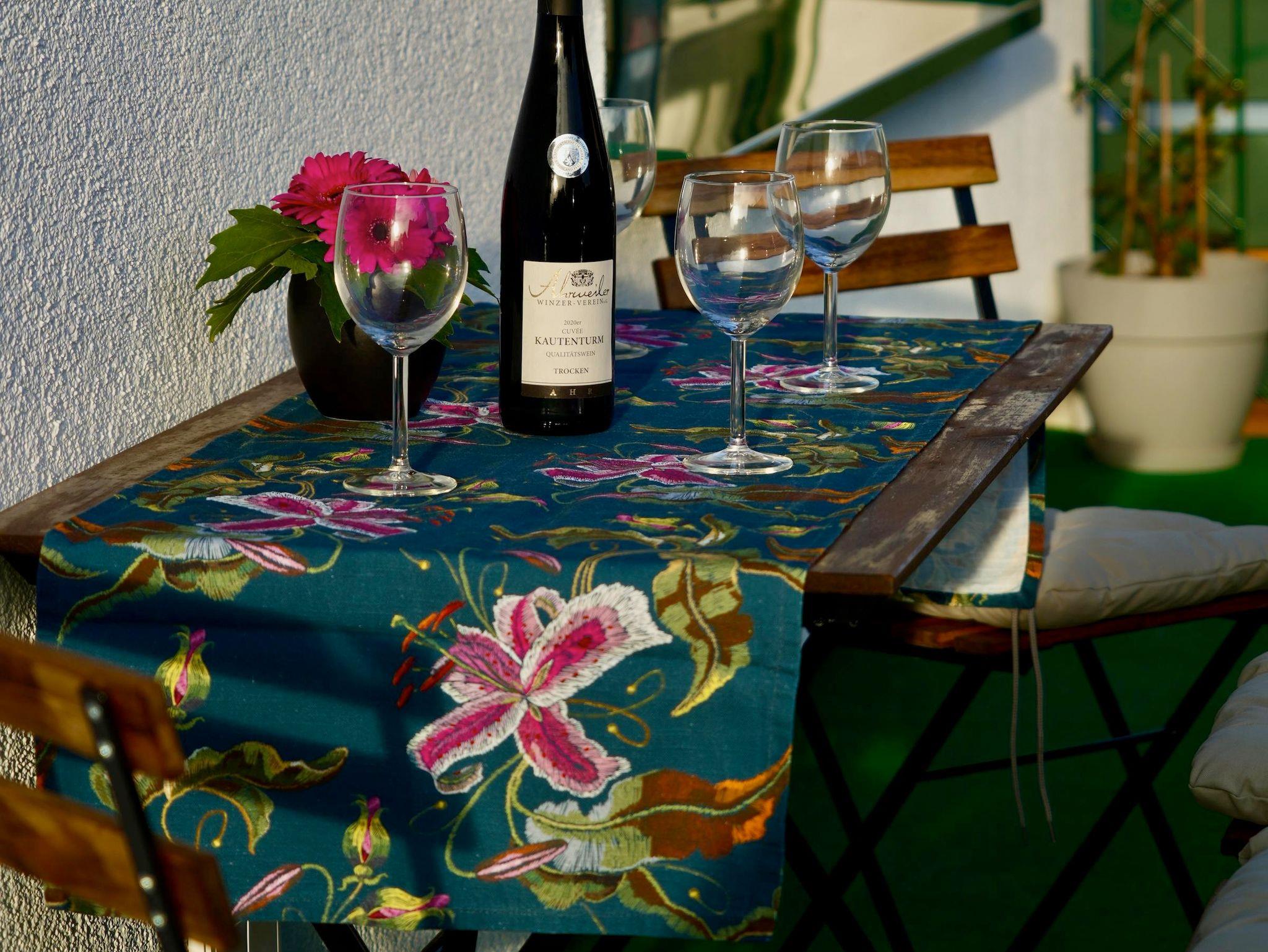 Wir heißen Sie mit einer Flasche Wein des Ahrweiler Winzervereins in unserer neu gestalteten Ferienwohnung herzlich willkommen!
