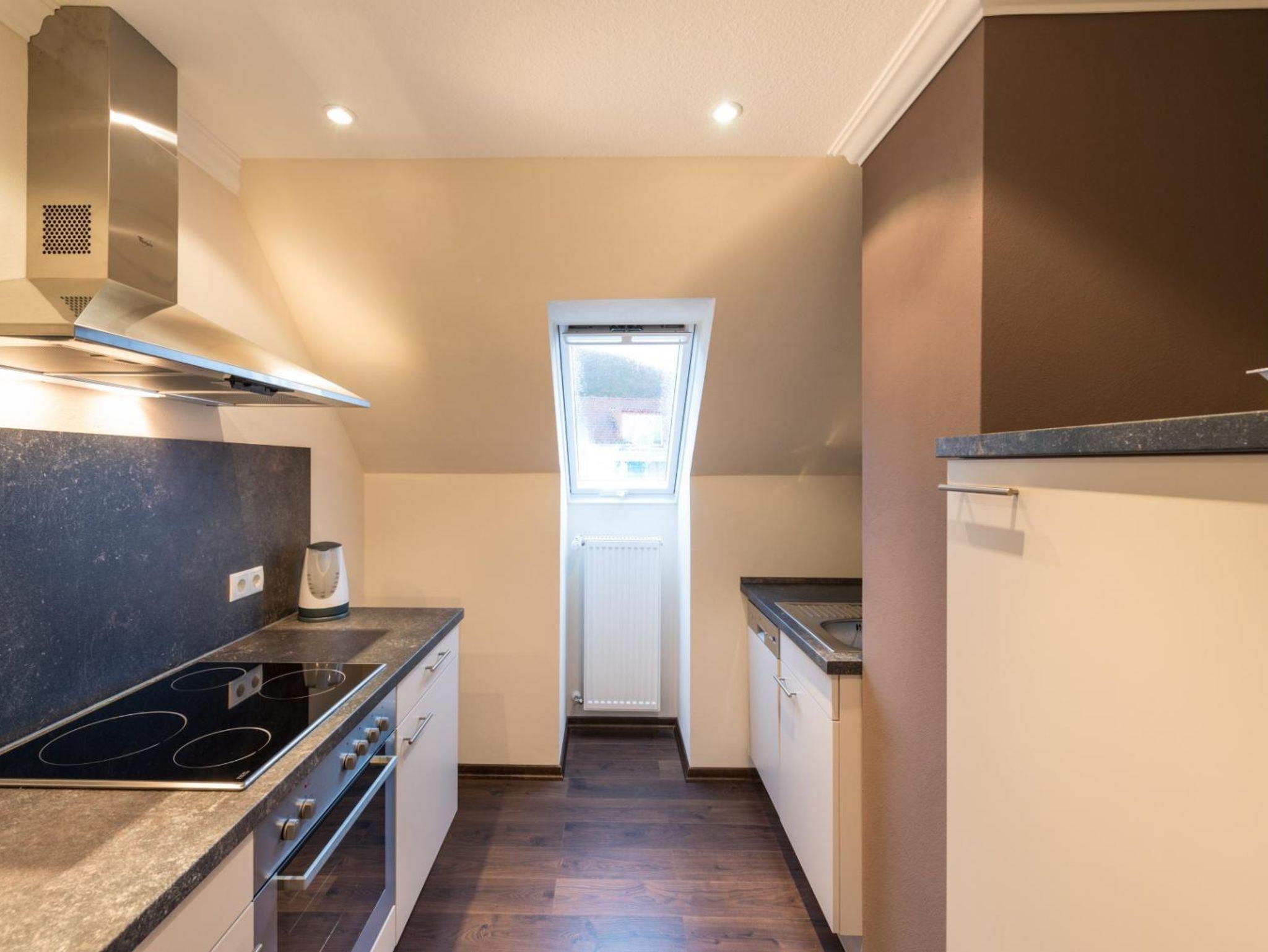 Die voll ausgestattete Küche lässt keine Wünsche offen und ist mit einem Herd, einem Backofen, einem Kühlschrank mit Tiefkühler, einer Filterkaffeemaschine, einem Wasserkocher und einem Toaster ausgestattet – perfekt für die Zubereitung kulinarischer Köstlichkeiten.