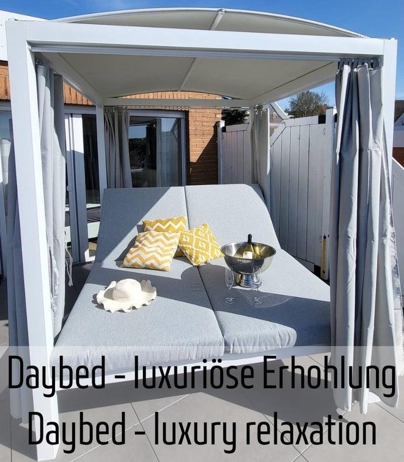 Die Siematic-Küche bietet alles, um sich selbst zu verpflegen. Relaxen können Sie sich auf der Terrasse, die für schlechtes Wetter einen Wintergarten hat. Zu allen Jahreszeiten strahlt unser Appartement seinen ganz besonderen Zauber aus.