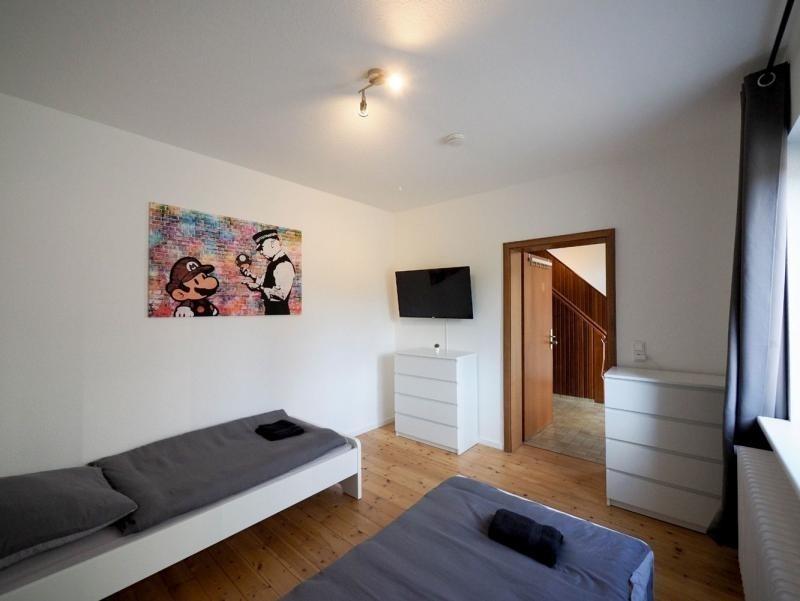 Voll möblierte Monteurwohnung für bis zu 6 Personen in Bad Oldesloe, Nähe Hamburg & Lübeck. 3 Schlafzimmer mit Einzelbetten & Smart-TV, WLAN, Gemeinschaftsküche mit abschließbaren Schränken, Bad mit Dusche, zusätzliches Gäste-WC, zentrale ruhige Lage.