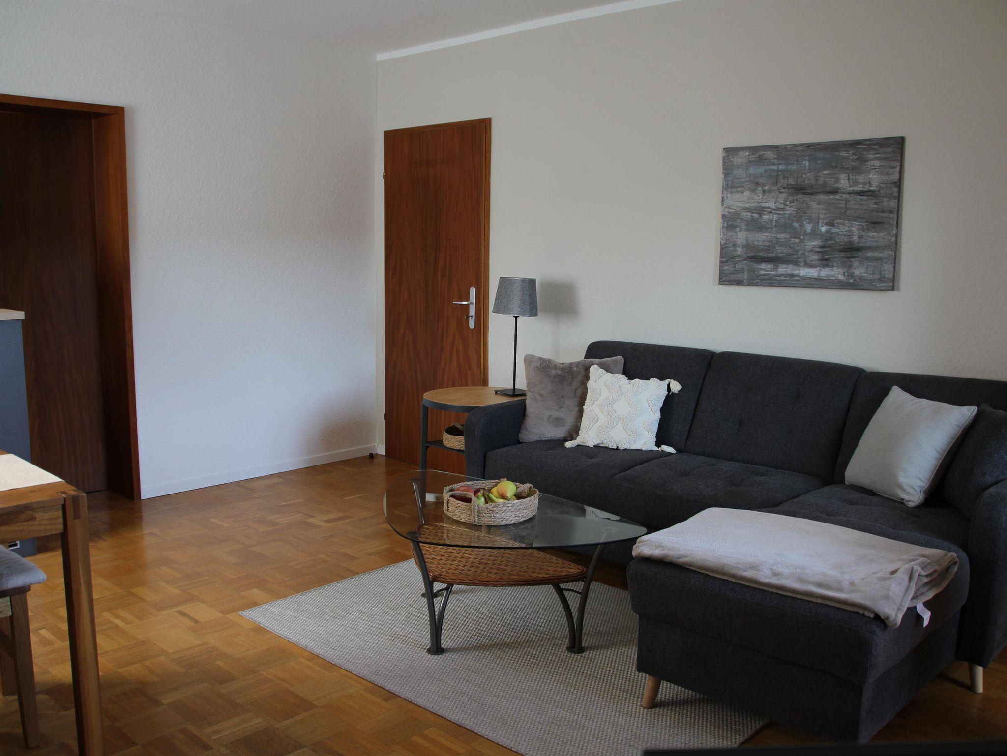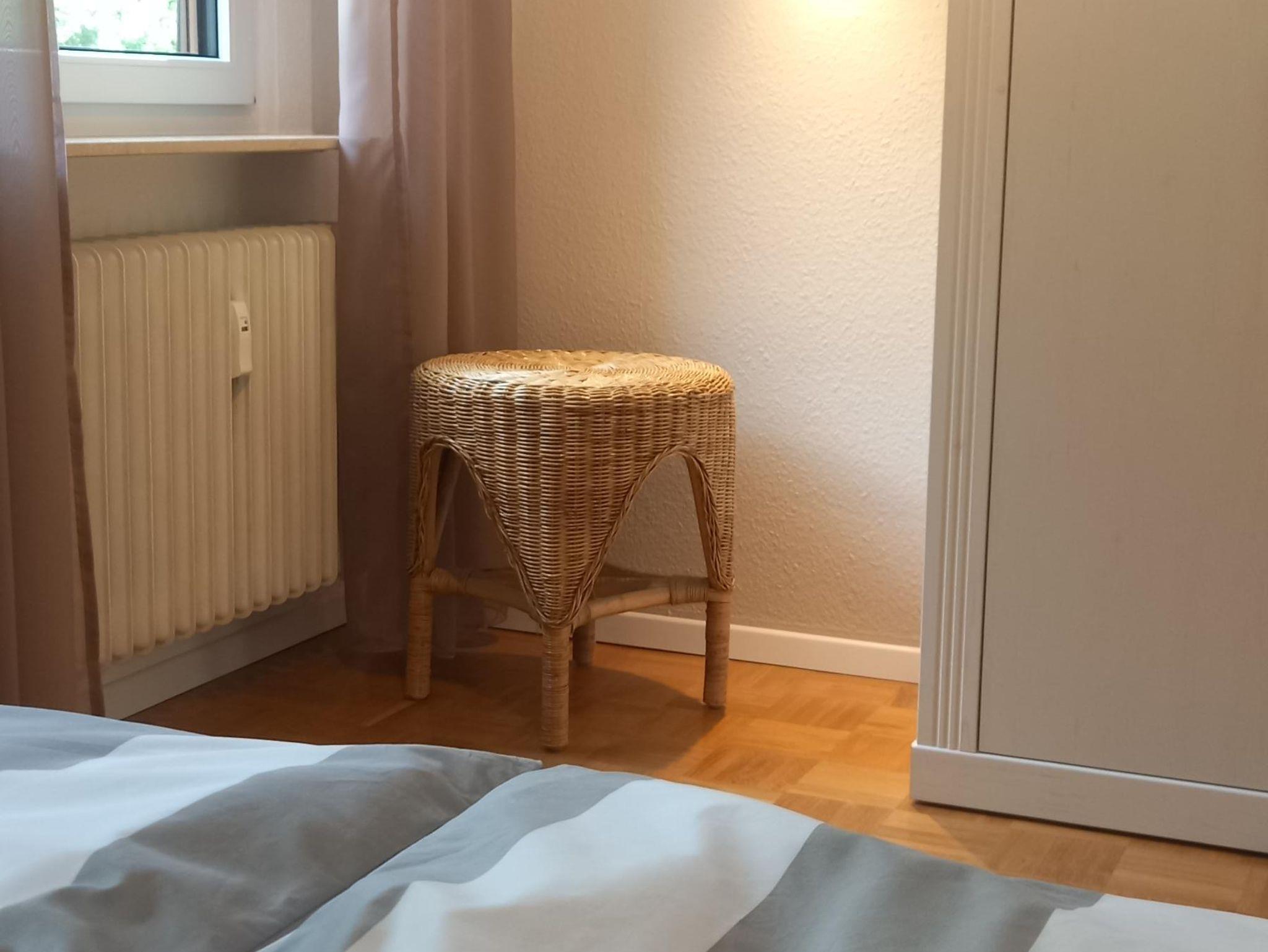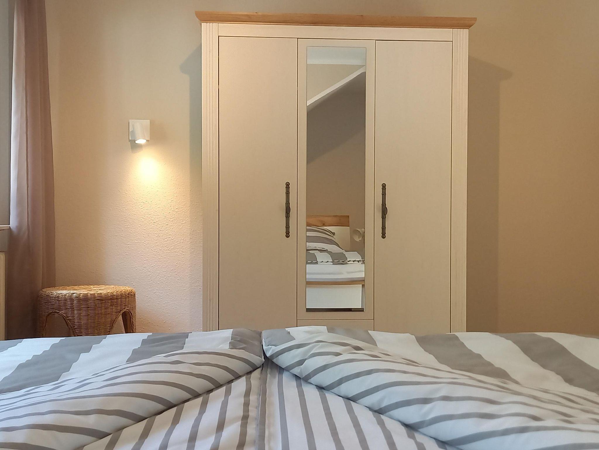 The apartment is 50 square meters and consists of a hallway, a large bedroom with a double bed (180x200 cm), a make-up table, a wardrobe and a cozy little seating area by the window. Living room, dining area and kitchenette are housed in a separate large room. The sofa is extendable (130 x 200 cm). From there it goes into the bathroom with sink, toilet and shower including hair dryer. You will find everything you need for your holiday in the small kitchen. A large refrigerator with freezer compartment, a 2-ring ceramic hob, a microwave, a toaster, a kettle and a coffee machine (Senseo) are also available. Tea, some coffee pats, canned milk and a bottle of water are ready for you. From the south-facing living room you can access a small balcony with a wonderful view of nature and the spa park/the town of Bad Orb. The price includes bed linen, towels, 2 bathrobes and laundry for the kitchen. You can park your vehicle free of charge in the courtyard (depending on the size, please ask when booking) directly in front of the front door. Smoking in the apartment is not permitted.