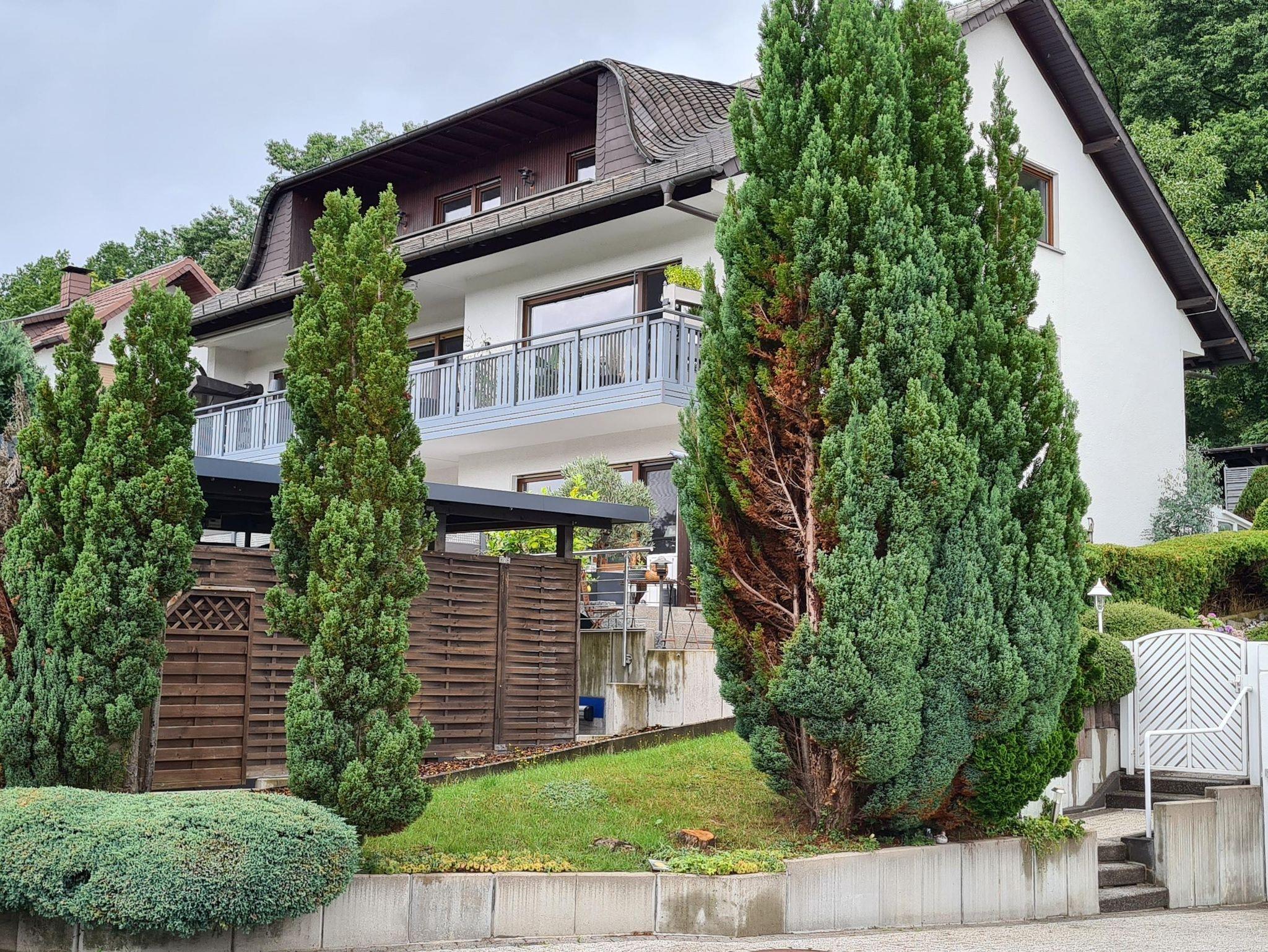 Die Ferienwohnung liegt im Dachgeschoss des 3-Familien-Hauses direkt am Waldrand von Bad Orb.