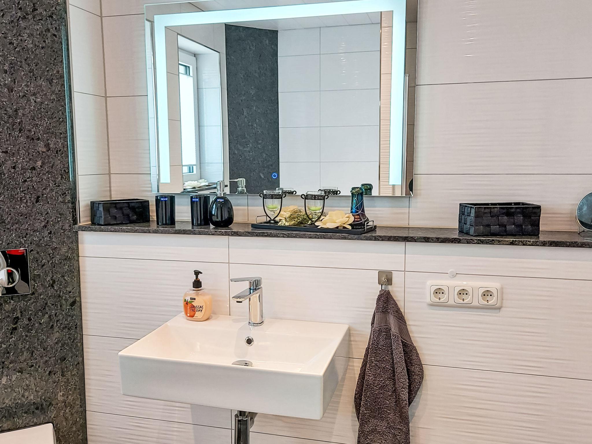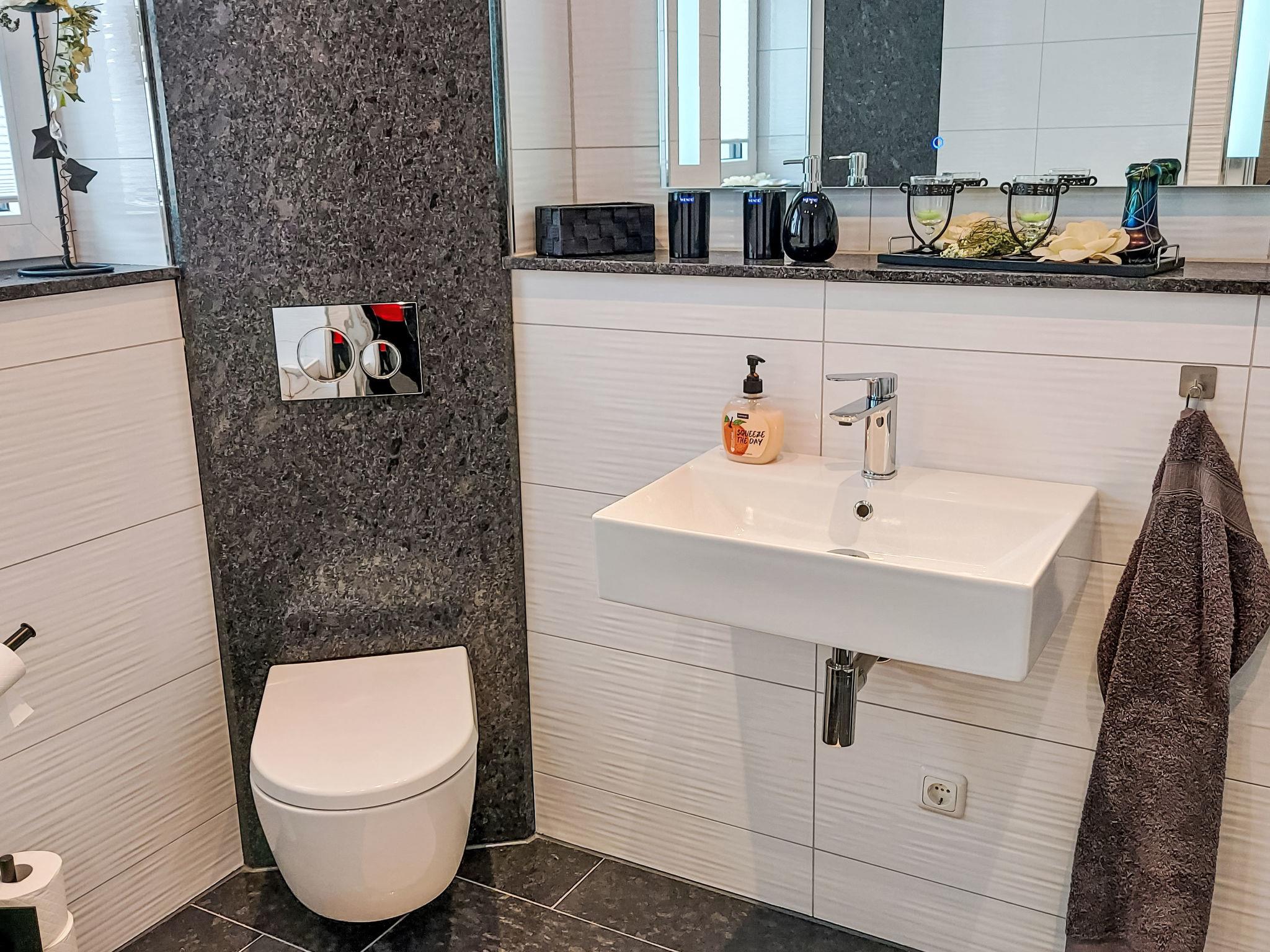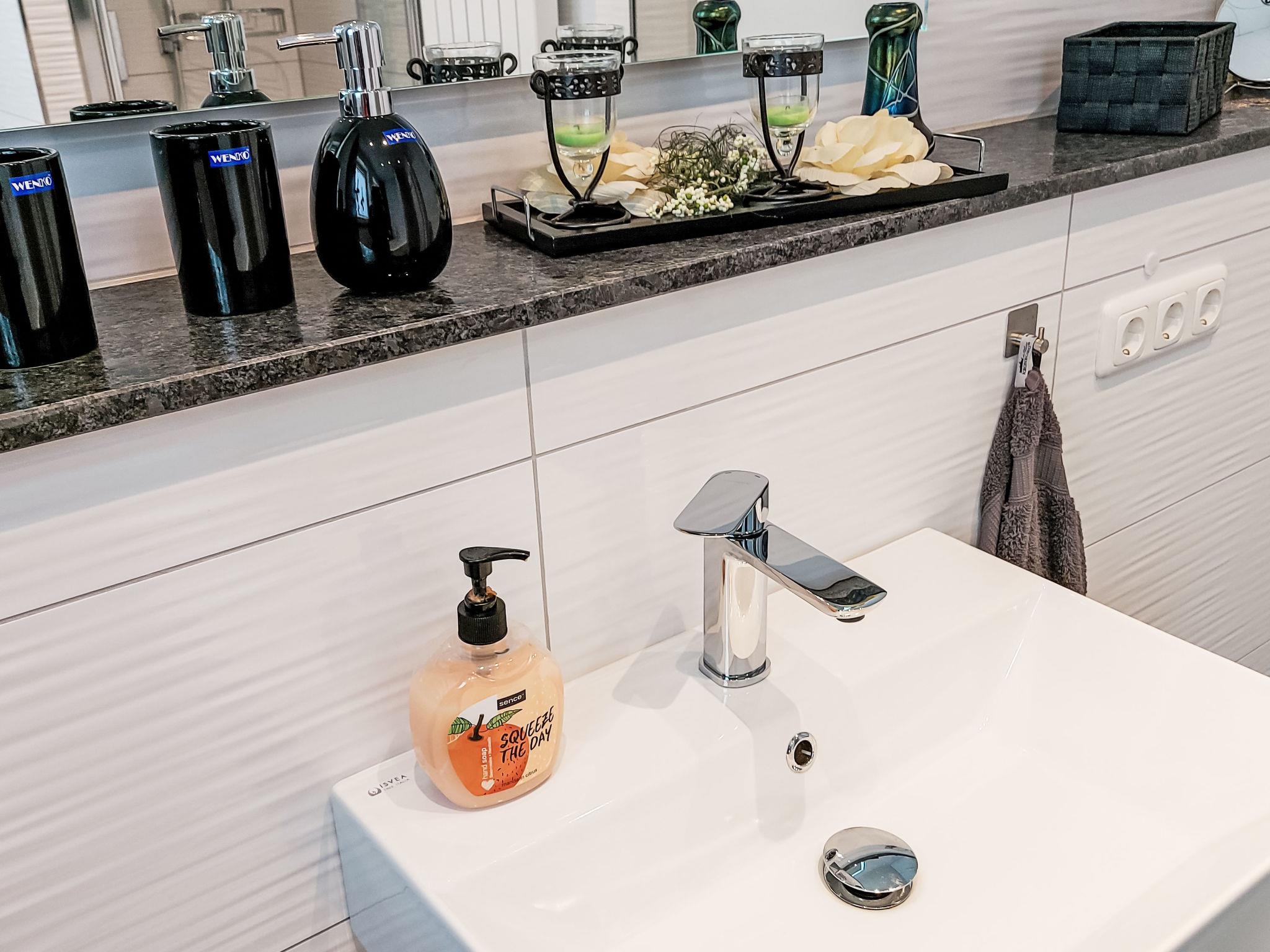 "Mariella", 2-room apartment 65 m2, on the ground floor. Renovated in 2024, comfortable and modern furnishings: living/dining room with satellite TV (flat screen). Exit to the terrace. 1 room with 1 double bed and satellite TV (flat screen). Kitchen (oven, dishwasher, 4 ceramic glass hob hotplates, toaster, kettle, microwave, freezer, electric coffee machine) with dining table. Bath/shower/WC. Solar energy heating. Balcony 9 m2. Balcony furniture, deck chairs (2). Facilities: children's high chair, baby cot. Internet (WiFi, free). Please note: non-smokers only. Smoke alarm, fire extinguisher.