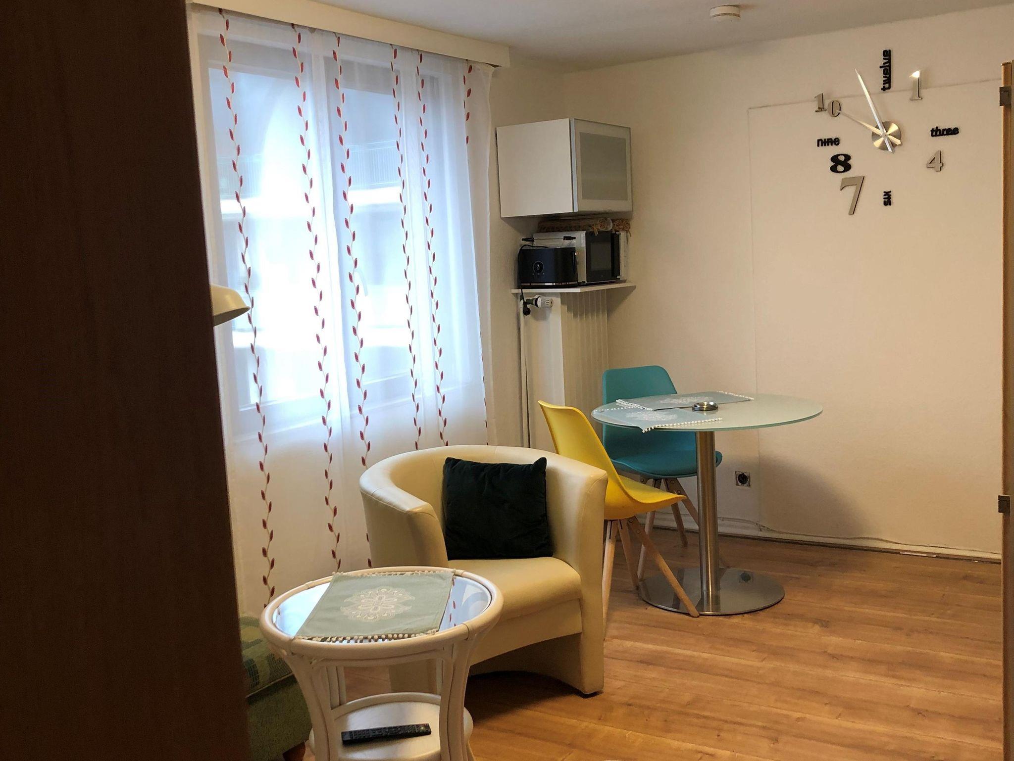 Das 2-Raum Appartement Nr. 11 liegt in der 2. Etage und verfügt über ein Schlafzimmer mit Doppelbett, einen Wohnraum, einen Essplatz, eine kleine Küche, ein Badezimmer mit Du/WC. TV im Wohnzimmer und auch im Schlafzimmer bieten Abwechslung. Das Appartement wurde Anfang 2022 fertiggestellt und ist komplett neu eingerichtet. Es besticht durch seine behagliche Atmospähre und der mit sehr viel Liebe zum Detail gewählten Einrichtung. Ideal für einen Kur- oder Urlaubsaufenthalt oder auch für eine längere Geschäftsreise gibt es im Appartementhaus Blume eine Waschmaschine sowie einen Trockner zur eigenen Benutzung gegen eine kleine Gebühr. Ihr Auto steht auf den hauseigenen Parkplätzen entweder direkt am oder hinter dem Haus.