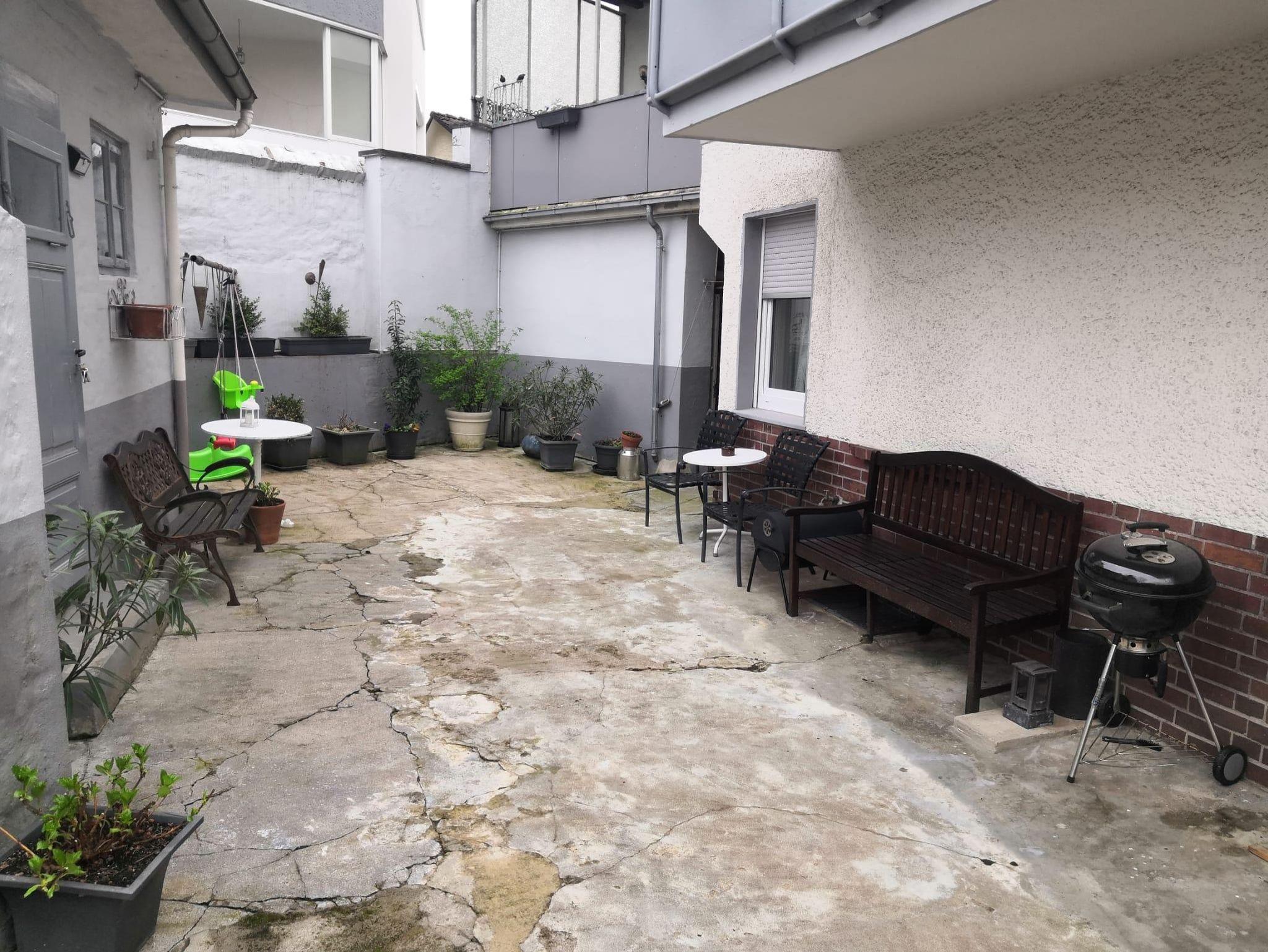 Ausstattung, Balkone in oberen Etagen, idyllischer Hof mit Grillmöglichkeiten und schöne Terrasse vor dem Haus sind sehr beliebt. Baby-Reisebett mit Bettwäsche und ein