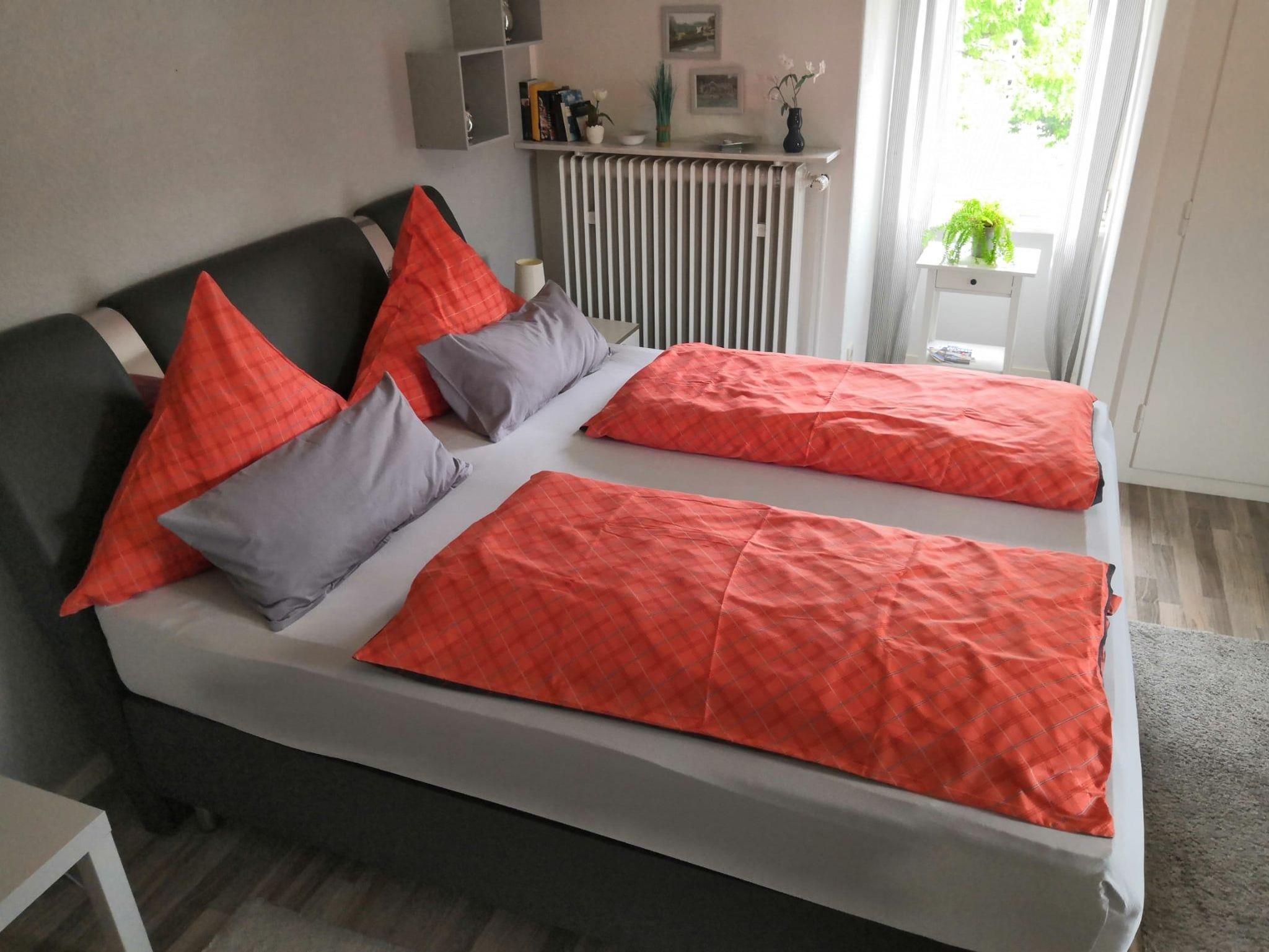 Betten für 2 Personen: ein Doppelbett/Boxspringbett (180x200) im Schlafzimmer. Beim Bedarf kann auf Nachfrage 1 Babyreisebett mit Decke, Kissen und Bettwäsche (0-3 Jahre) mit einmaligem Aufpreis von 15€ zur Verfügung gestellt werden.