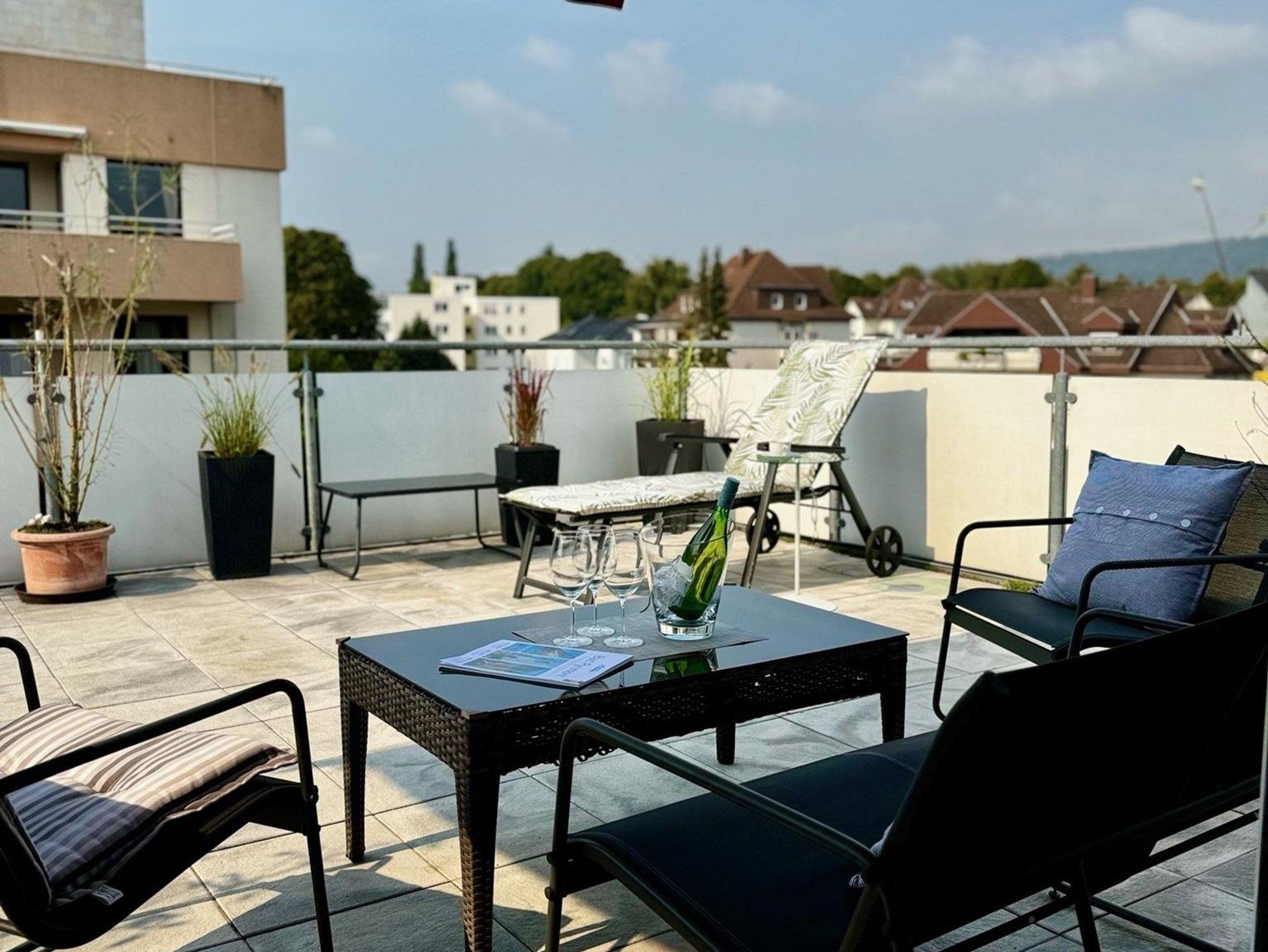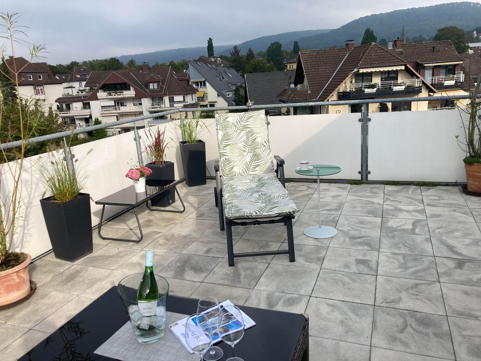 Die frisch renovierte Ferienwohnung mit Balkon und überaus großzügiger Dachterrasse lädt zum Träumen, Relaxen und Sonnenbaden ein. Sie liegt im dritten Stock einer gepflegten Wohnanlage im Zentrum von Bad Pyrmont und verfügt über einen Fahrstuhl. In wenigen Gehminuten erreichen Sie die Innenstadt, den Kurpark und das Freizeitbad „Welle“. Die 63 m² große Wohnung teilt sich in zwei Zimmer, Küche und Duschbad und ist mit allen Annehmlichkeiten, u.a. WLAN, ausgestattet. In der Küche finden sich Kühlschrank, Backofen, Mikrowelle, Kaffeemaschine und ein Geschirrspüler. Das Wohnzimmer verfügt über eine großzügige Sofalandschaft mit großem Flachbild-TV und einem Essbereich. Das Schlafzimmer mit Boxspringbett bietet Gelegenheit für einen erholsamen Schlaf. Im modernen Tageslichtbad findet sich eine ebenerdig zugängliche Dusche. Auf der sonnigen Dachterrasse befinden sich eine bequeme Sitzgruppe und eine Sonnenliege.