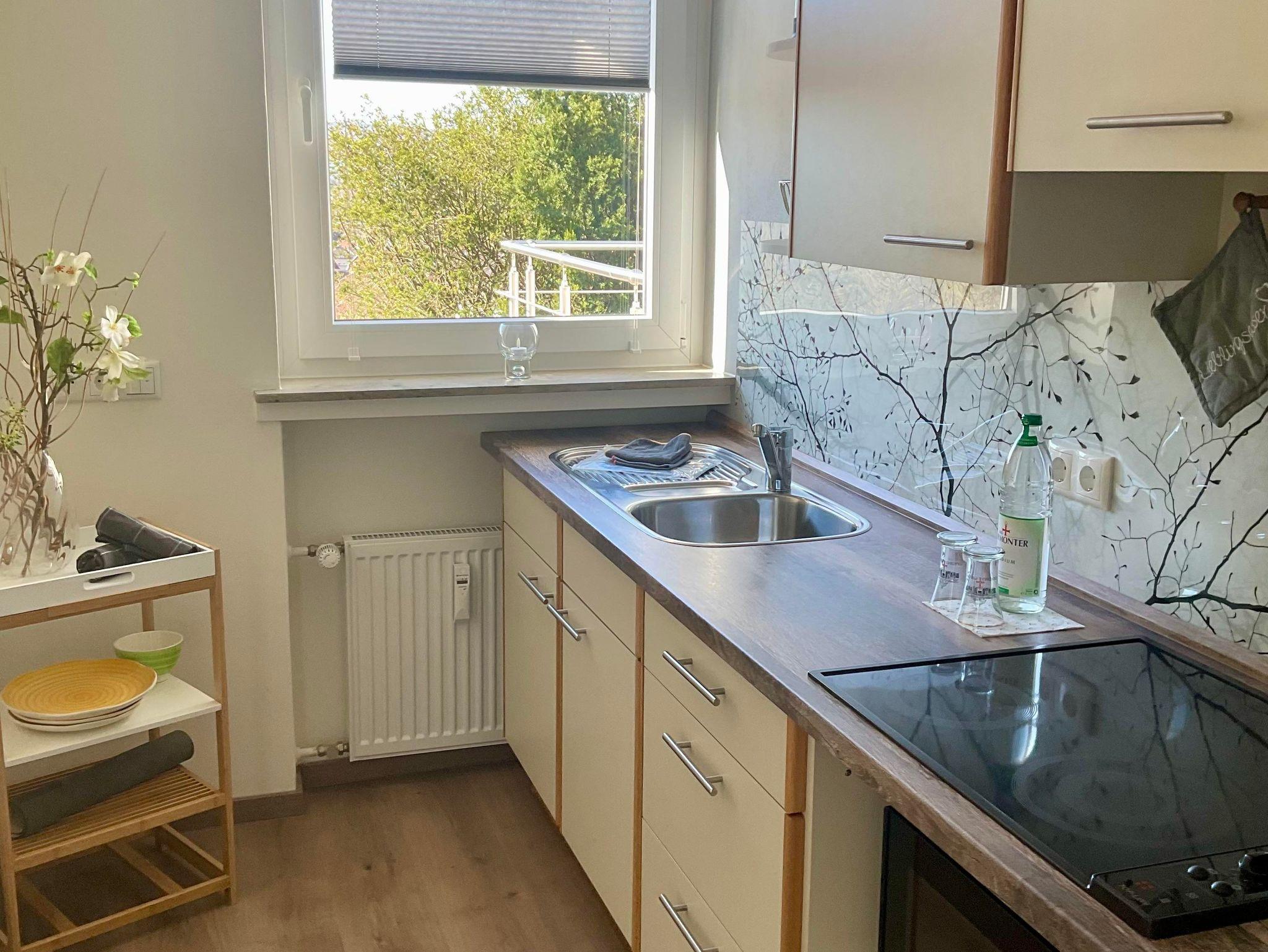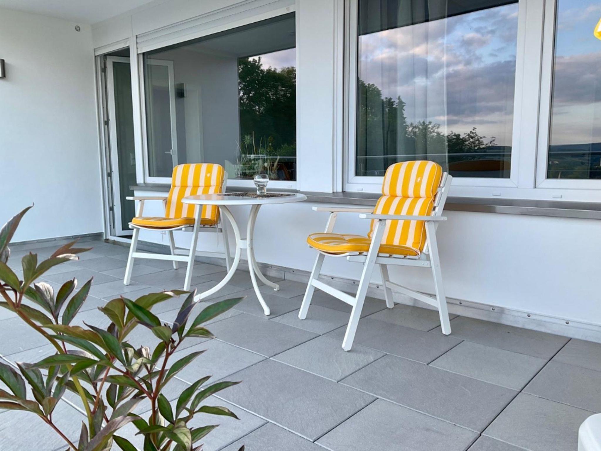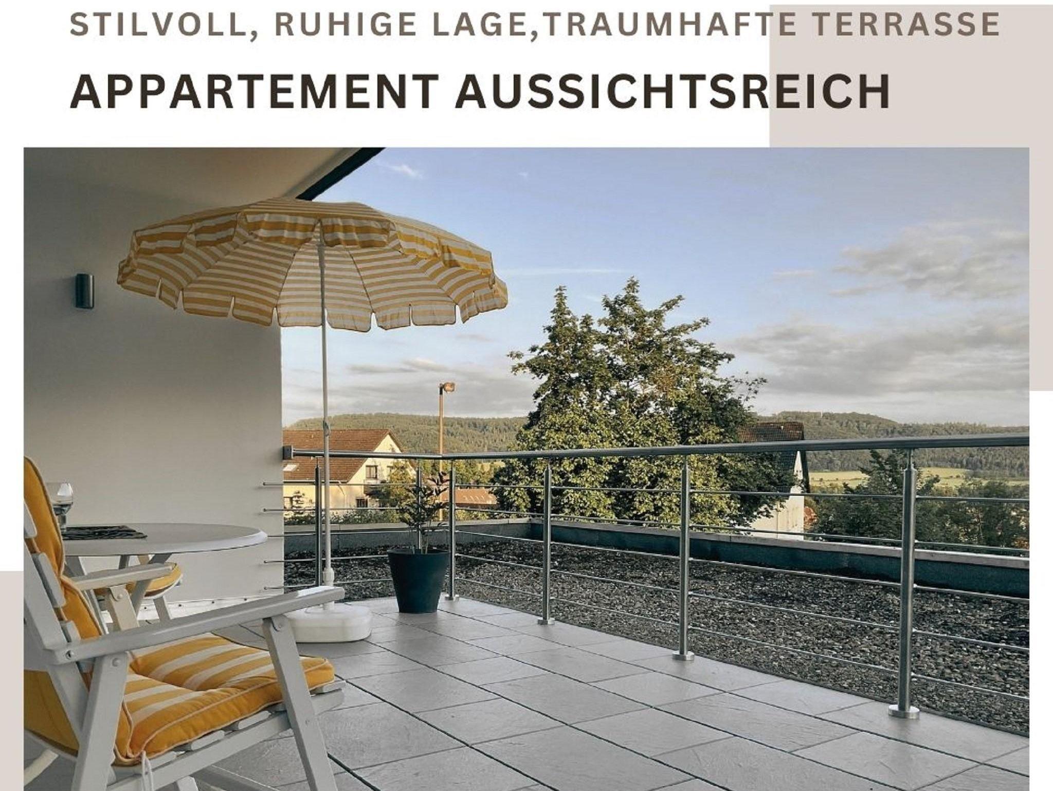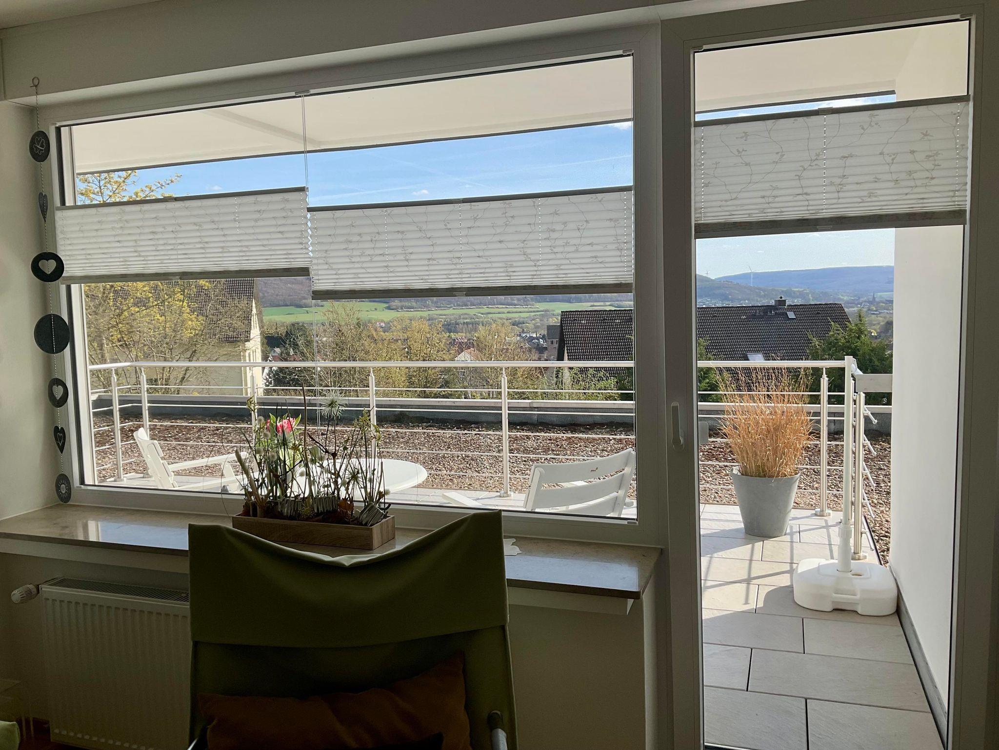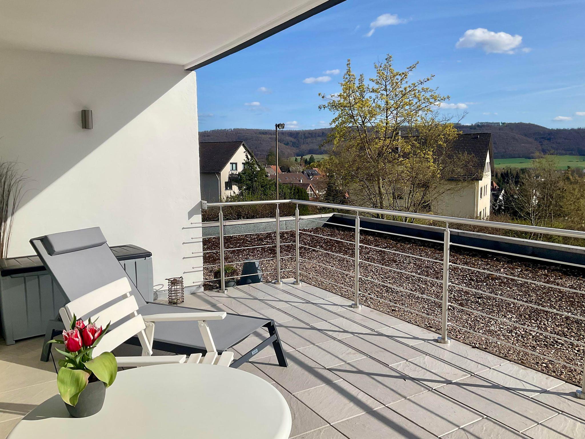 Ferienwohnung Aussichtsreich: Entspannung Pur! Das stilvolle, helle und moderne Appartement, 43qm, befindet sich in erster Etage,mit großer Terasse, direkt am Dunsthöhlenpark.