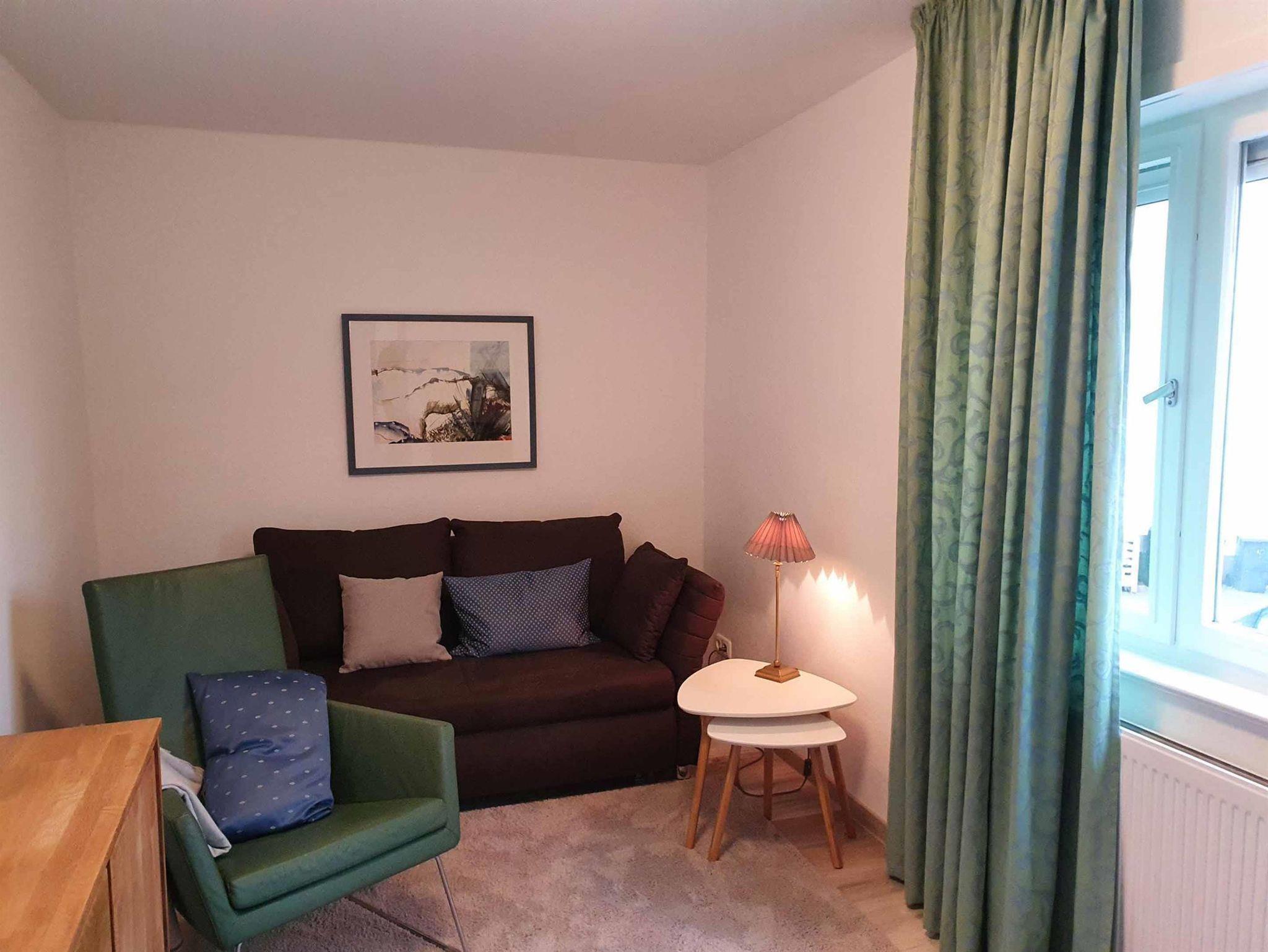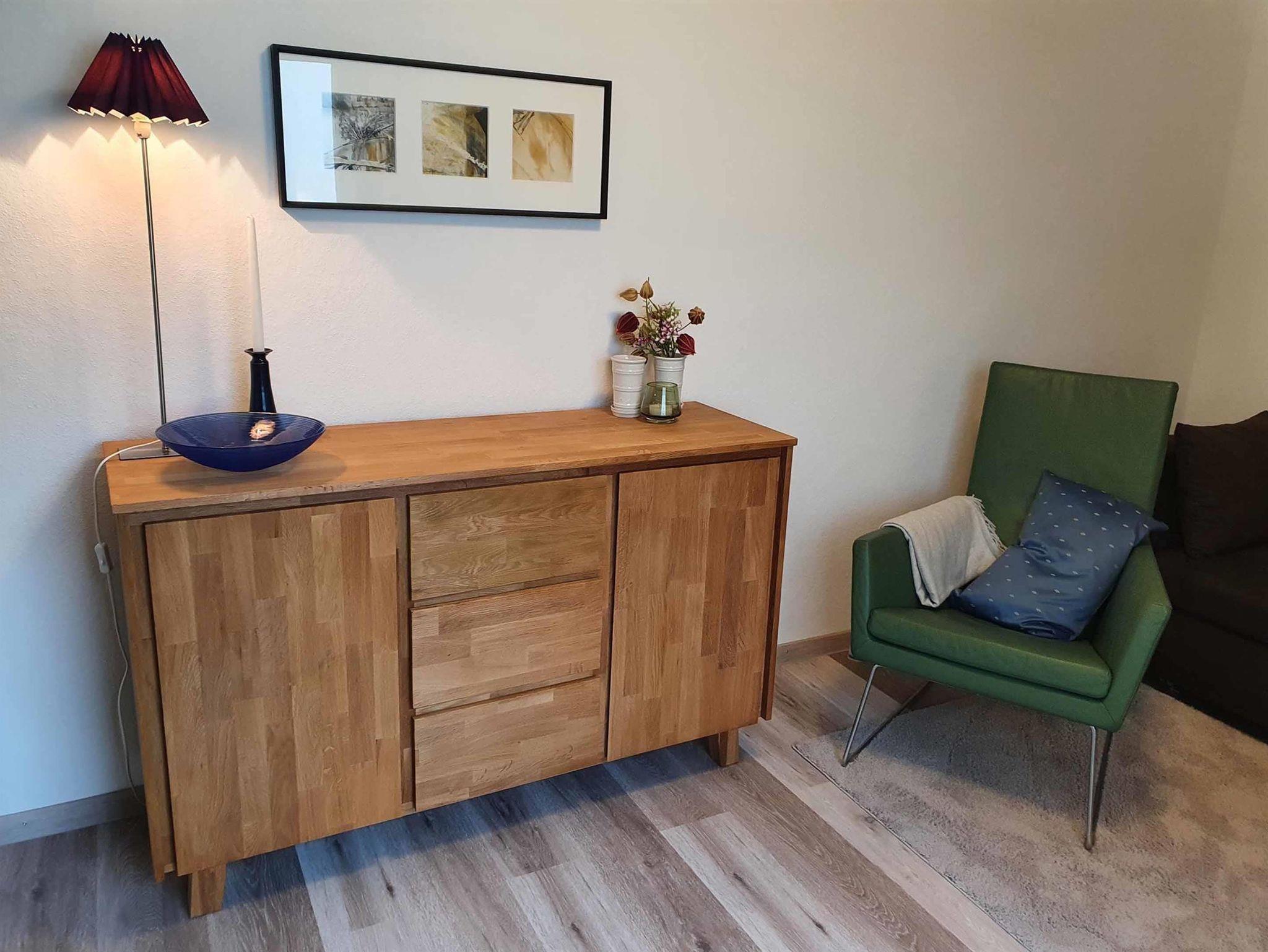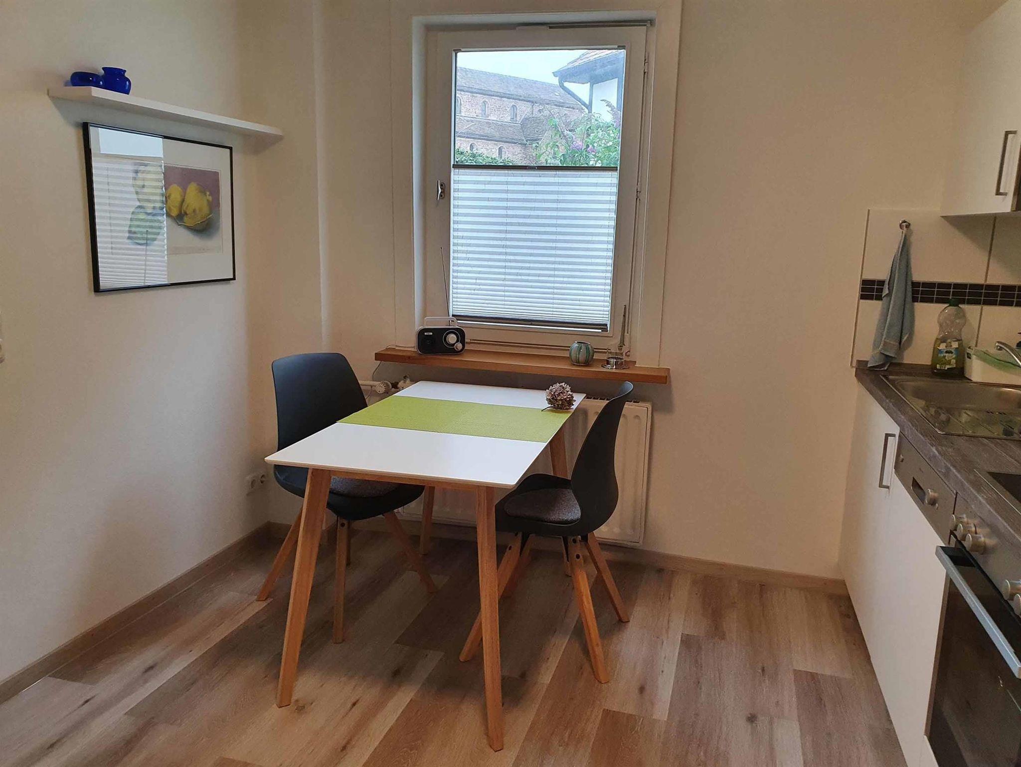 Unser barrierefreies, komplett renoviertes und geschmackvoll eingerichtetes Fachwerkhäuschen in zentraler Lage umfasst ca. 65 qm und bietet ausreichend Platz für 2 Personen. Im großzügigen Eingangsbereich befinden sich Garderobe, Sitzbank und ein großer Spiegel. Das Wohnzimmer ist ausgestattet mit Sofa, Sessel, Anrichte sowie Sat -TV. Die komplett ausgestattete Küche mit Geschirrspüler, Mikrowelle, Kaffeemaschine, Wasserkocher, Toaster bietet einen schönen Sitzplatz am Esstisch vor dem Fenster. Das Schlafzimmer mit Doppelbett (je 80 x 200), 2 Konsolen, großem Kleiderschrank ist zum ruhigen Innenhof gelegen. Im modernen Bad mit ebenerdiger Dusche, Handtuchheizkörper, Toilette, Waschtisch, Schrank und Fenster befinden sich Föhn, Vergrößerungsspiegel, Handtücher, Seife, Toilettenpapier. Im Schrank vor dem Bad sind Ersatzhandtücher deponiert. Waschmaschine incl. Waschmittel stehen Ihnen im Hauswirtschaftsraum zur Verfügung. Weiterhin befinden sich dort Wäscheständer sowie Gartenmöbel, die im Außenbereich aufgestellt werden können. Liegen und Grill stellen wir Ihnen gerne auf Wunsch zur Verfügung.