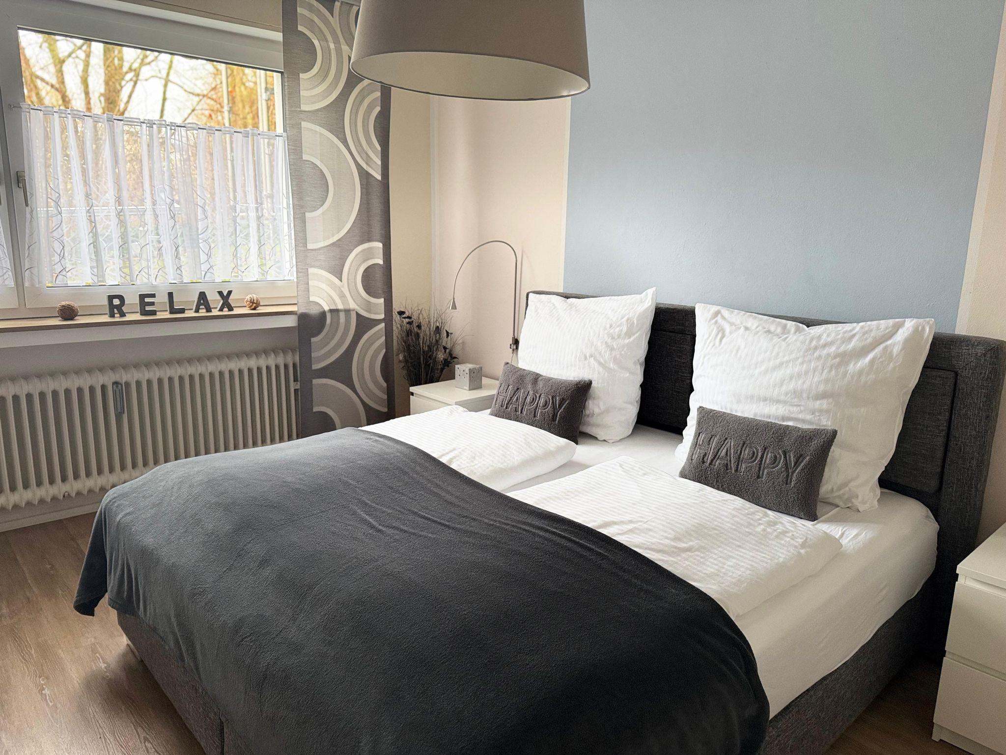 Die moderne Ferienwohnung lädt mit seinem modernen und komfortablen Charme zur Erholung ein. Vergessen Sie in der gemütlichen und mit Liebe zum Detail eingerichteten Wohnung den Alltag oder erholen Sie sich von Ihren Aktivitäten in und um Bad Pyrmont. Ein Komfort-Boxspringbett lädt zum Träumen ein und in dem großen Kleiderschrank und einer Kommode haben Sie viel Platz zum Verstauen Ihrer Garderobe. Zwei große Smart TVs befinden sich im Wohnbereich und im Schlafzimmer. Kostenloses Internet / WLAN rundet das Angebot ab. In der geräumigen Küche befinden sich ein Kühlschrank, Geschirrspüler, Ceranherd mit Backofen, Wasserkocher, Kaffeemaschine, hochwertiges Porzellan, Besteck, Gläser, Töpfe und Pfannen, sowie Grundgewürze, Kaffee und Tee. Im hochmodernen Dusche/WC-Bad befinden sich eine bodenebene Rain-Shower-Dusche mit separater Handbrause, Seife und Shampoo, ein Fön und ein Verbandsset sowie eine moderne Kunstinstallation für Ihre Handtücher. Wir stellen Ihnen Hand- und Badetücher, Bademäntel, Geschirrtücher, sowie sämtliche Hygienepapiere zur Verfügung. Der Wohn- und Essbereich bietet genügend Platz zur Entspannung und besticht durch sein sonnendurchflutetes Flair. Eine bequeme Sitzgruppe und ein antiker Tisch verbinden „Altes mit Modernem“. Geschmackvolle Ölbilder und Accessoires komplettieren den Gesamteindruck und unterstreichen das gemütliche Ambiente. Genießen Sie die Natur mitten in der Stadt und trotzdem im Grünen, auf der ruhigen und überdachten Terrasse auf bequemen Teakholzmöbeln. Sie finden bei uns Bettwäsche, Handtücher, Badetücher, Hygienepapiere, Seife, Shampo, Duschgel und noch vieles mehr vor. Das 62 qm große Apartment zeichnet sich durch seine zentrale Lage innerhalb von Bad Pyrmont aus. Durch die Hanglange bedingt, geht es erst einmal „abwärts“ für Sie, da sich das Apartment im zweiten Hausbereich im Parterre befindet. Sie gelangen über den Fahrstuhl oder eine Treppe hinab. Nun trennen Sie lediglich noch drei gut begehbare Treppenstufen von Ihrem Feriendomizil.