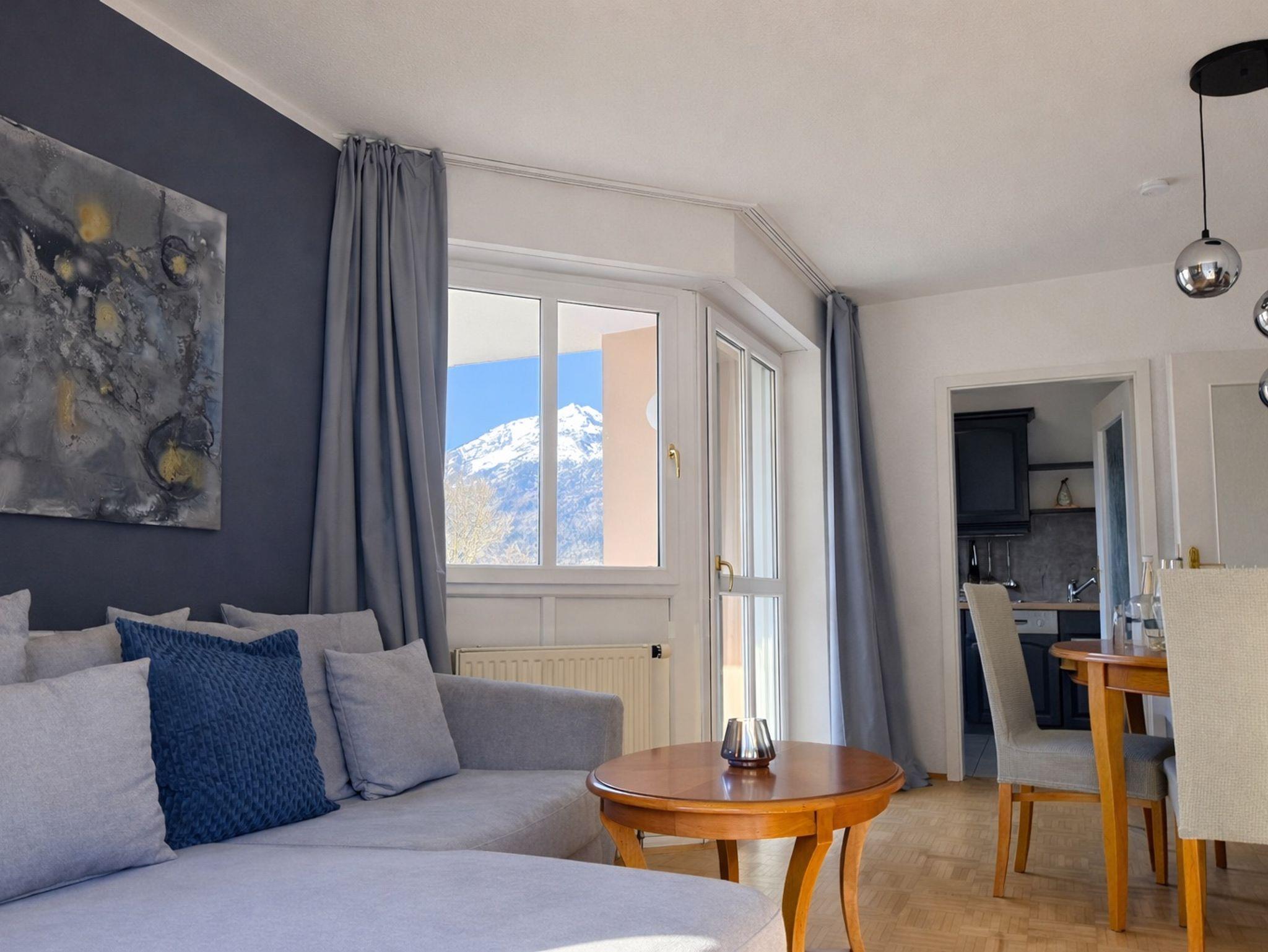 Unser schönes, gemütliches Apartment ist im klassisch- eleganten Stil eingerichtet. Die Wohnung befindet sich im 2. OG und verfügt über ein separates Schlafzimmer mit einem Doppelbett (Boxspringmatratzen - 1,80 x 2,00), ein Wohnzimmer mit Sofa und Essecke, eine voll ausgestattete Küche mit Geschirrspüler, sowie ein Bad mit Dusche/WC. Zur Wohnung gehören 2 Balkone, auf welchen Sie unter anderem auch auf unsere Alpenstadt mit Bergpanorama blicken können.