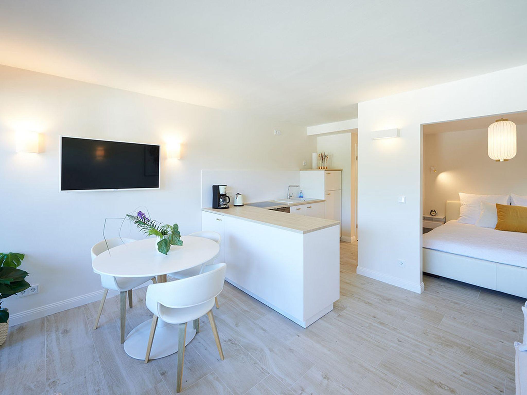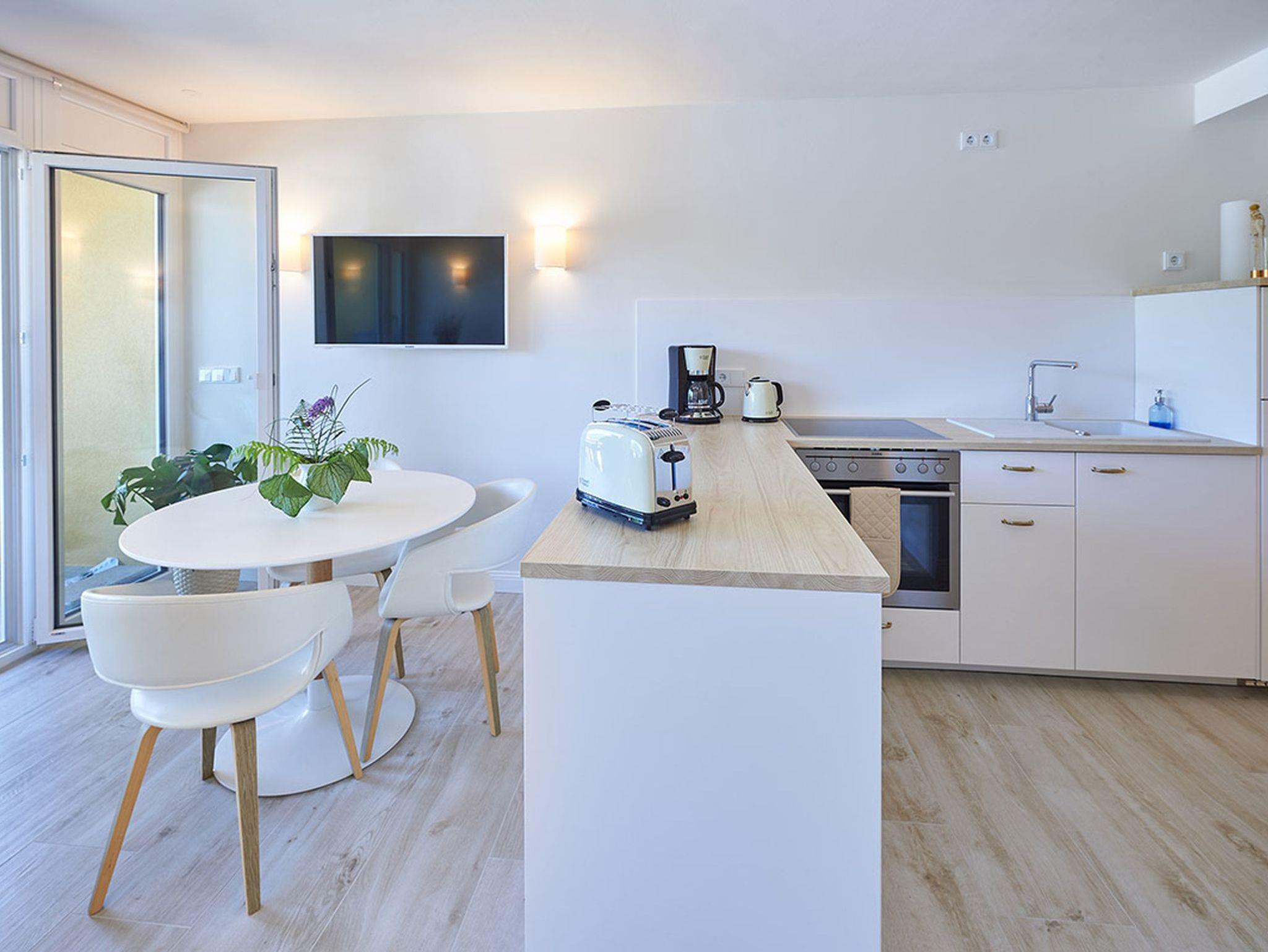 Die gut ausgestattete Wohnküche bietet alles, was Sie für die Zubereitung leckerer Mahlzeiten benötigen. Anschließend können Sie auf dem Balkon die Nachmittags- und Abendsonne genießen – mit einem Glas Wein und Blick in die Berge ein echter Genussmoment.