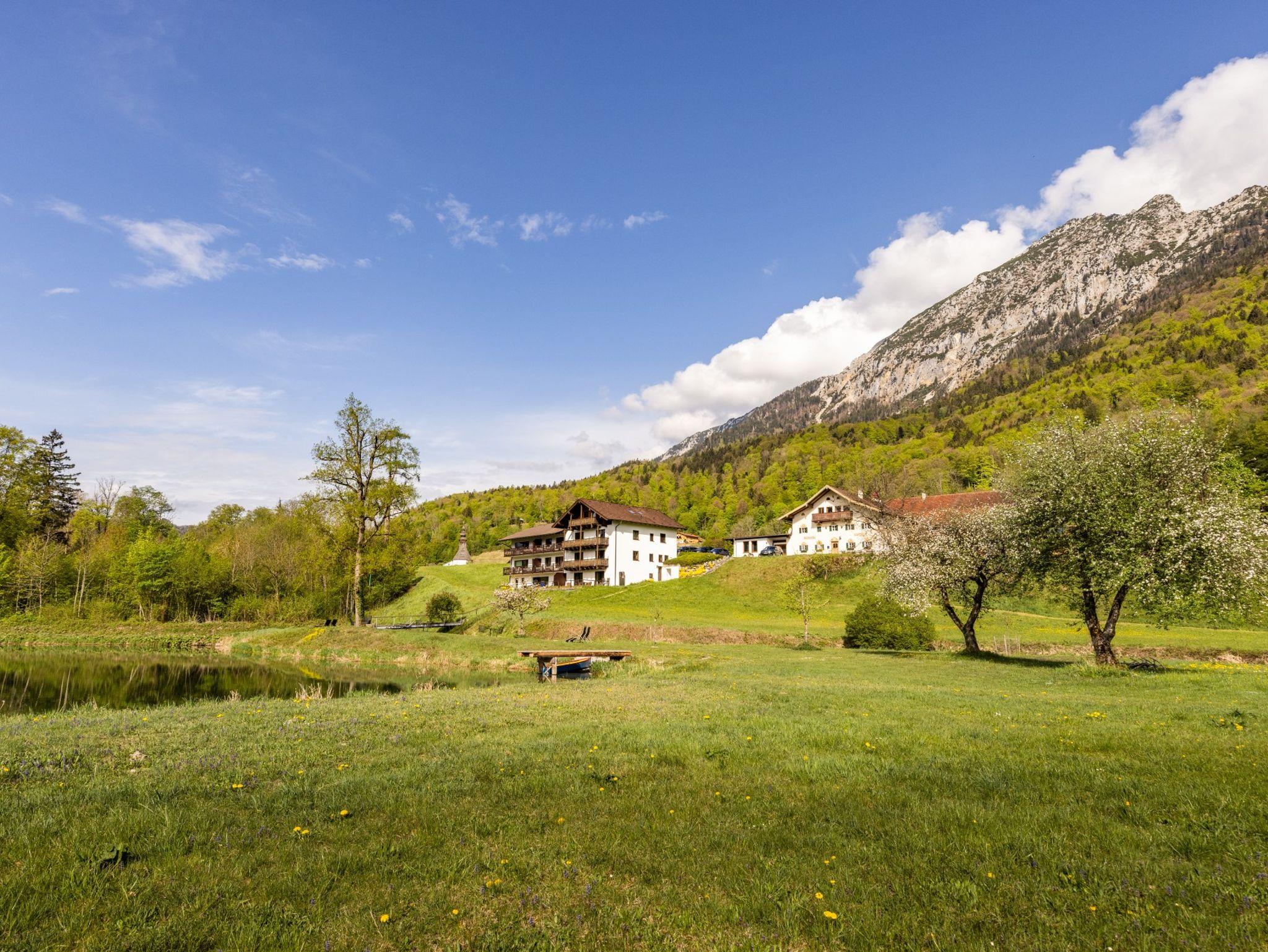 Der Gablerhof liegt außerhalb von Bad Reichenhall im sonnigen Ortsteil Nonn. Nah dran und doch ganz weit weg im Grünen mit eigenem Badesee. Unsere großzügigen, exklusiven Wohnungen mit lichtdurchflutetem, offenem Wohnraum und großen Panoramafenstern bieten einen unvergleichlichen Blick auf den Predigtstuhl. Das Thema Nachhaltigkeit, sowie generell das Thema Umwelt liegt uns sehr am Herzen. Eine große Photovoltaikanlage auf dem Dach liefert den Strom und unsere Hackschnitzelheizung aus dem eigenen Wald die Wärme. Mit unserer klimafreundlichen Grundwasserkühlung kann jedes Zimmer individuell gekühlt werden. Wir freuen uns, Sie im Gablerhof begrüßen zu dürfen!