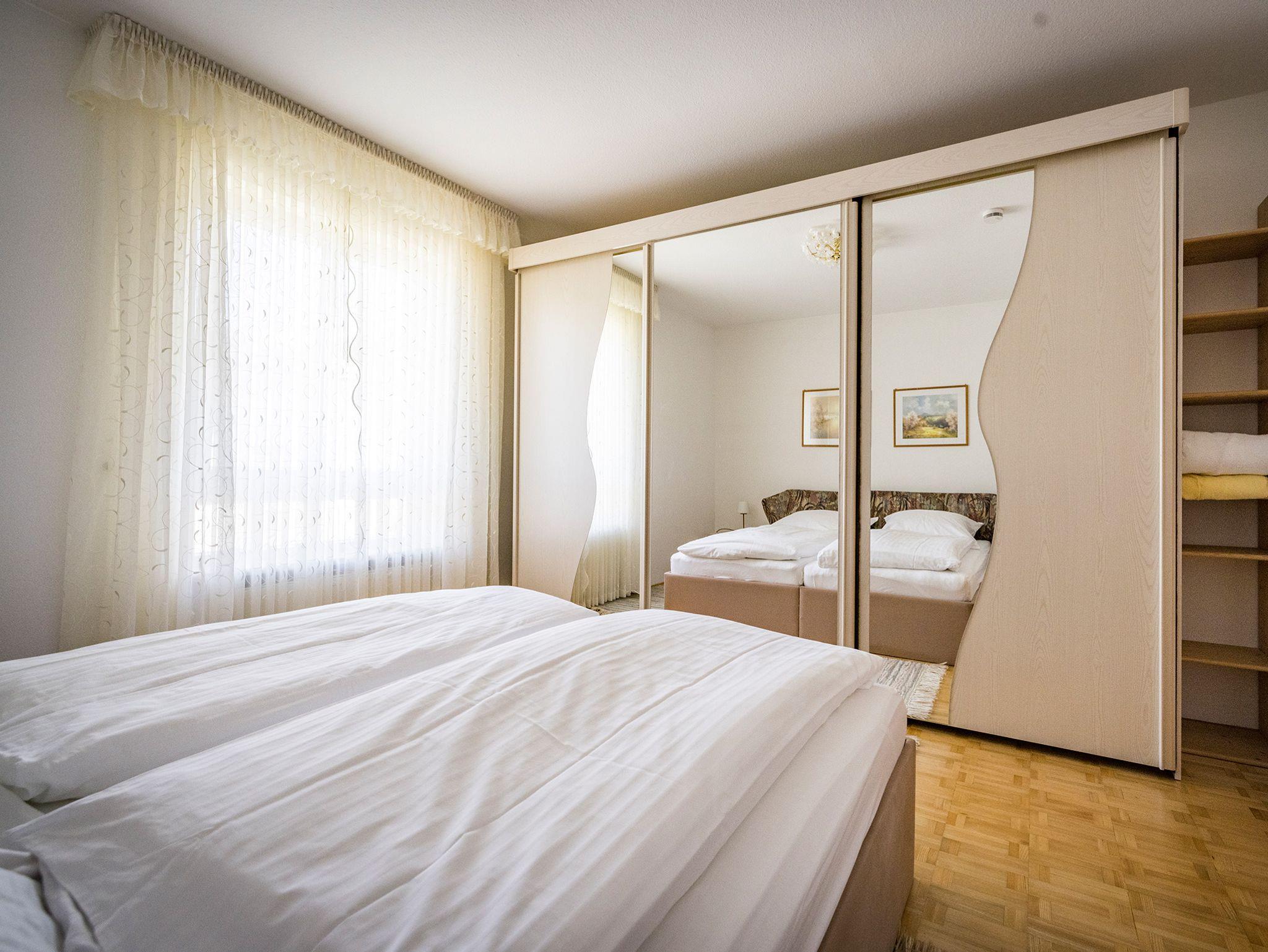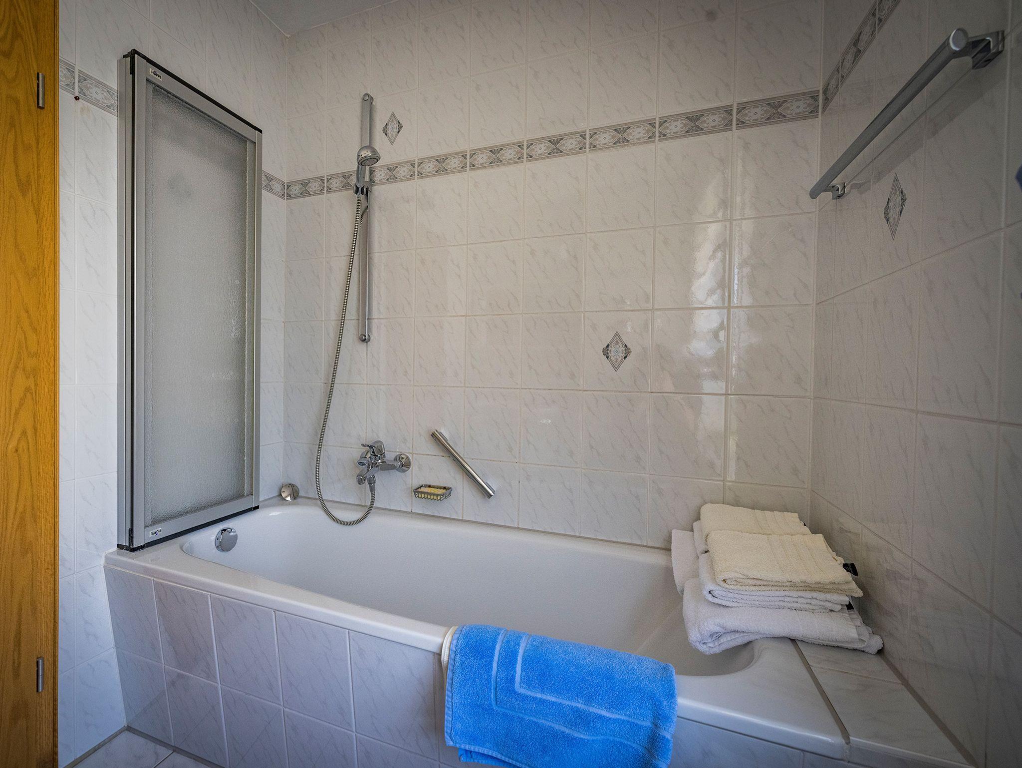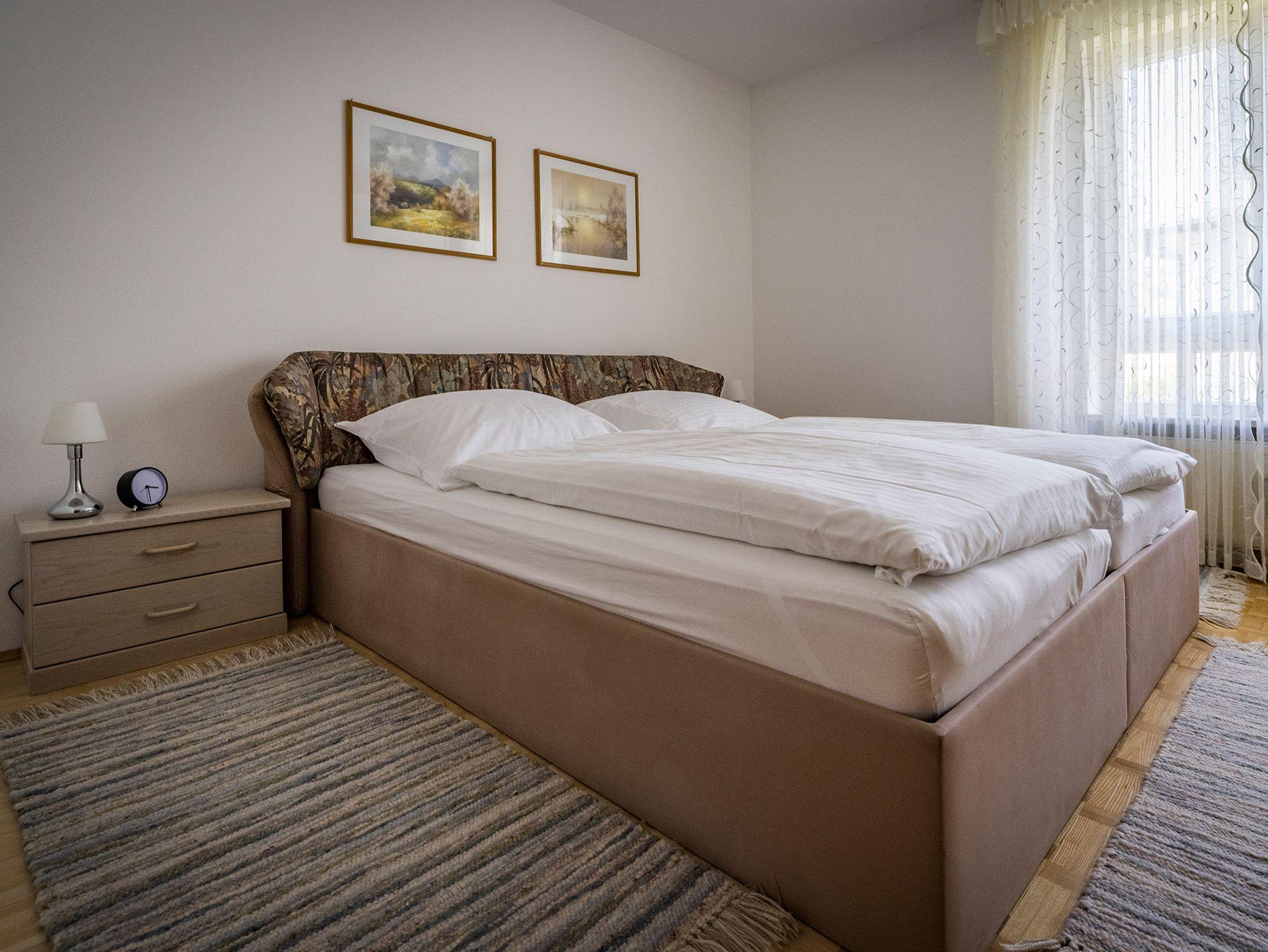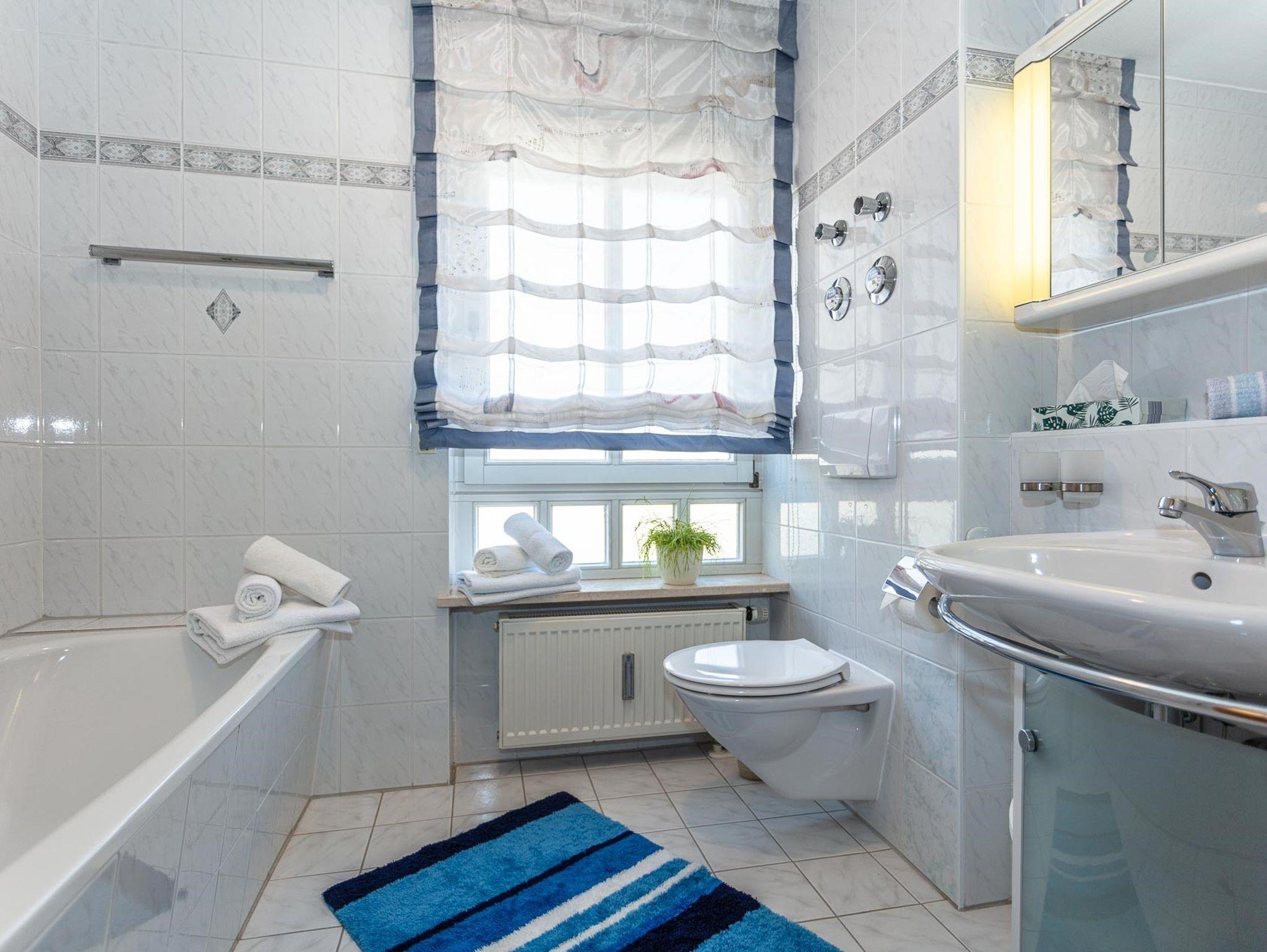 Unsere große neu eingerichtete Ferienwohnung ist 70 m ² groß und besteht aus einem großen Wohnzimmer mit Schlafcouch ( 1,70 x 2,00 m) und einem Schlafzimmer, sowie einer separaten Küche, einem Bad mit Badewanne und einem großzügigen Balkon. Alle Räume sind mit Außenfenstern und Schallrollos ausgestattet. Die Böden der hell durchfluteten Ferienwohnung sind mit Holz Parkettfußböden und Wollteppichen belegt. Durch einen geringen Aufpreis können Bademäntel gestellt werden.