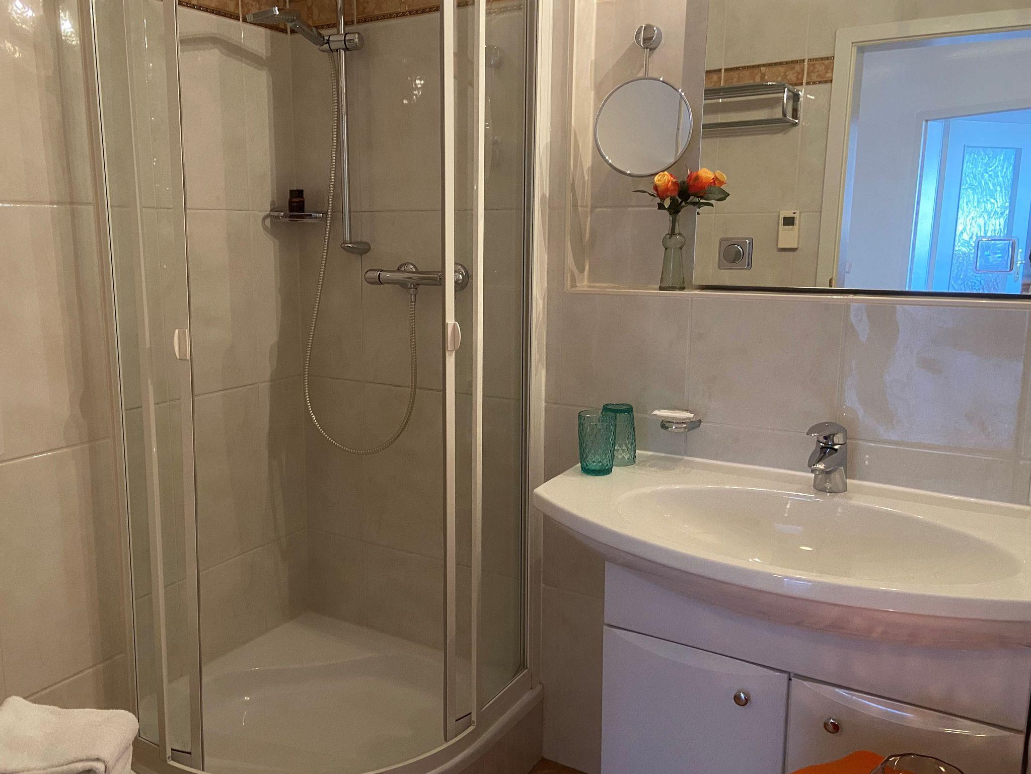 Unser schönes, gemütliches Appartement ist im klassisch- eleganten Stil eingerichtet. Die Wohnung befindet sich im 1. OG und verfügt über ein separates Schlafzimmer mit einem Doppelbett (Boxspringmatratzen - 1,80 x 2,00), ein Wohnzimmer mit Essecke, eine gut ausgestattete Küche mit Geschirrspüler, sowie ein Bad mit Dusche/WC. Auf dem Balkon können Sie das herrliche Bergpanorama der Alpenstadt genießen!