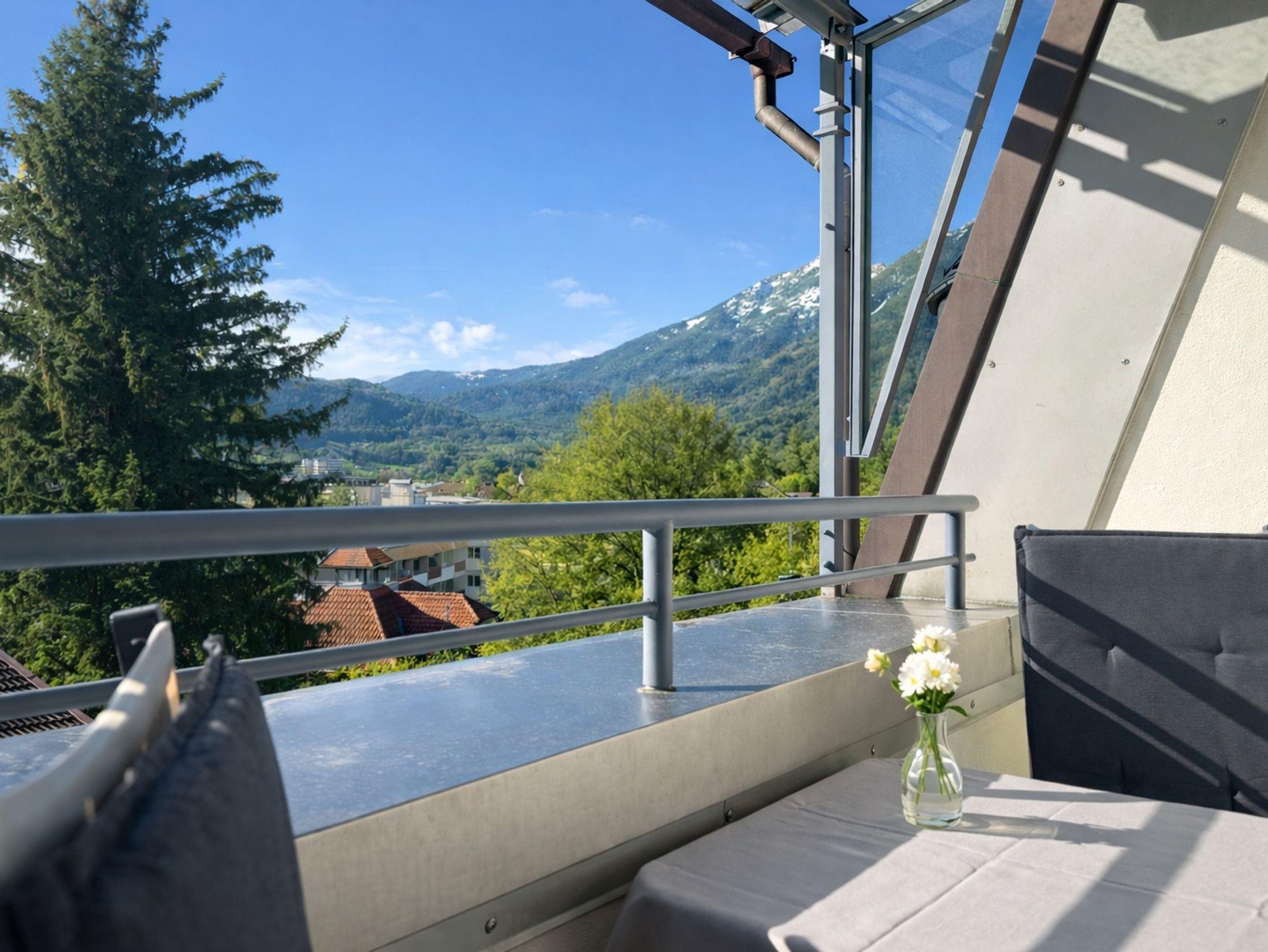 In absoluter Ruhe, aber dennoch nur wenige Schritte von der Fußgängerzone entfernt, genießen Sie in einem architektonisch anspruchsvollen Haus von Ihrem Balkon oder der Sonnenterrasse den Blick auf ein faszinierendes Bergpanorama. Die Apartments sind im klassisch-eleganten Stil eingerichtet und haben eine Größe zwischen 45 und 98 qm. Sie bieten bis zu vier Personen Platz und verfügen alle über getrennte Wohn- und Schlafräume, Bad und Balkon. Unser Haus ist mit Panoramaaufzug, Innenlift, Waschküche, Fahrradraum, sowie einer Tiefgarage ausgestattet. Außerdem verfügen wir über eine Lounge mit Getränkekühlschrank (Selbstbedienung). Hunde sind willkommen.
