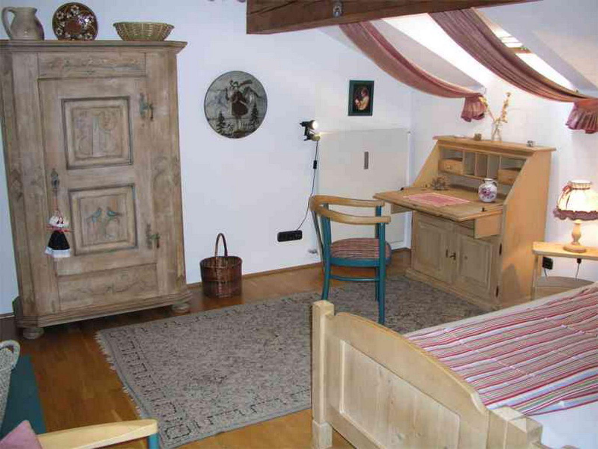 Ruhig, sonnig, herrlicher Bergblick, Garten, beste Ausstattung mit Parkett und überdachten Südbalkon. Großes Wohnzimmer (zusätzl. ausziehb. Doppelcouch), Schlafzimmer (extralange Betten, Sofa, Sekretär), voll eingerichtete Küche (Spülmaschine), Bad (Wanne, Du/WC), WC extra, kleine Diele.