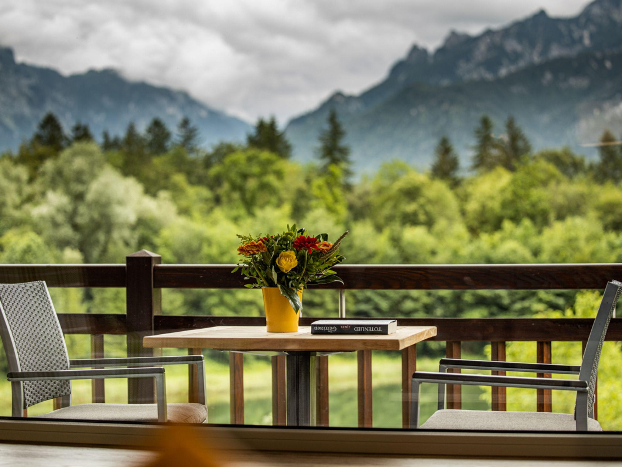 Großzügige, exklusive Wohnung mit lichtdurchflutetem, offenem Wohnraum und großem Panoramafenster mit unvergleichlichem Blick auf den Gablerweiher und den Predigtstuhl. Eine moderne Einbauküche, komplett ausgestattet mit Kaffeemaschine, Nespressomaschine, Geschirrspüler usw. sowie ein großes Badezimmer, sorgen für einen angenehmen Aufenthalt. Schnelles Internet, W-LAN und große Flachbild Fernseher im Wohnbereich und im Schlafzimmer sorgen für weiteren Komfort.
