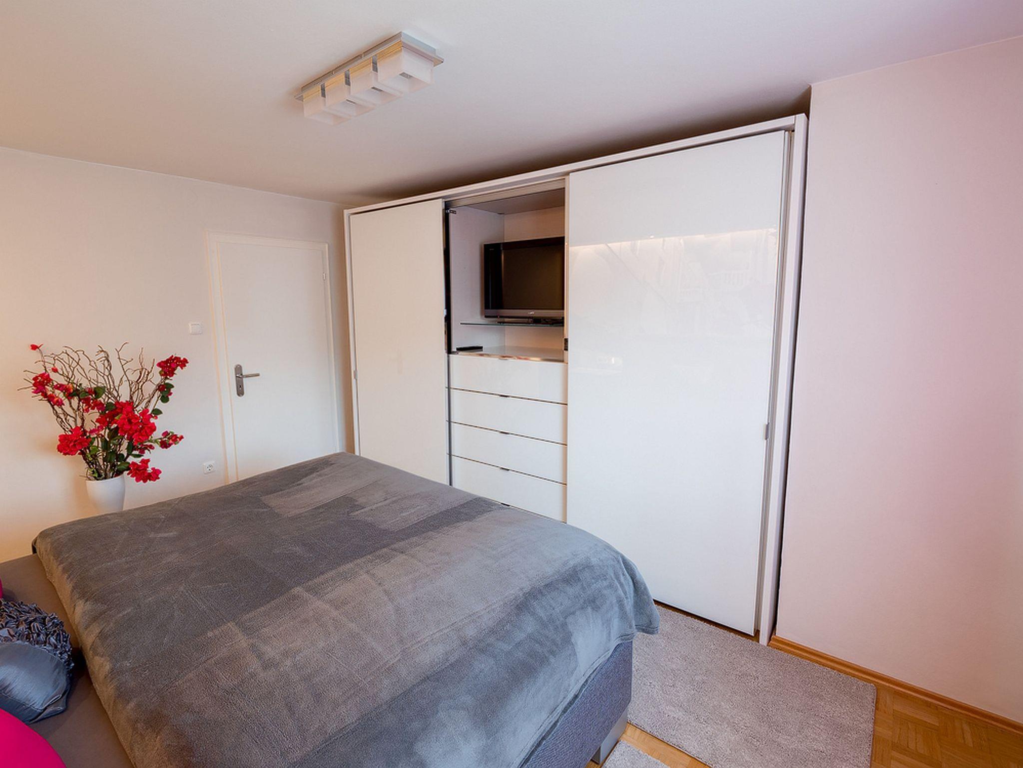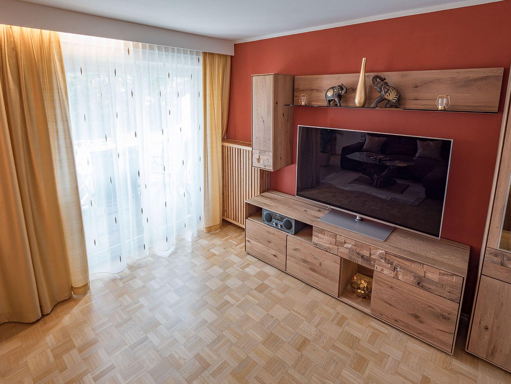 Für Ihr Wohlbefinden haben wir Ihr vorrübergehendes Zuhause mit allen erdenklichen Annehmlichkeiten eingerichtet. Eine moderne, vollwertige Küche mit Esstisch und ein Wohnzimmer, dass keine Wünsche offen lässt. Auf dem sonnigen Balkon haben Sie einen wunderschönen Blick auf das einmalige Bergpanorama. Dort können Sie den Tag z.B. mit einem Glas Wein ausklingen lassen. Ein Schlafzimmer verfügt über einen großen Kleiderschrank, TV und einem bequemen Boxspringbett. Reisen Sie mit drei oder vier Personen an, dann gibt es ein zweites Zimmer mit Doppelbett und einer kleineren Schrankkombination. Ein Babybett ist auf Anfrage vorhanden. Ein modernes Bad mit Doppelwaschbecken, Dusche/WC, Fußbodenheizung, Kosmetikspiegel und Fön rundet das Angebot ab.