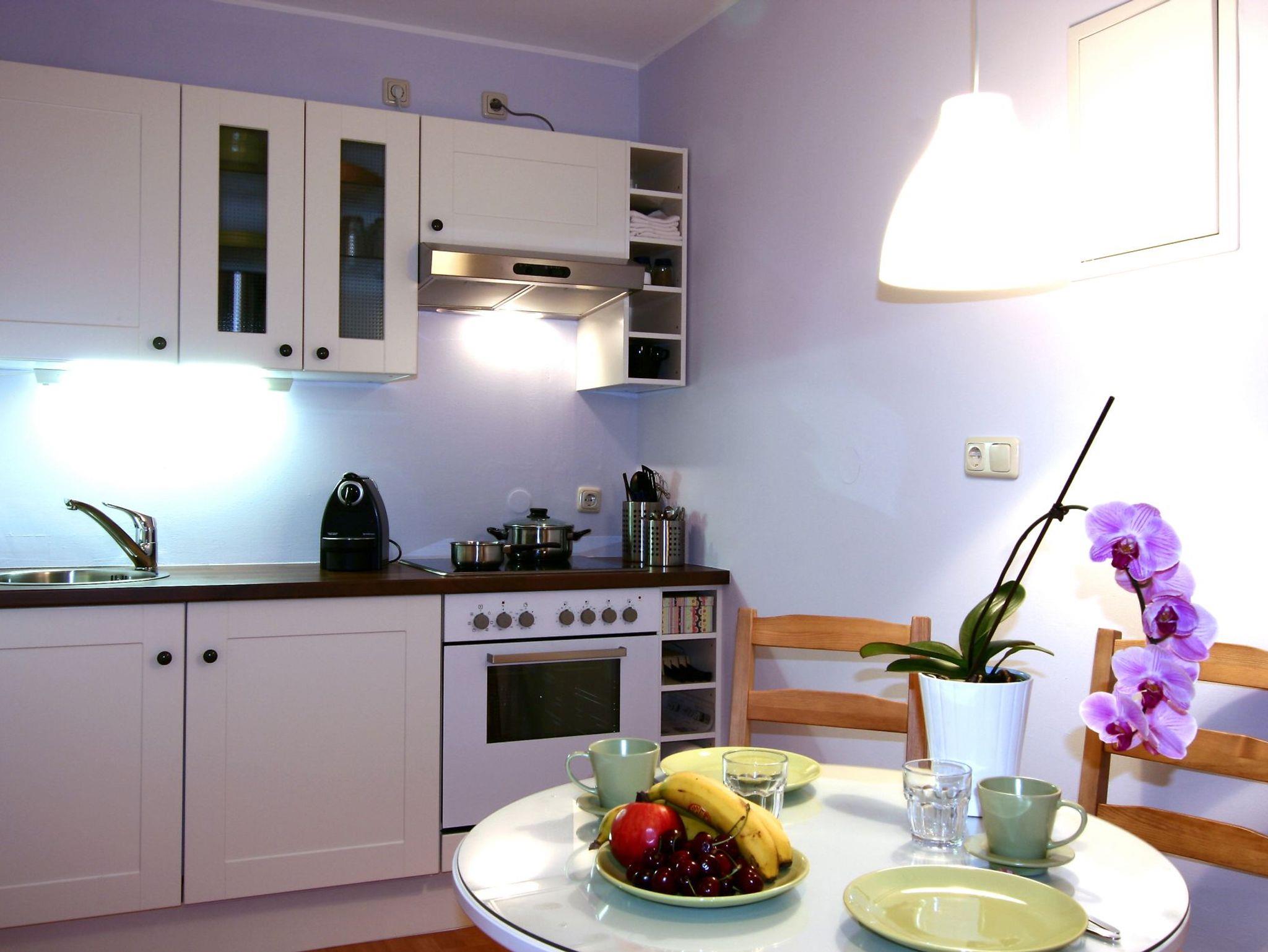 Die Wohnung ist mit ihrer Größe von 25 qm ideal für 1 - 2 Personen. Sie befindet sich in einem historischen Gebäude im 2. Obergeschoss in absolut zentraler Lage in Bad Reichenhall, direkt neben der Malakademie. Im Wohnbereich befindet sich die sehr schöne Küche und der gemütliche Essbereich. Die Küche ist mit Kaffeemaschine, Wasserkocher und Toaster usw. für Ihren Aufenthalt gut ausgestattet. Im Bad haben Sie eine Dusche. Wir freuen uns, wenn Sie bei uns Ihren Urlaub verbringen! Hauseigene Parkplätze nach Verfügbarkeit.