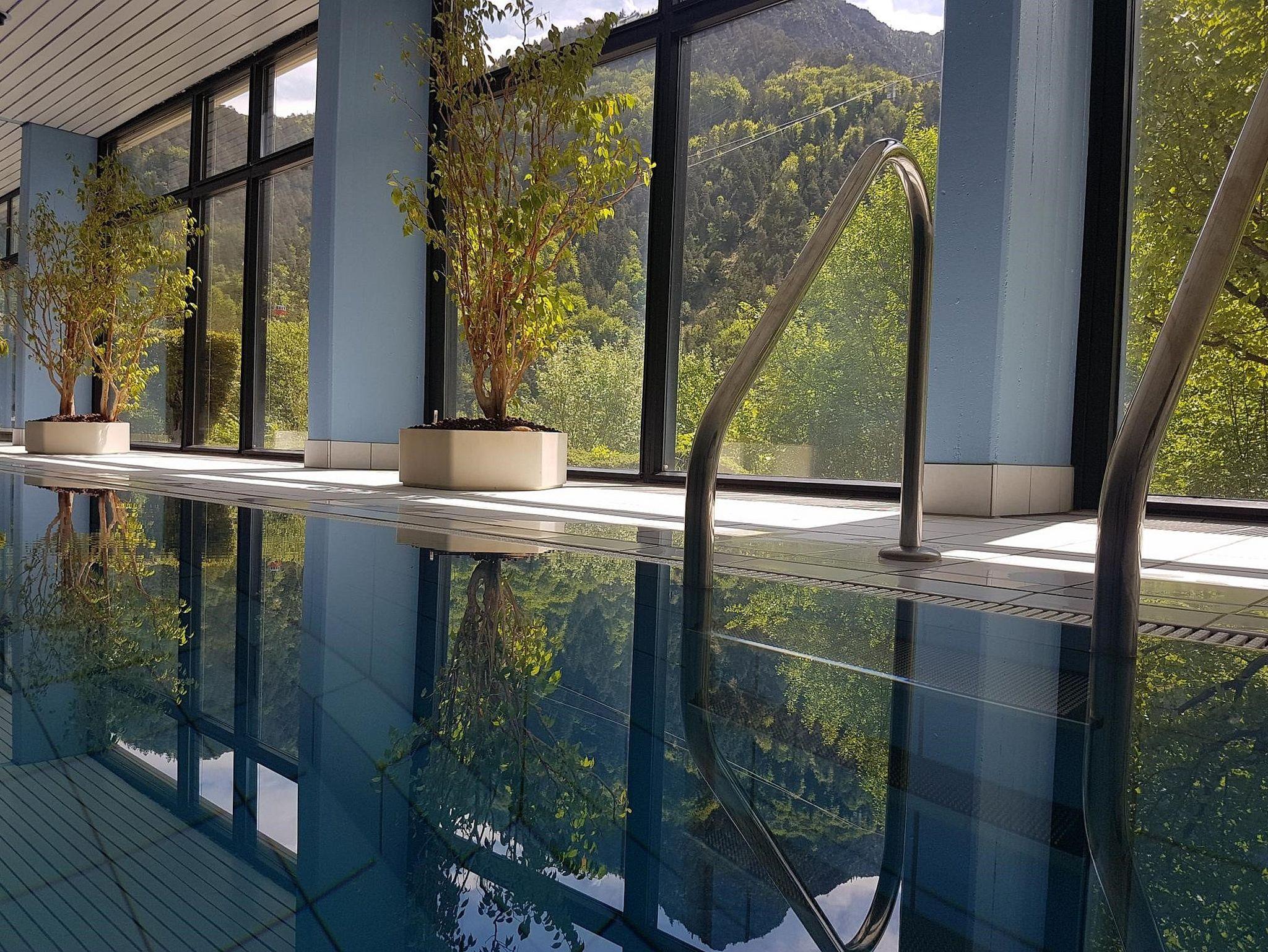 In wunderschöner Panoramalage direkt an der Predigtstuhlbahn in Bad Reichenhall ist das Jutta Deluxe Apartement in nur 5 Gehminuten vom Bahnhof (Kirchberg) erreichbar. Für Wanderbegeisterte Urlauber ist das Appartmenthaus am Schroffen, in dem sich das Jutta Deluxe Appartment befindet, perfekt gelegen. Das kostenlose Freibad am Thumsee ist nur 5 Autominuten entfernt. Ebenso ist der Panorama-Pool im Appartmenthaus mit knapp 30 Grad Wassertemperatur eine tolle Möglichkeit zum Entspannen. Eine Tischtennisplatte und Fitnessgeräte laden dazu ein, für sein Wohlbefinden noch mehr zu tun. Ein kleiner Spielplatz findet sich im Innenhof des Appartmenthauses. Parkplätze finden Sie ebenso kostenlos direkt am Appartmenthaus. Auf Anfrage ist auch ein Parkplatz in der Tiefgarage reservierbar.