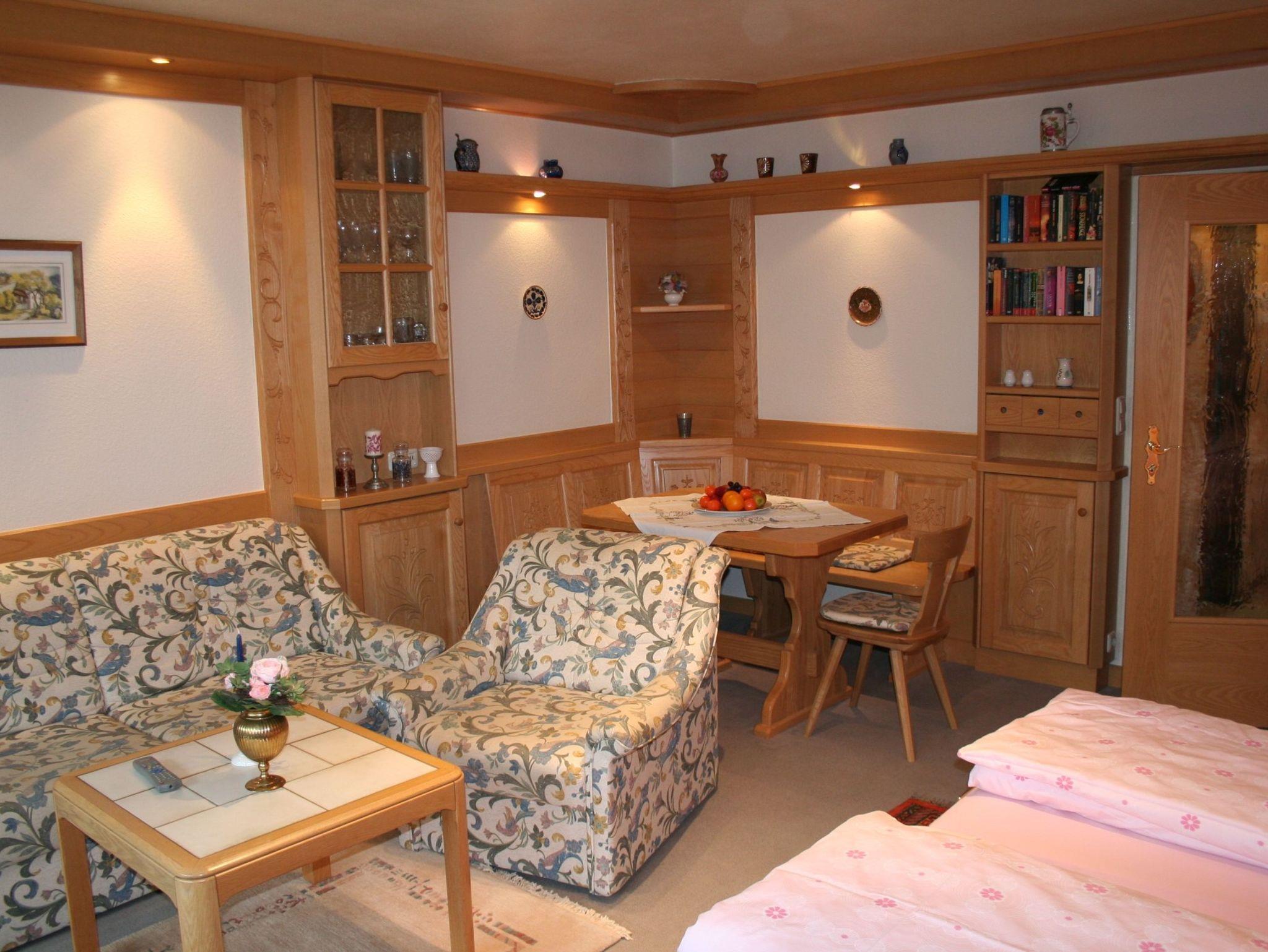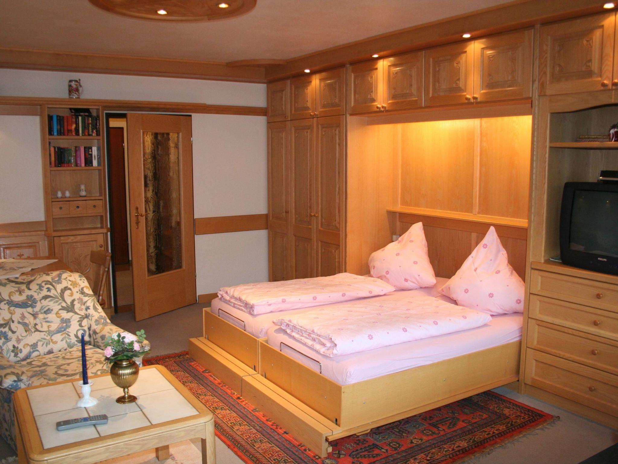 Unser Nichtraucher Appartement Predigtstuhl Nr. 3055 im 3. Stock erreichen Sie bequem mit dem Lift. Das Appartement ist mit Erle-Vollholzmöbel hell im ländlichen Stil komfortabel und gemütlich eingerichtet. In der großen Schrankwand (4,50 m) befinden sich zwei Betten. Kleider- und Wäscheschrank, Fernseher u. Kabel-TV. Eine gemütliche Eckbankgruppe lasst Sie sich wie zuhause fühlen. Vom großen Balkon aus geniessen Sie den Blick in die Berge. Das Bad mit Badewanne und 2 Waschbecken, Toilette und Bidet. Die neue Küche ist mit einem Elektroherd mit Backwagen und Ceranfeld, sowie ein Kühlschrank mit Gefrierfach ausgestattet. Internetzugang/WLAN gewährleistet.