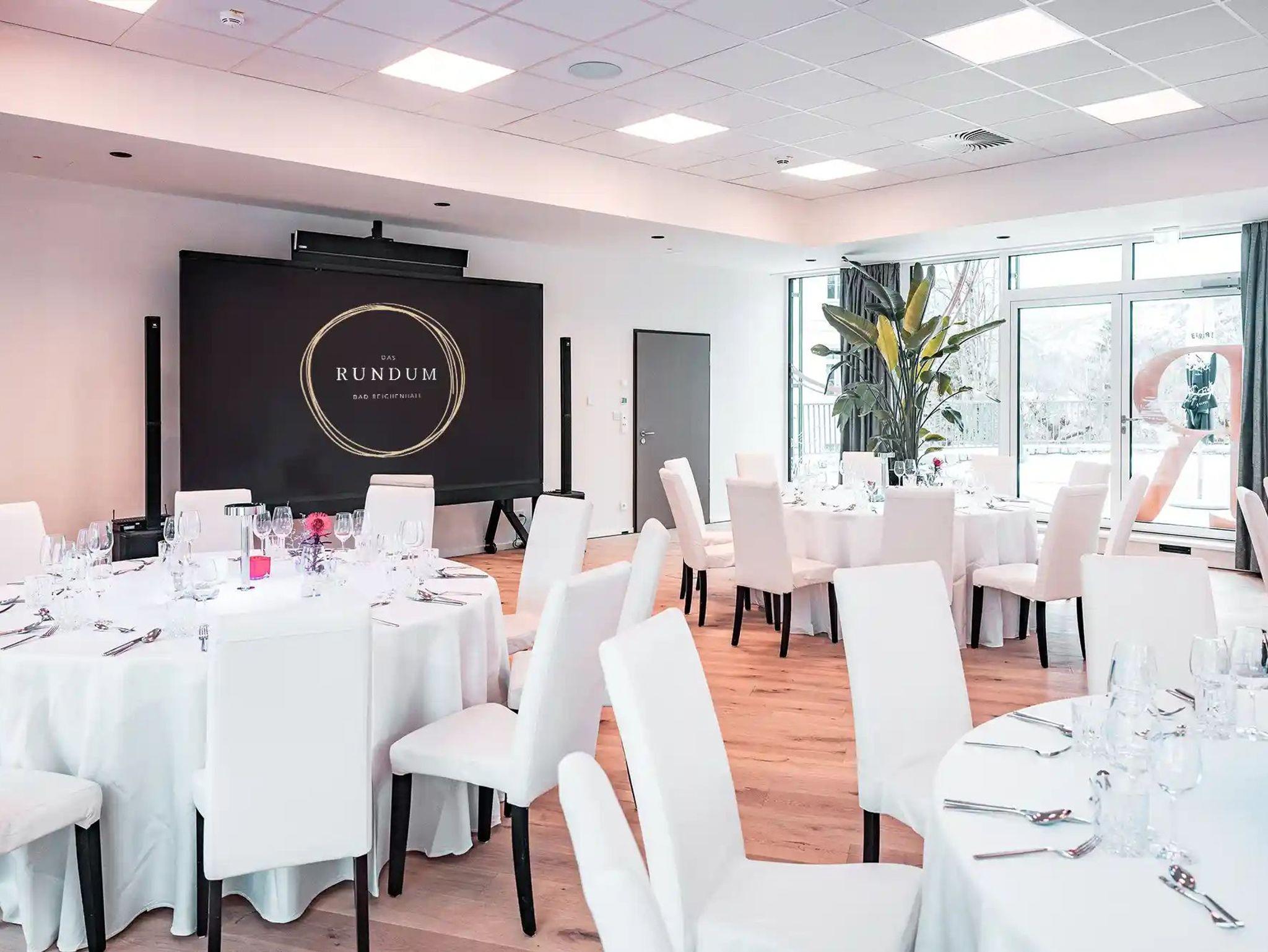 Auf einem Plateau umkreist von einem herrlichen Panoramablick, fernab des Verkehrslärms und der Hektik des Alltags, überschaut DAS RUNDUM die Kurstadt Bad Reichenhall und ihre Hausberge Predigtstuhl und Hochstaufen. Ausgestattet mit komfortablen Doppelzimmern und genug Freiraum zur Selbstentfaltung ist DAS RUNDUM ein ideales Domizil für Menschen, die eine behagliche Langzeitunterkunft oder nach getaner Arbeit das Weite suchen. Dank geringer Distanz zur Fußgängerzone, zu Nahversorgern und einer guten Anbindung zu öffentlichen Verkehrsmitteln liegt DAS RUNDUM trotz seiner Hanglage nicht fern vom Schuss. Vor der Haustüre befinden sich zahlreiche Gaststätten und Cafes, Dienstleister des täglichen Gebrauchs, Bildungseinrichtungen, ein modernes Krankenhaus, die Rupertustherme und ein Nationalpark. Das Zentrum der Festspielstadt Salzburg ist in nur 30 Fahrtminuten erreichbar. Die unmittelbare Nähe zu Seen wie dem Thumsee, Königssee oder dem Chiemsee lassen DAS RUNDUM und die Stadt Bad Reichenhall zu einer alljährlich rundum-begeisternden Destination werden. In unserem Aparthotel können Sie sich jederzeit an den Getränkeautomaten gegen Gebühr bedienen. Frühstücken ist auch für externe Gäste zu den Buffetöffnungszeiten für 17,50 EUR pro Person möglich.