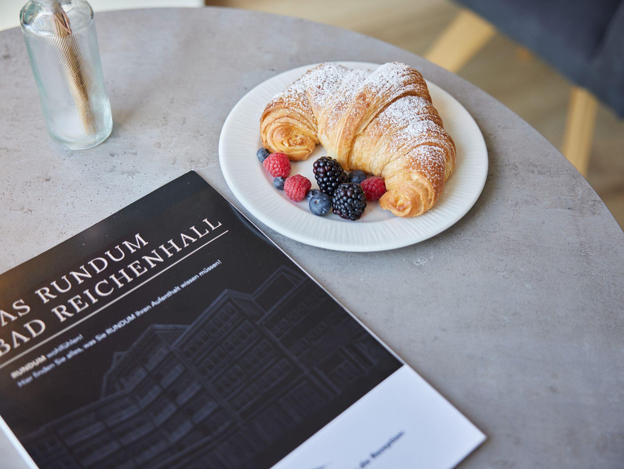 Auf einem Plateau umkreist von einem herrlichen Panoramablick, fernab des Verkehrslärms und der Hektik des Alltags, überschaut DAS RUNDUM die Kurstadt Bad Reichenhall und ihre Hausberge Predigtstuhl und Hochstaufen. Ausgestattet mit komfortablen Doppelzimmern und genug Freiraum zur Selbstentfaltung ist DAS RUNDUM ein ideales Domizil für Menschen, die eine behagliche Langzeitunterkunft oder nach getaner Arbeit das Weite suchen. Dank geringer Distanz zur Fußgängerzone, zu Nahversorgern und einer guten Anbindung zu öffentlichen Verkehrsmitteln liegt DAS RUNDUM trotz seiner Hanglage nicht fern vom Schuss. Vor der Haustüre befinden sich zahlreiche Gaststätten und Cafes, Dienstleister des täglichen Gebrauchs, Bildungseinrichtungen, ein modernes Krankenhaus, die Rupertustherme und ein Nationalpark. Das Zentrum der Festspielstadt Salzburg ist in nur 30 Fahrtminuten erreichbar. Die unmittelbare Nähe zu Seen wie dem Thumsee, Königssee oder dem Chiemsee lassen DAS RUNDUM und die Stadt Bad Reichenhall zu einer alljährlich rundum-begeisternden Destination werden. In unserem Aparthotel können Sie sich jederzeit an den Getränkeautomaten gegen Gebühr bedienen. Frühstücken ist auch für externe Gäste zu den Buffetöffnungszeiten für 17,50 EUR pro Person möglich.
