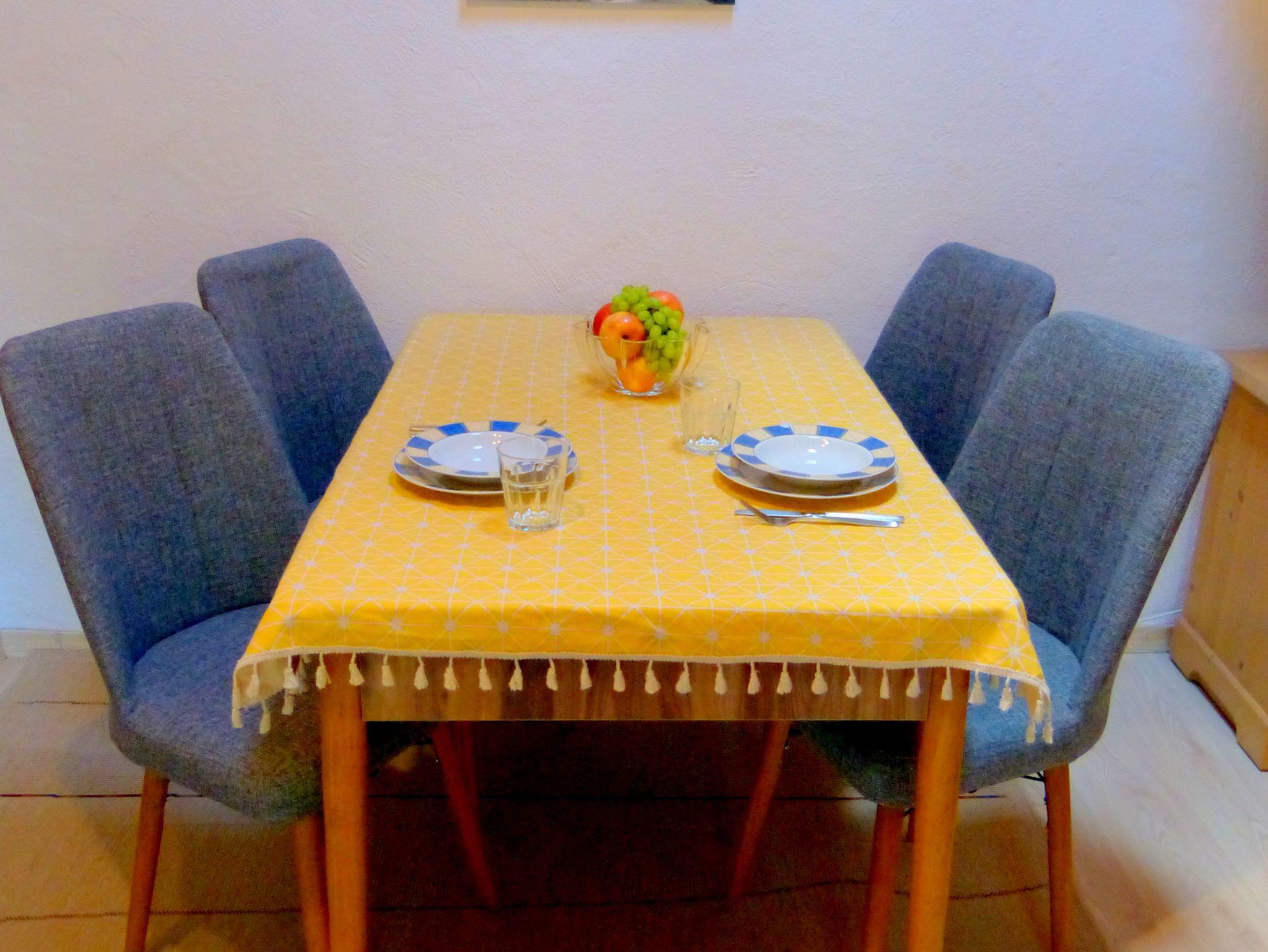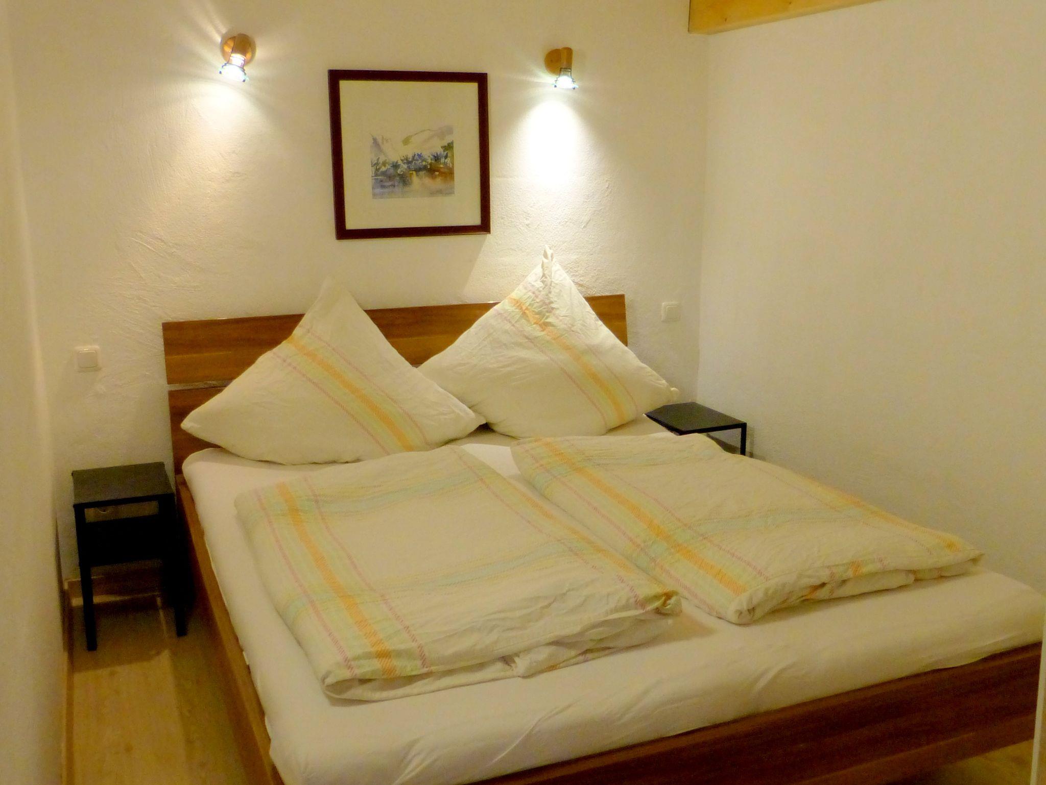 Diese steht Ihnen mit einer Sitzgelegenheit und Grillmöglichkeit zur freien Verfügung um den Blick auf die umliegende Bergwelt genießen zu können. Das gemütliche Wohnzimmer, in dem sich auch der Essbereich befindet, besticht durch eine Einrichtung im Landhausstil und dem Sichtdachstuhl. Der Wohn- und Schlafraum wird mit einer Zentralheizung beheizt. In der voll eingerichteten Küche mit Ceranfeld, Backofen können Sie sich alle Speisen selbst zubereiten. Das gut ausgestattete Bad besitzt eine Dusche, ein Waschbecken, WC und einen Fön. Im separaten Schlafzimmer sorgt ein Doppelbett mit hochwertigen Matratzen für einen erholsamen Schlaf. Ein weiterer Ruheplatz findet sich im großen Doppelbett auf der Empore unter dem Dach, welche über eine Treppe zu erreichen ist. Die Wohnung ist mit W-Lan ausgestattet.