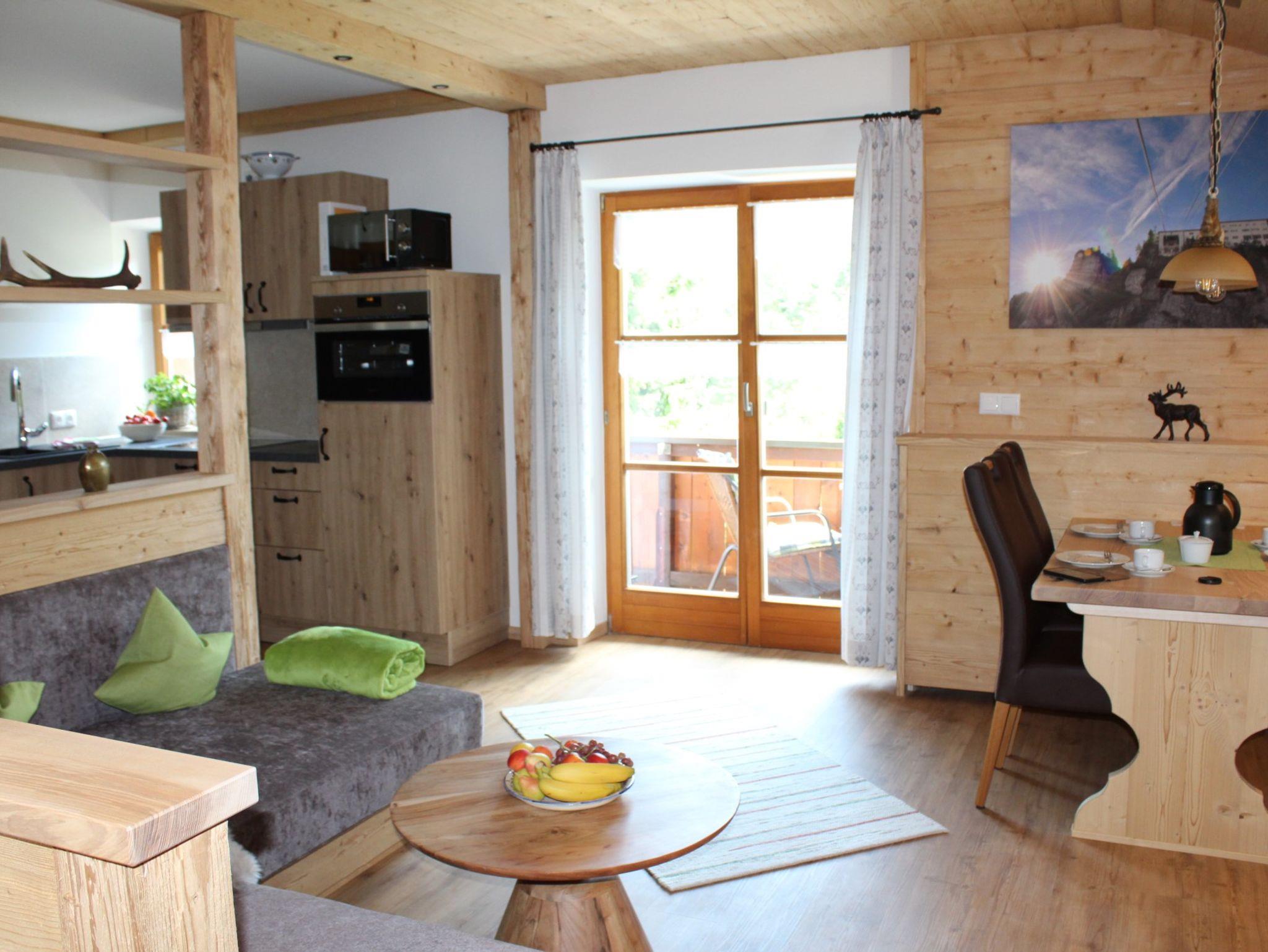 Herzlich willkommen in unserer hochwertigen, neu renovierten Ferienwohnung! Sie erwarten ca. 50 qm Wohnfläche, geeignet von 1 - 3 Personen. In unserer ruhigen, sonnigen Lage mit dem herrlichen Südbalkon können Sie die schönste Zeit des Jahres und den freien Blick in unsere Bergwelt genießen! Unsere gemütliche Wohnung macht Ihren Urlaub perfekt! Im Wohnzimmer ist ein Essbereich und eine gemütliche Couch. Im großen Schlafzimmer mit Doppelzimmer entspannen Sie sich nach Ihren Ausflügen und Touren. Unsere Küche ist sehr gut ausgestattet und lässt keine Wünsche offen. Wir freuen uns, Sie in unserer schönen Heimat empfangen zu dürfen.