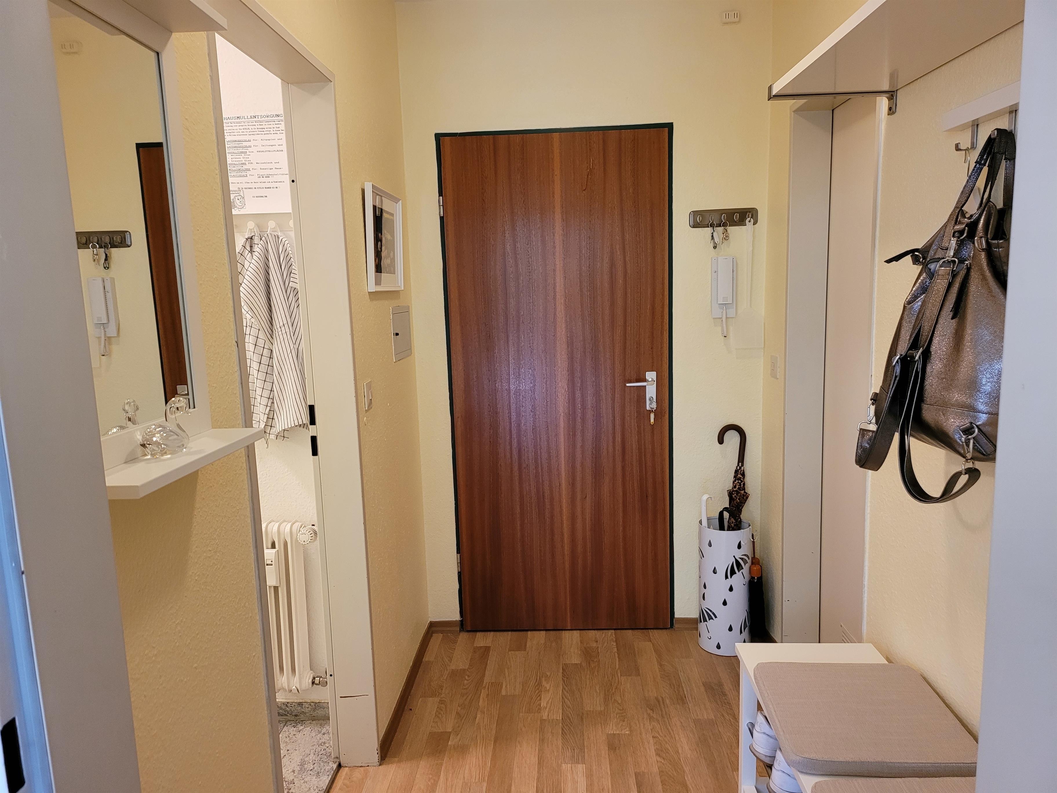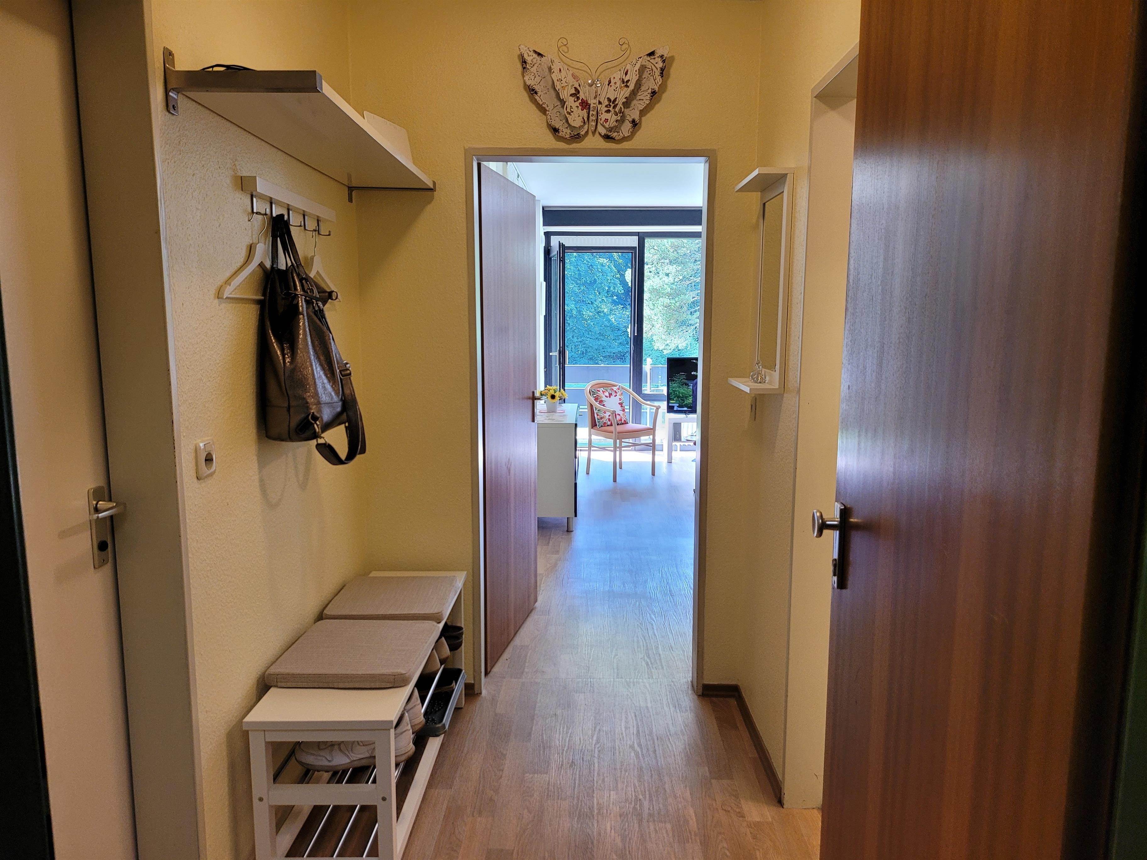 Die gemütliche und komfortable Ferienwohnung ist ca. 42m² groß. Von der Wohnungstür betritt man einen kleinen Flur, von dem links das Bad und rechts die Küche abgeht.