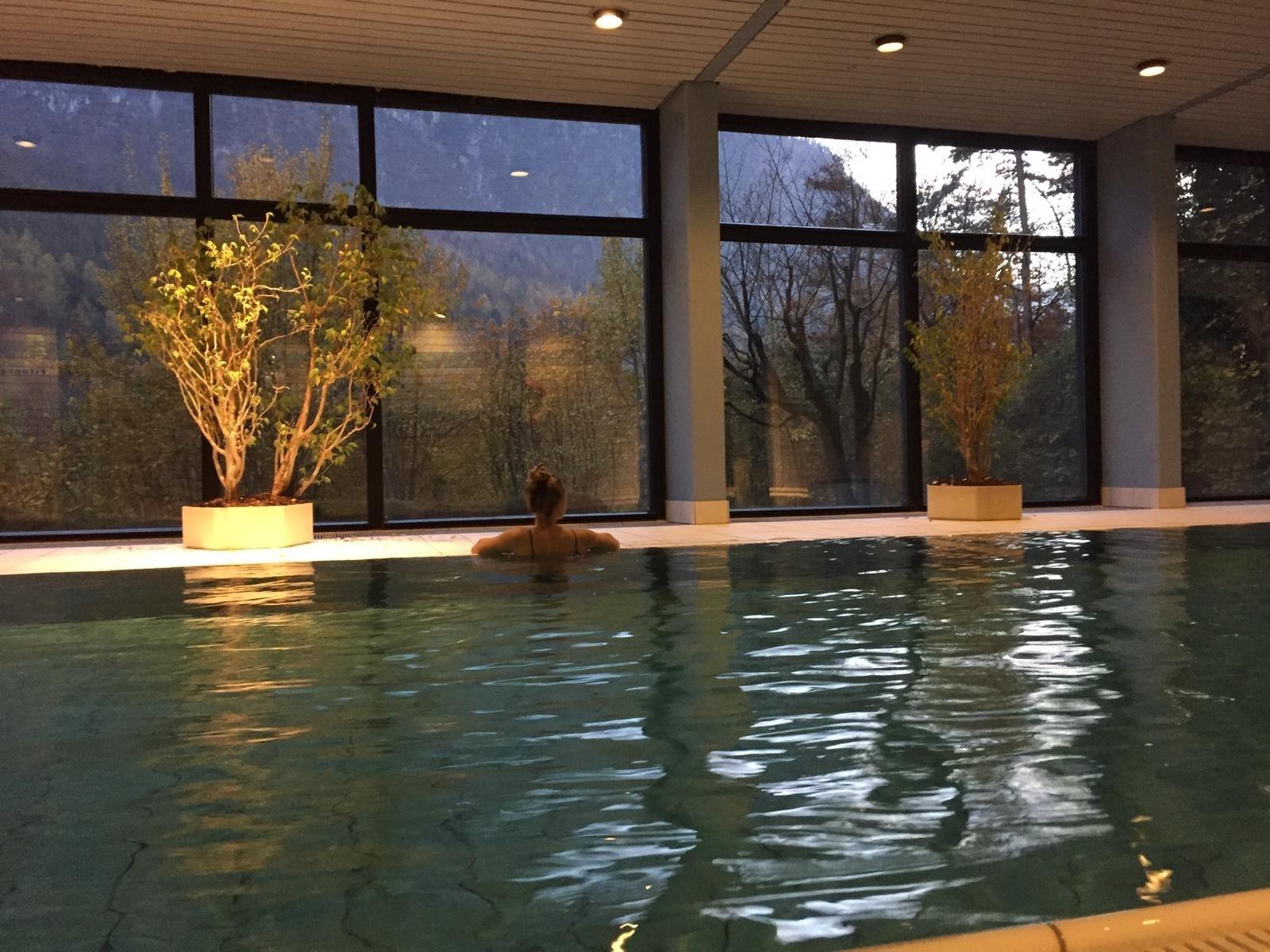 Unser besonderes Highlight ist das beheizte Schwimmbad! Es verfügt über ein Panoramafenster mit Blick zum Predigtstuhl.
