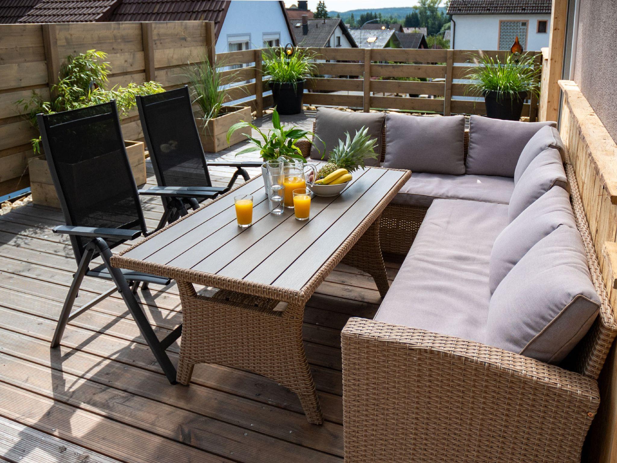 Starten Sie Ihren Tag mit einem gemütlichen Frühstück bei Sonnenaufgang, während Sie die frische Luft und die ersten Sonnenstrahlen genießen. Abends lädt die Terrasse zu einem entspannten Abendbrot ein und bei Sonnenuntergang kann man den Tag in einer entspannten Atmosphäre ausklingen zu lassen.