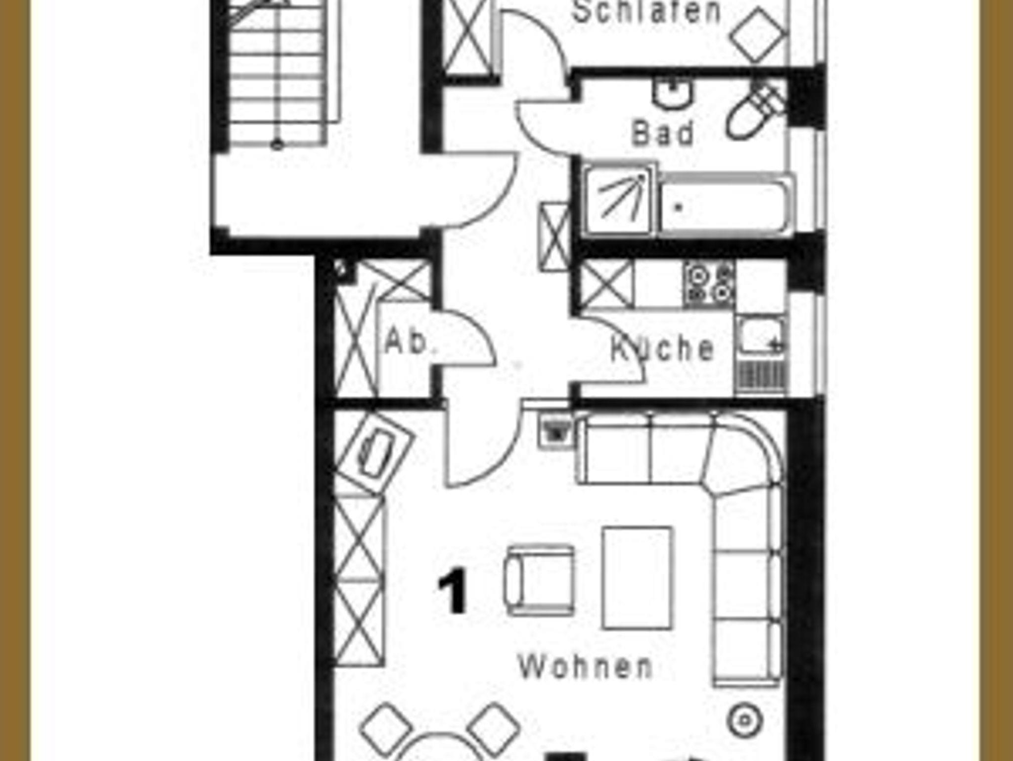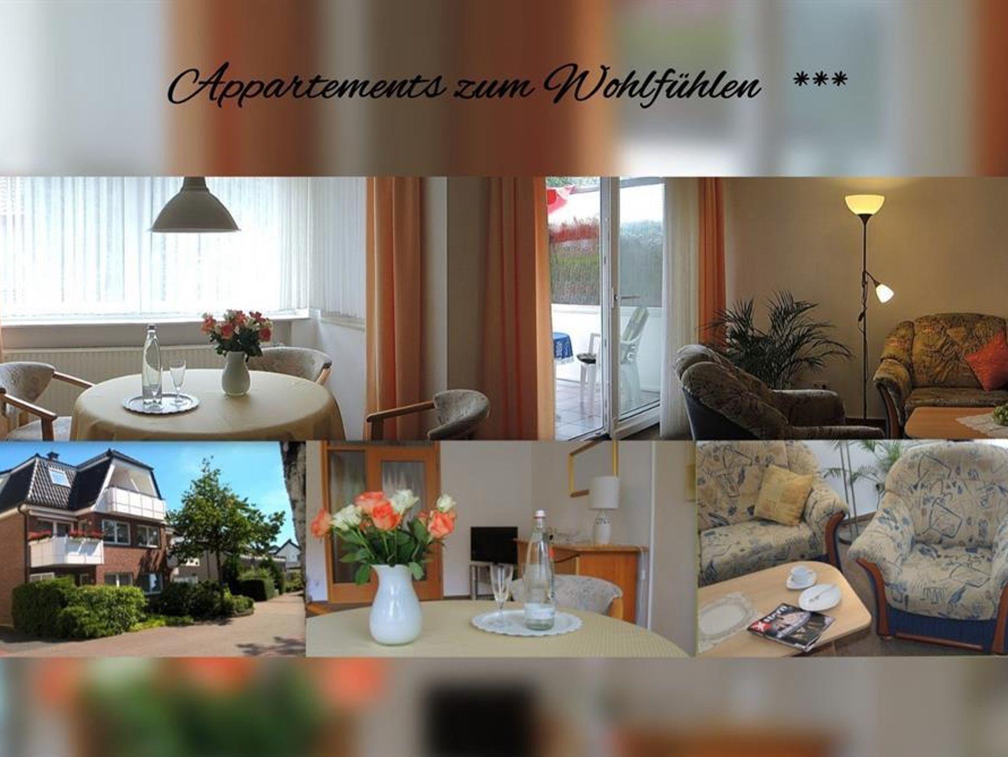 2-Zimmer-Wohnung ( 56 qm) für im Erdgeschoss, ohne Stufen erreichbar: Behindertenfreundlich, Rollstuhlbreite Türen, Wohnzimmer mit gemütlicher Sitzecke (Doppelschlafcouch, hier können auf Anfrage bis zu zwei weitere Personen schlafen), Kabel-TV, Essecke, Balkon; Küche separat mit 4-Plattenherd, Backofen, Kühl- Gefrierschrank; Badezimmer mit ebenerdiger Dusche / Wanne / WC und Fußbodenheizung; Schlafzimmer mit Doppelbett.