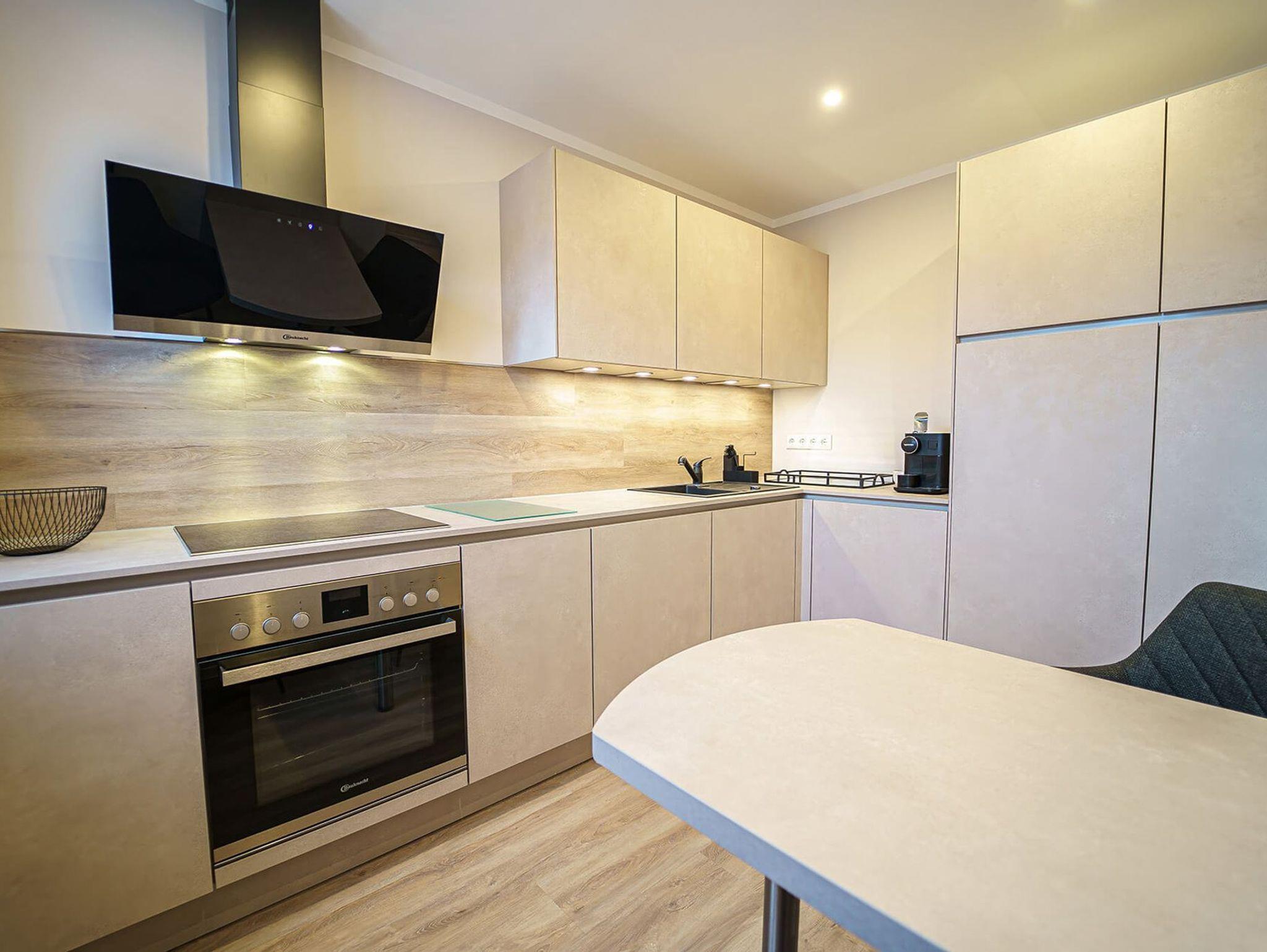• voll ausgestattete Küche mit hochwertigen Küchengeräten, wie Spülmaschine, Herd mit Backofen, Kühlschrank mit Tiefkühlfach, Nespresso Kaffeemaschine, Wasserkocher, Toaster, Geschirr und Gläser