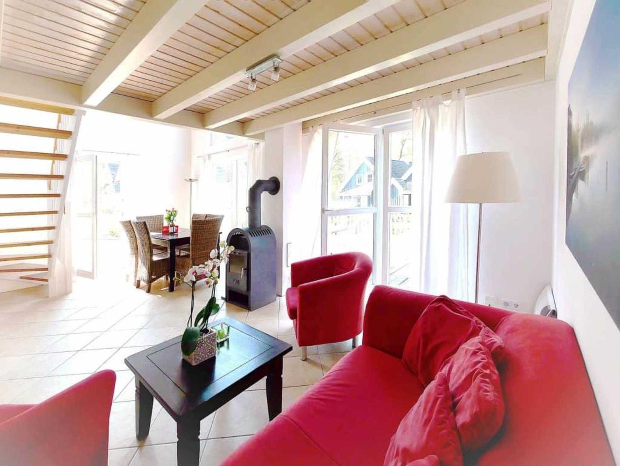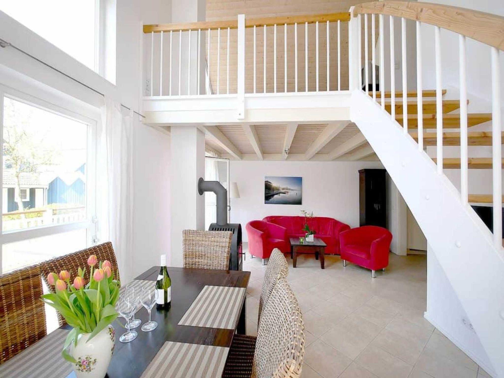 Dieses Reihenhaus (außen) mit 88 m² bietet auf zwei Ebenen Platz für 4+2 Personen: Es verfügt über 2 Schlafzimmer und einem Schlafsofa im Wohnzimmer. Zusätzlich gibt es eine offene Galerie mit Sitzgelegenheiten, eine Sauna, einen Whirlpool und einem Kamin. Für dieses Ferienhaus sind die Kosten für Strom, Wasser und Gas inklusive.