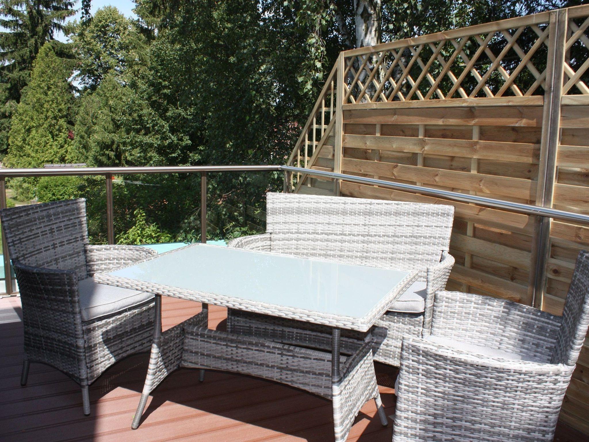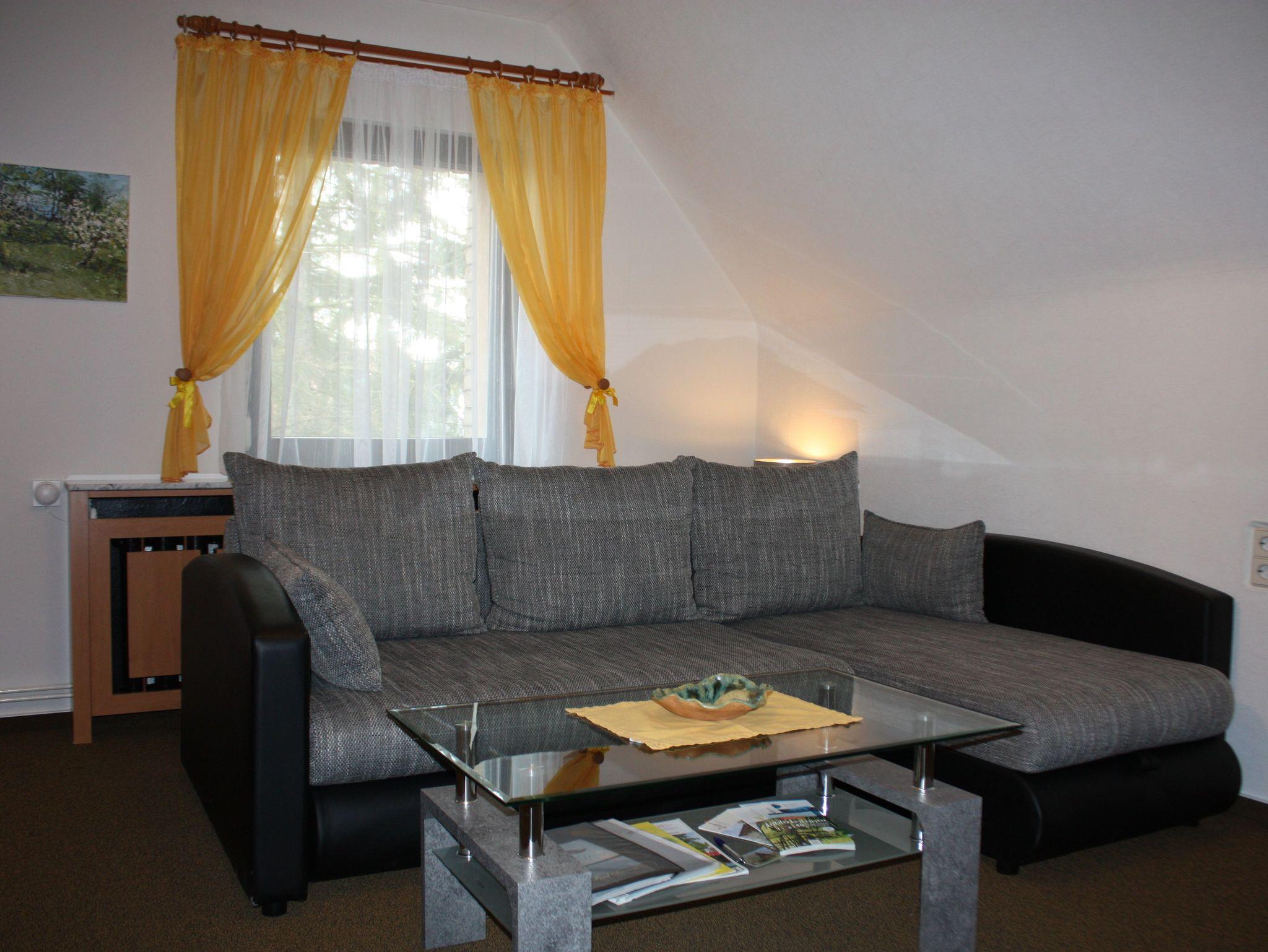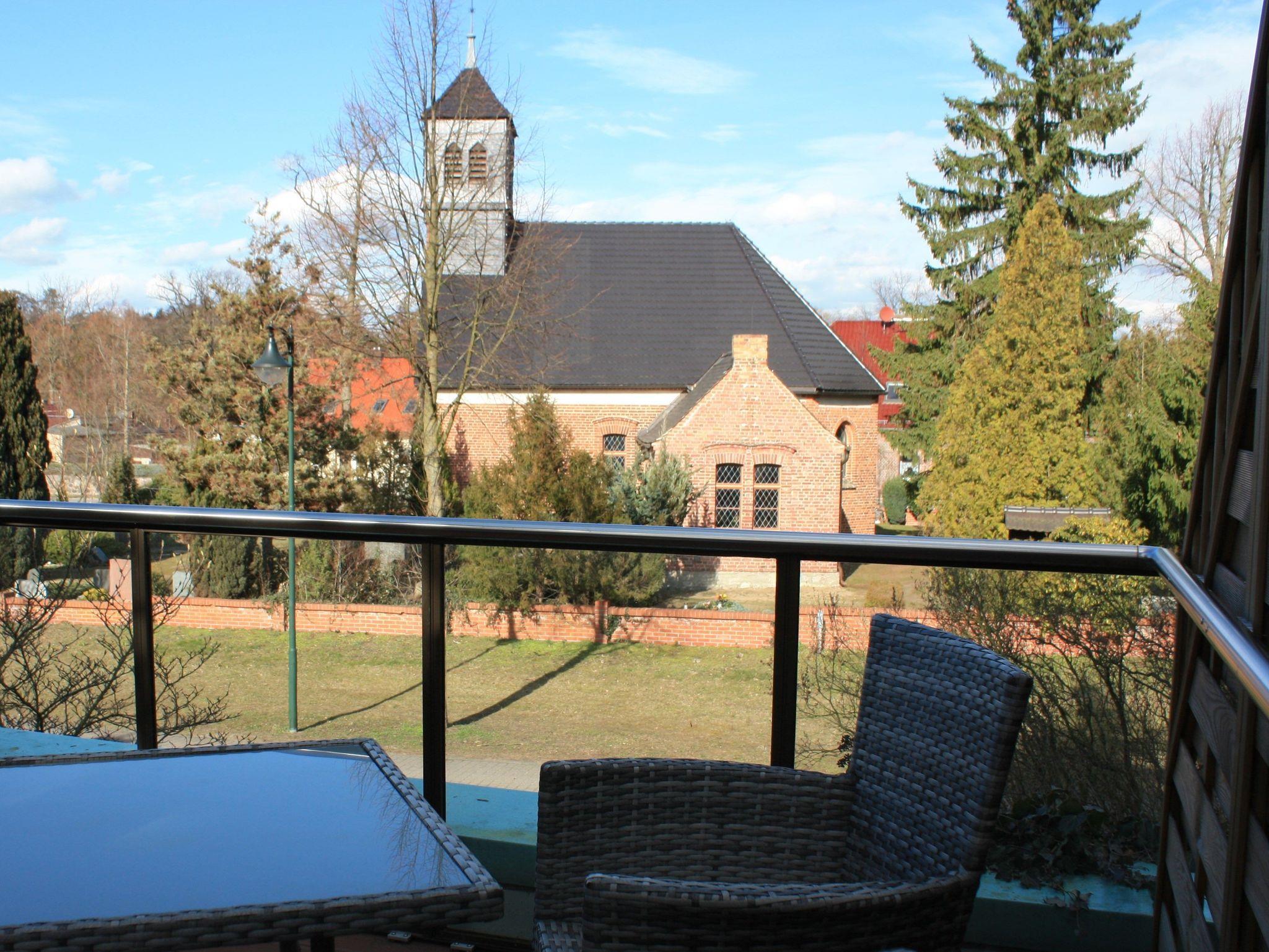 Die Suite zum Anger ist eine gemütlich und stilvoll eingerichtete Ferienwohnung zum Dorfanger. Die Suite ist wie folgt ausgestattet: separate Küche mit Esstisch, Schlafzimmer mit großem Doppelbett (100x200cm/M.) und TV, Wohnzimmer mit großer Schlafcouch, viel Stauraum und großem TV. Von der großen Sonnenterrasse aus, die an die Küche grenzt, haben Sie Blick auf die schöne Backsteinkirche. Eine Garderobe befindet sich im Parterre. Beide Etagen sind mit einer Holz-Wendeltreppe verbunden, die mit einer Schiebetür verschließbar ist.