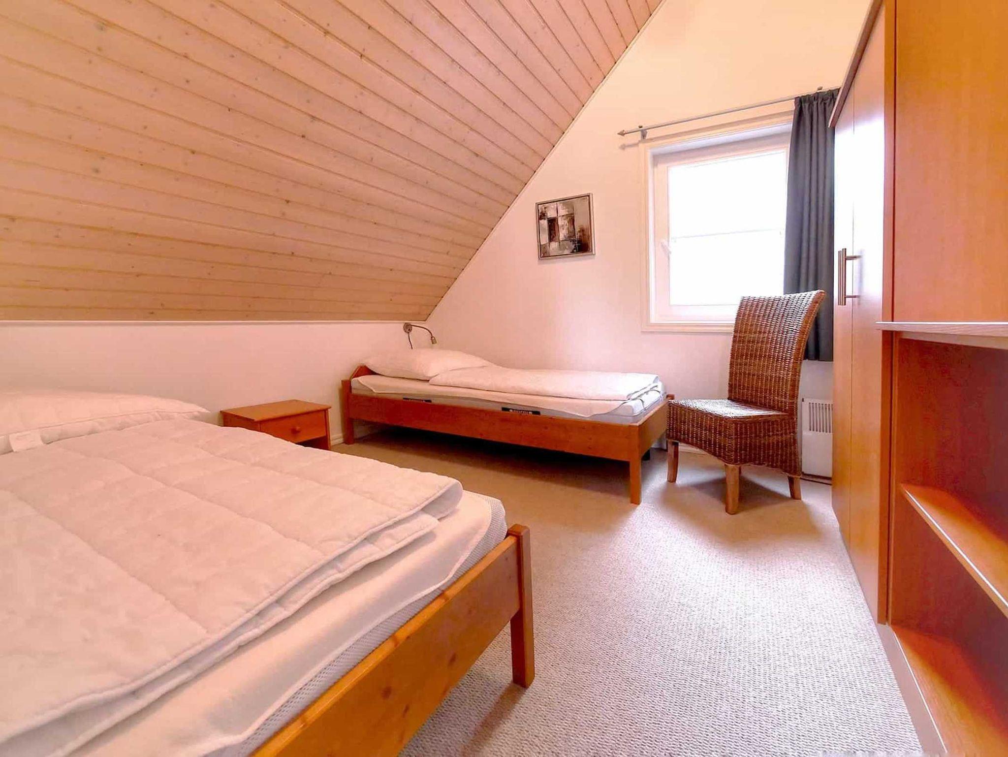 Dieses Haus liegt idyllisch am Ostufer des Scharmützelsees im Kurort Bad Saarow und verfügt über eine große Wiese direkt vor dem Haus und einzigartige Sichtachsen zum Scharmützelsee. Diese 3 Reihenhäuser sind ideal für Familien mit Kindern und Haustieren geeignet. Auf zwei Ebenen mit insgesamt 115 m² ist genug Platz für 6 +2 Personen. Es verfügt über 3 Schlafzimmer und zwei Bäder. Von der Galerie aus haben Sie einen direkten Zugang zum Balkon. Eine Aufbettung ist ebenfalls auf der Galerie möglich.