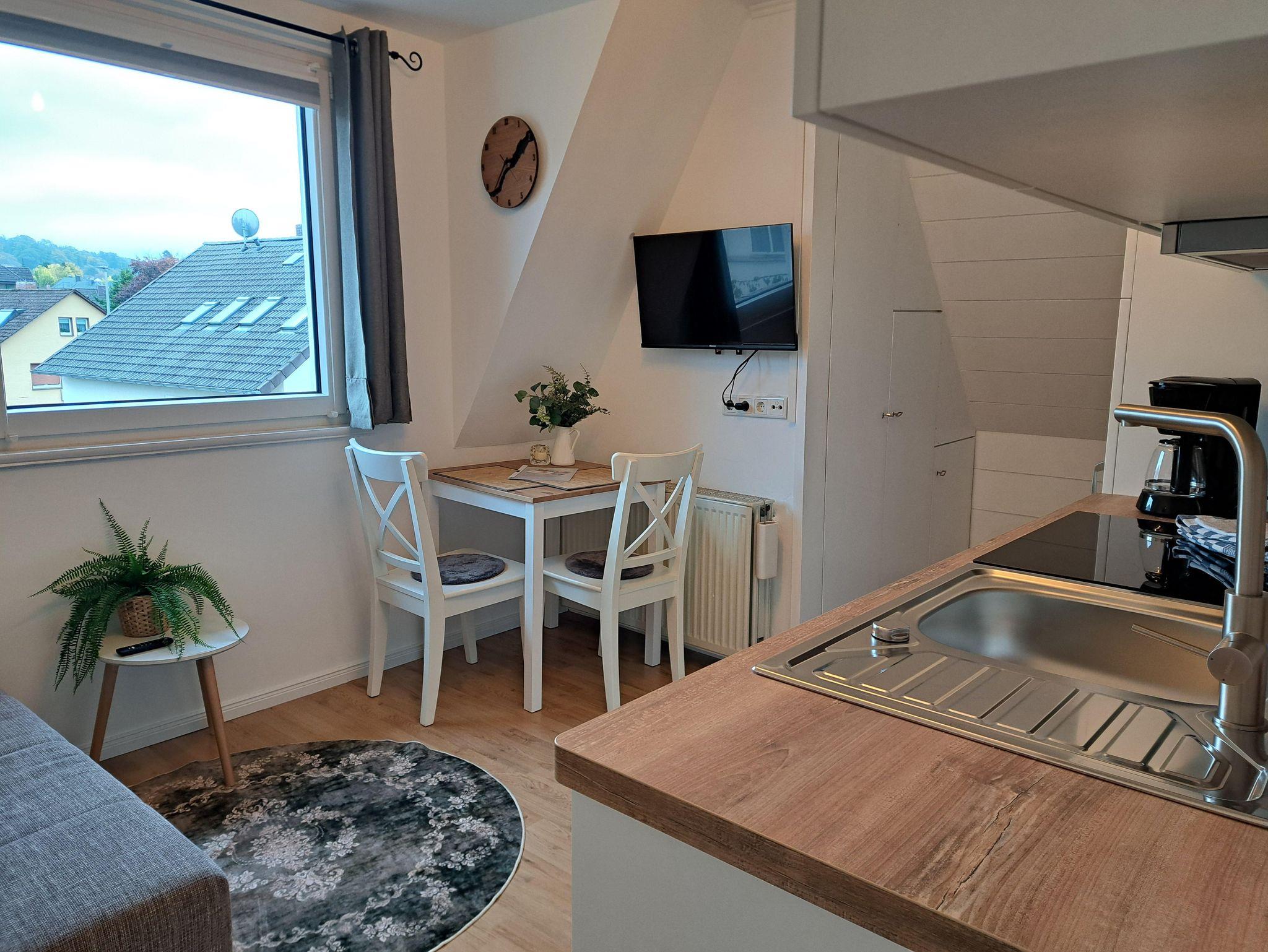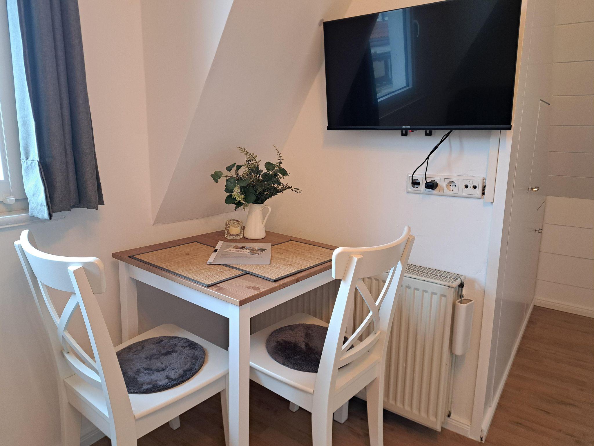 Ein gemütlicher Esstisch für zwei Personen lädt zum Verweilen ein.