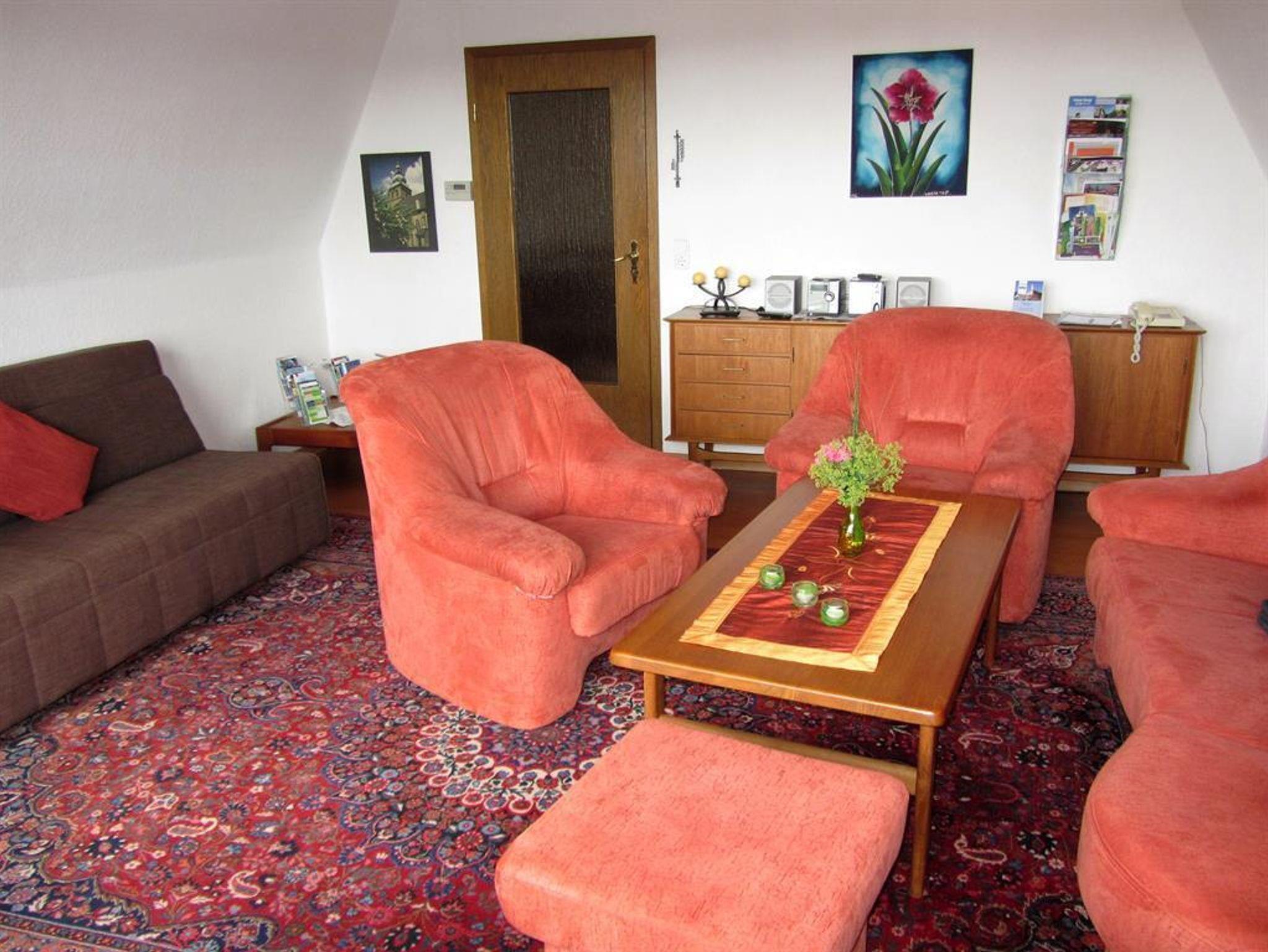 Es erwartet Sie eine geräumige, komplett ausgestattete Nichtraucher-Ferienwohnung in der zweiten Etage, die sich in einem ruhigen Wohngebiet (Sackgasse), ca. drei Gehminuten vom historischen Stadtzentrum und ca. zehn Gehminuten vom Kurpark entfernt befindet.