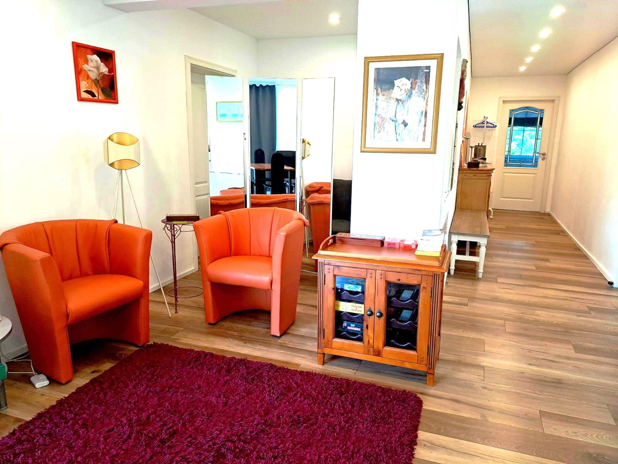 Herzlich willkommen in unserer großzügigen Nichtraucher-Ferienwohnung mit 140?m² Wohnfläche – ein stilvolles Refugium für bis zu 6?Personen, exklusiv für Privatgäste. Genießen Sie entspannte Tage in einem barrierefreien, behindertenfreundlich ausgestatteten Zuhause, das keine Wünsche offenläeuen Sie sich auf einen separaten Hauseingang und eine moderne Komfortausstattung: Die zentrale Lüftungsanlage mit Pollenfilter bietet Allergikern spürbare Erleichterung, während die umweltfreundliche Fußbodenheizung mit Erdwärme eine behagliche Atmosphäre schafft – zu jeder Jahreszeit. Der großzügige Wohn- und Essbereich mit integrierter, voll ausgestatteter Küche (inkl. Geschirrspüler u.?v.?m.) lädt zum Genießen, Kochen und Verweilen ein. Zwei Schlafzimmer mit gemütlichen Doppelbetten (1,80?m und 1,60?m) sowie eine zusätzliche Schlafcouch (1,40?m) bieten ausreichend Platz für erholsame Nächte. Ein hochwertiges Granitbad mit Dusche sowie eine separate Gästetoilette runden den Komfort ab. Für Ihre Unterhaltung sorgen TV, WLAN und Alexa-Sprachsteuerung. Besonders praktisch: Eine eigene Garage steht Ihnen kostenfrei zur Verfügung. Auf Wunsch erhalten Sie zudem Rollatoren (für drinnen und draußen), eine Toiletten- und Bettaufstehhilfe, eine Toilettensitzerhöhung sowie einen Duschsitz – alles für Ihre individuelle Bewegungsfreiheit und Sicherheit. Ein echtes Highlight: Von Ihrer privaten Terrasse mit Garten führt ein direkter Zugang in den idyllischen Kurpark – ideal für Spaziergänge, Erholung und Naturgenuss.