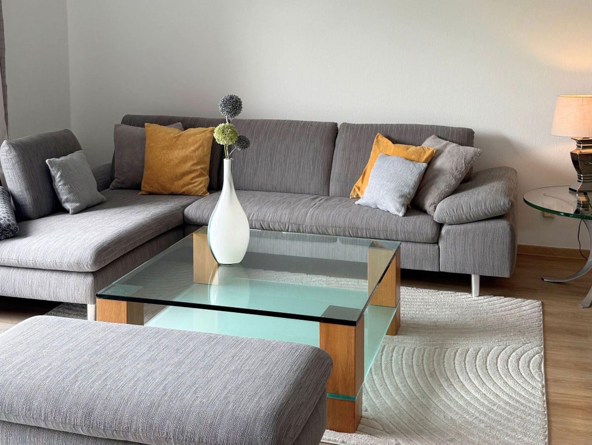 Der helle Wohnbereich mit gemütlicher Lounge und direktem Zugang zum südseitigen Balkon mit Blick ins Grüne lädt zum Verweilen ein. Auch das freundliche Schlafzimmer mit eigenem Balkon schafft Raum zum Durchatmen und Wohlfühlen.