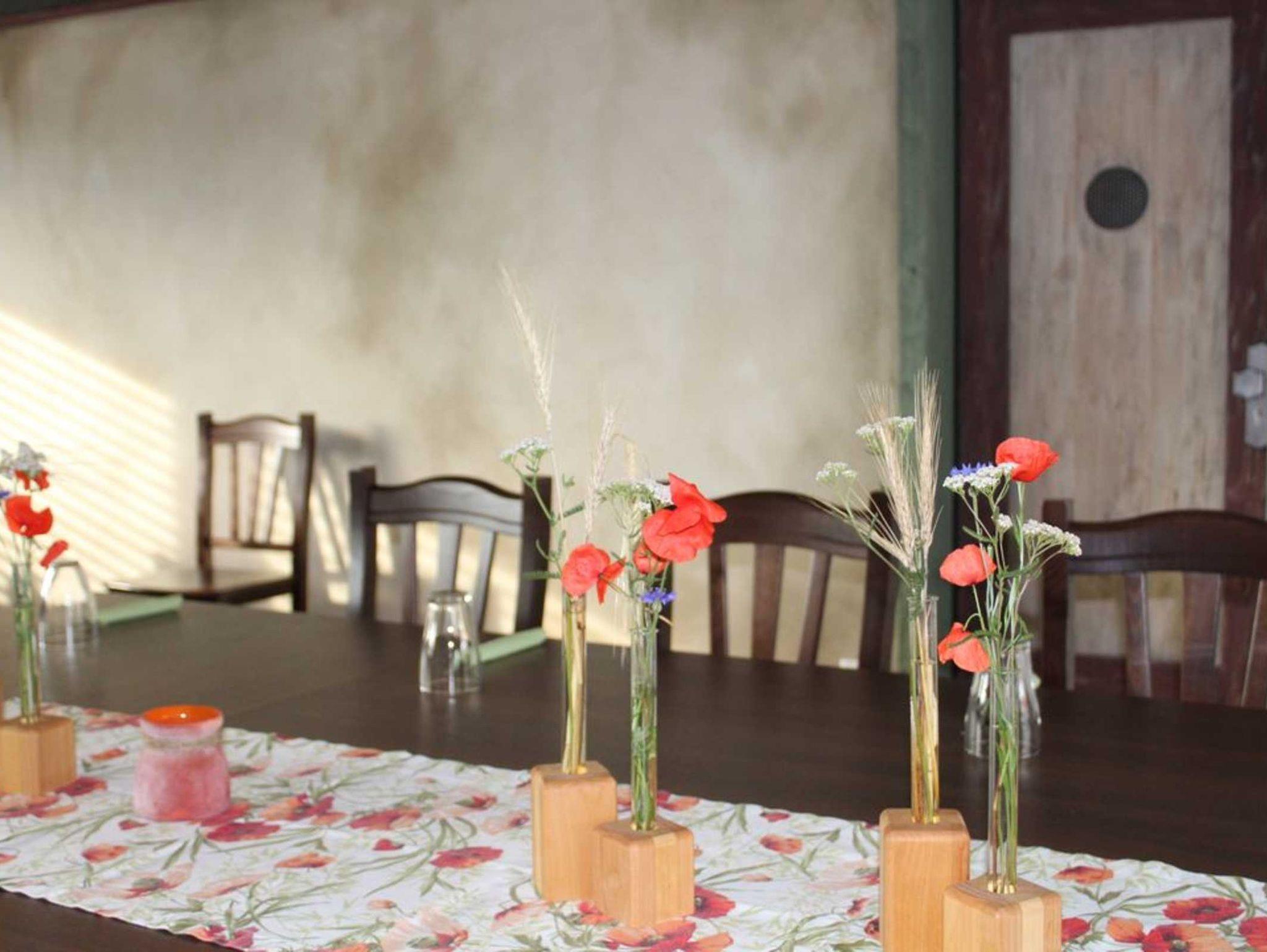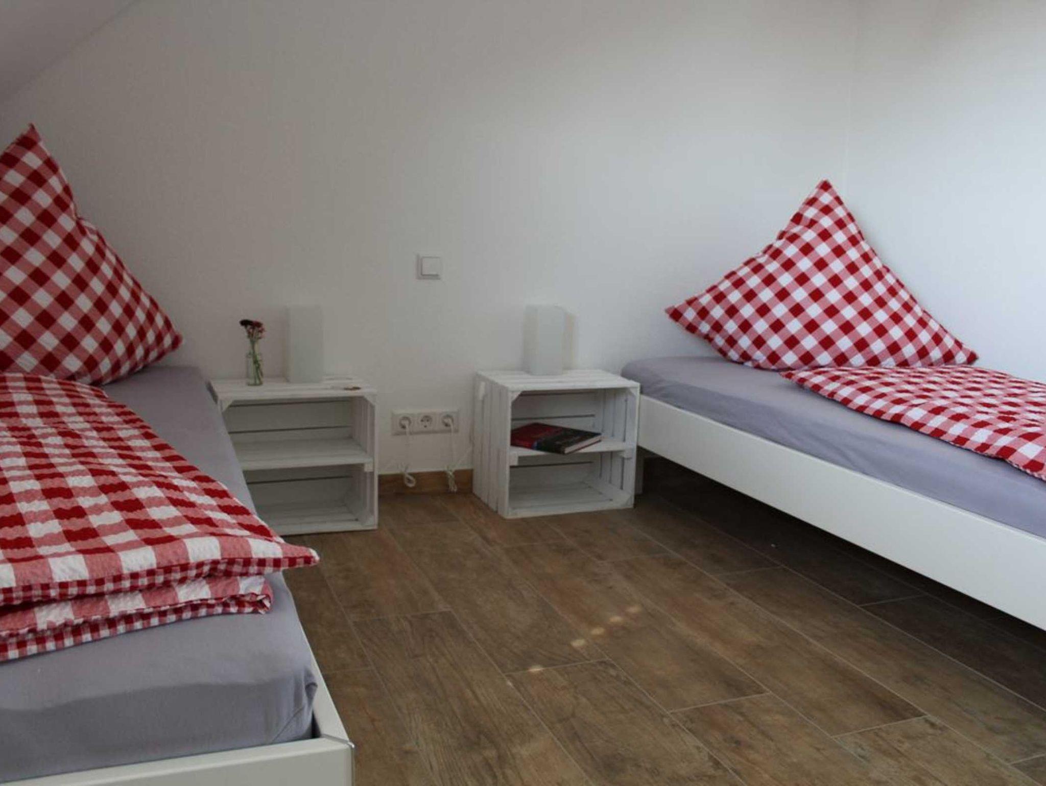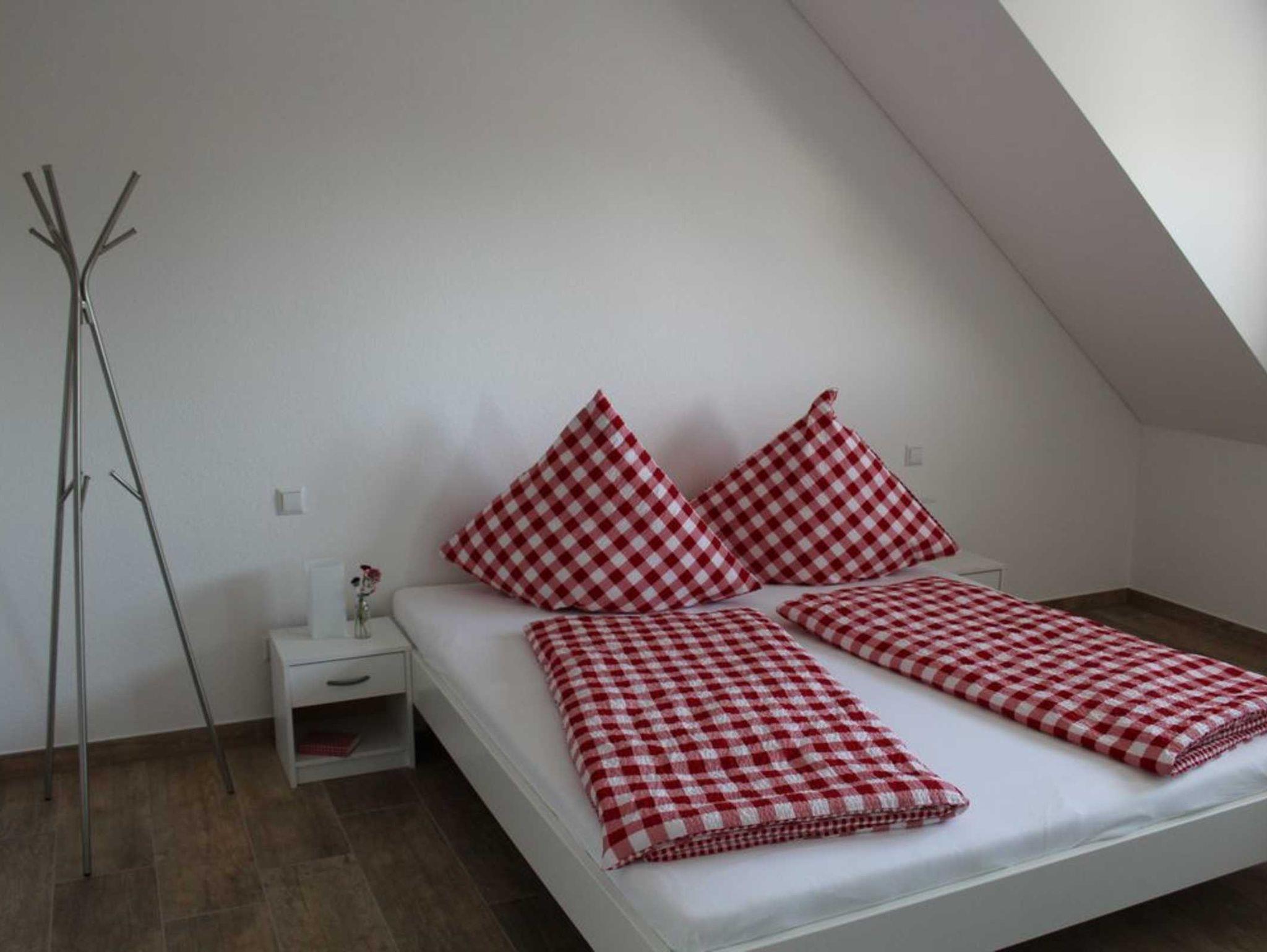 Neubau mit 2 hochwertigen Ferienwohnungen mit 75m² und 68m². Jede Wohnung ist für 4 Personen mit jeweils 2 Schlafzimmern, großem Wohn-/ Essbereich, Küche, Bad, Aufzug. Bettwäsche, Hand - und Duschtücher, Föhn, PKW-Stellplatz, Fahrradgarage, Kinderspielplatz, Grillstelle, Internetnutzung, TV + Sat, Waschmaschine, Küche mit Kühlschrank, Backofen, Kochfeld, Loggia mit Möbel. Außerdem ist im großen, 2017 fertiggestellten Haus ein Bewirtungsraum für bis zu 55 Personen und ein Hofladen enthalten. Neu erbaute Hofanlage mit Spielplatz und Parkplätzen.
