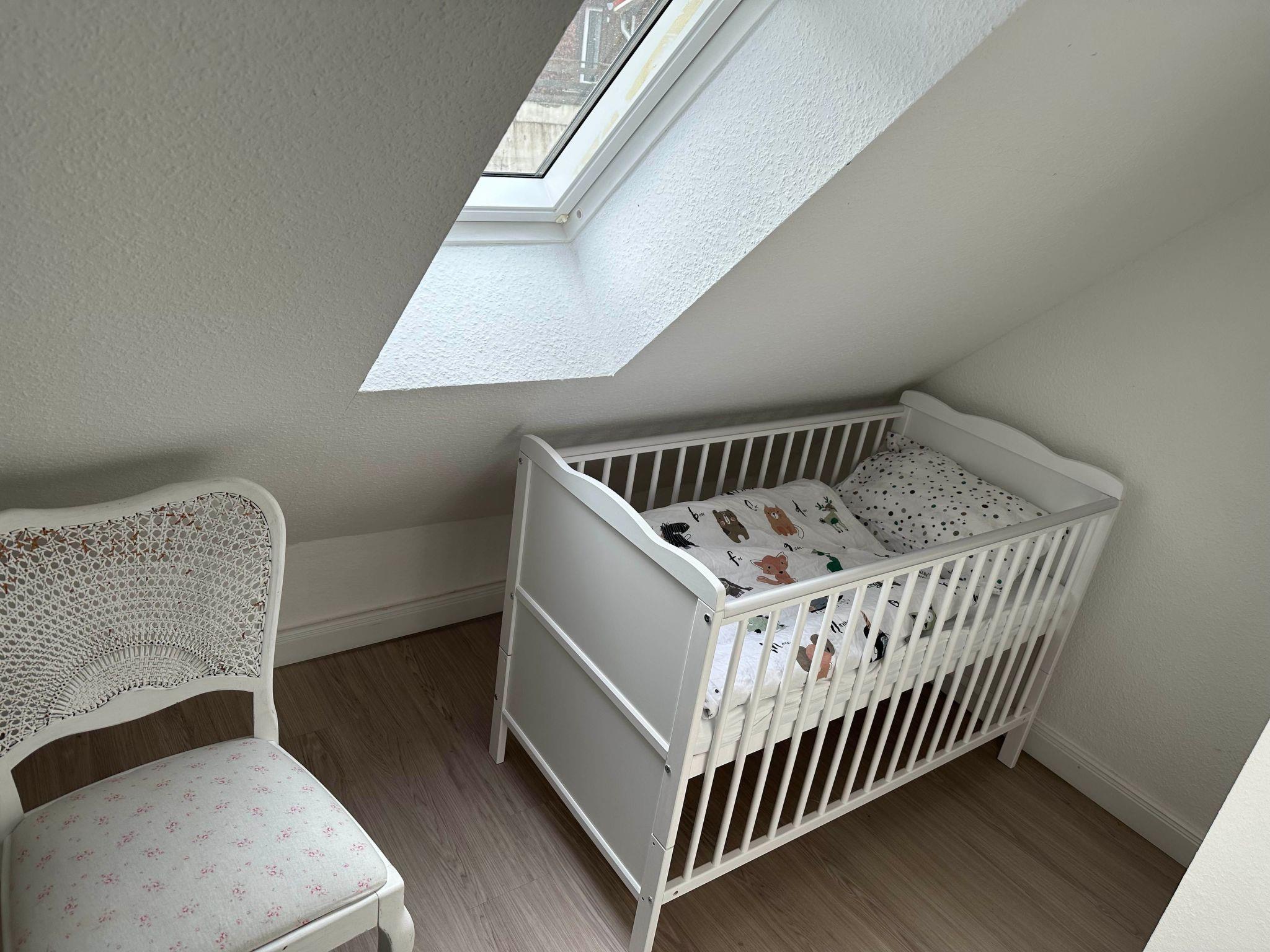 The interior is designed to make your stay as comfortable as possible. The flat on the upper floor offers two cosy rooms, including a living room with two sofa beds and a bedroom with a comfortable double bed. The dressing room next to the sleeping area offers additional comfort during your stay. The kitchen is fully equipped with everything you need to prepare your meals, including a ceramic hob, dishwasher, coffee machine and kettle.