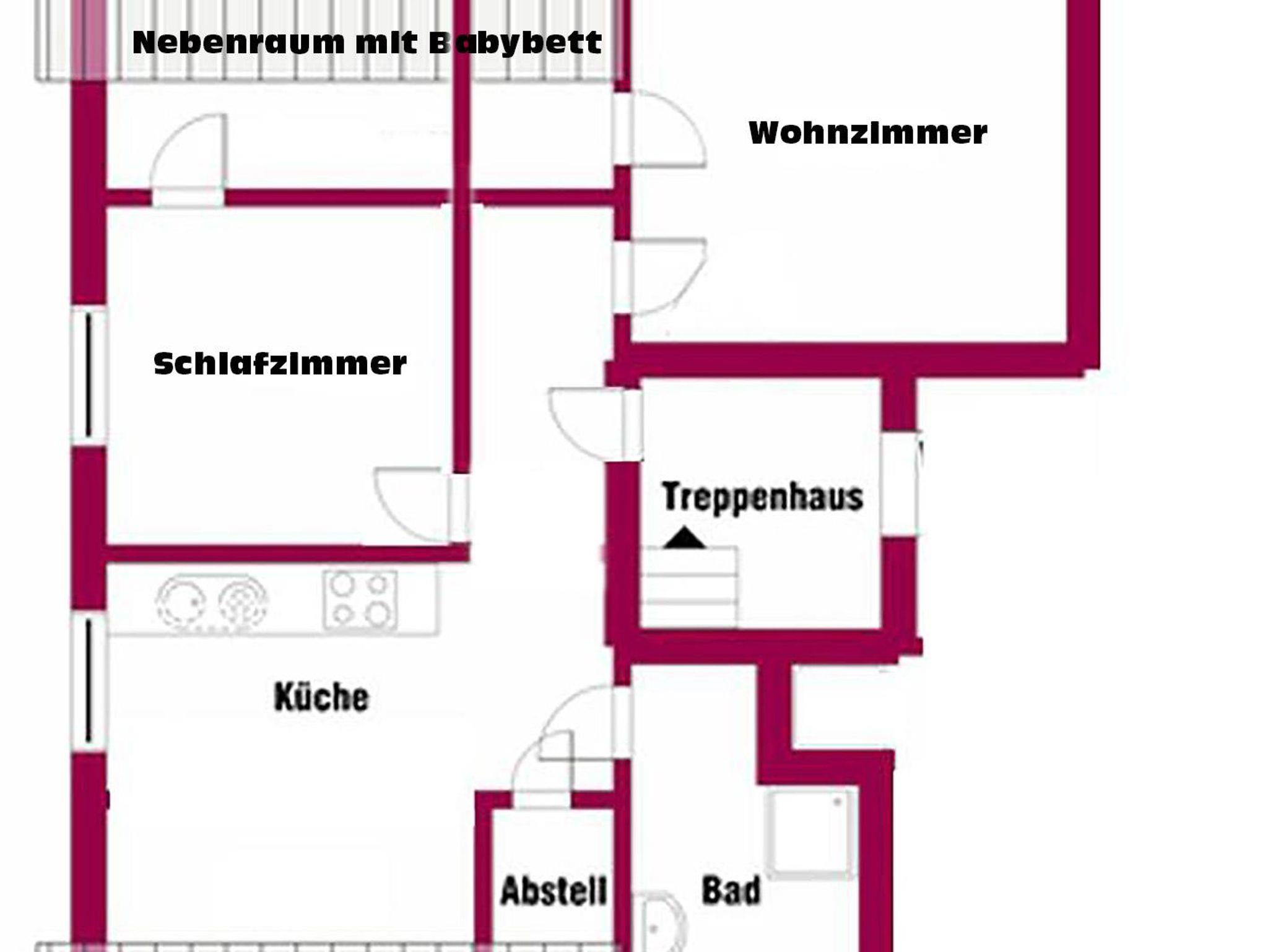 Die Wohnung verfügt über vier Schlafmöglichkeiten und ein Babybett. Ich empfehle sie aber besonders bei längeren Aufenthalten nur für zwei Personen mit Kleinkind. Größeren Gruppen empfehle ich die Anmietung mehrerer Wohnungen. Die Apartments Altstadt, Kalkberg, Fledermaus und Siegesburg befinden sich alle im selben Haus.