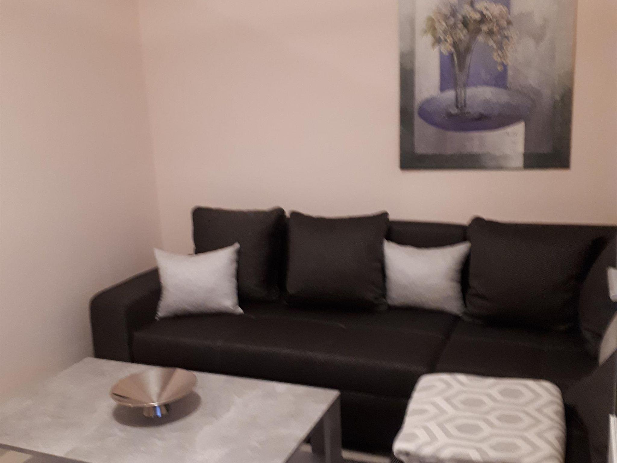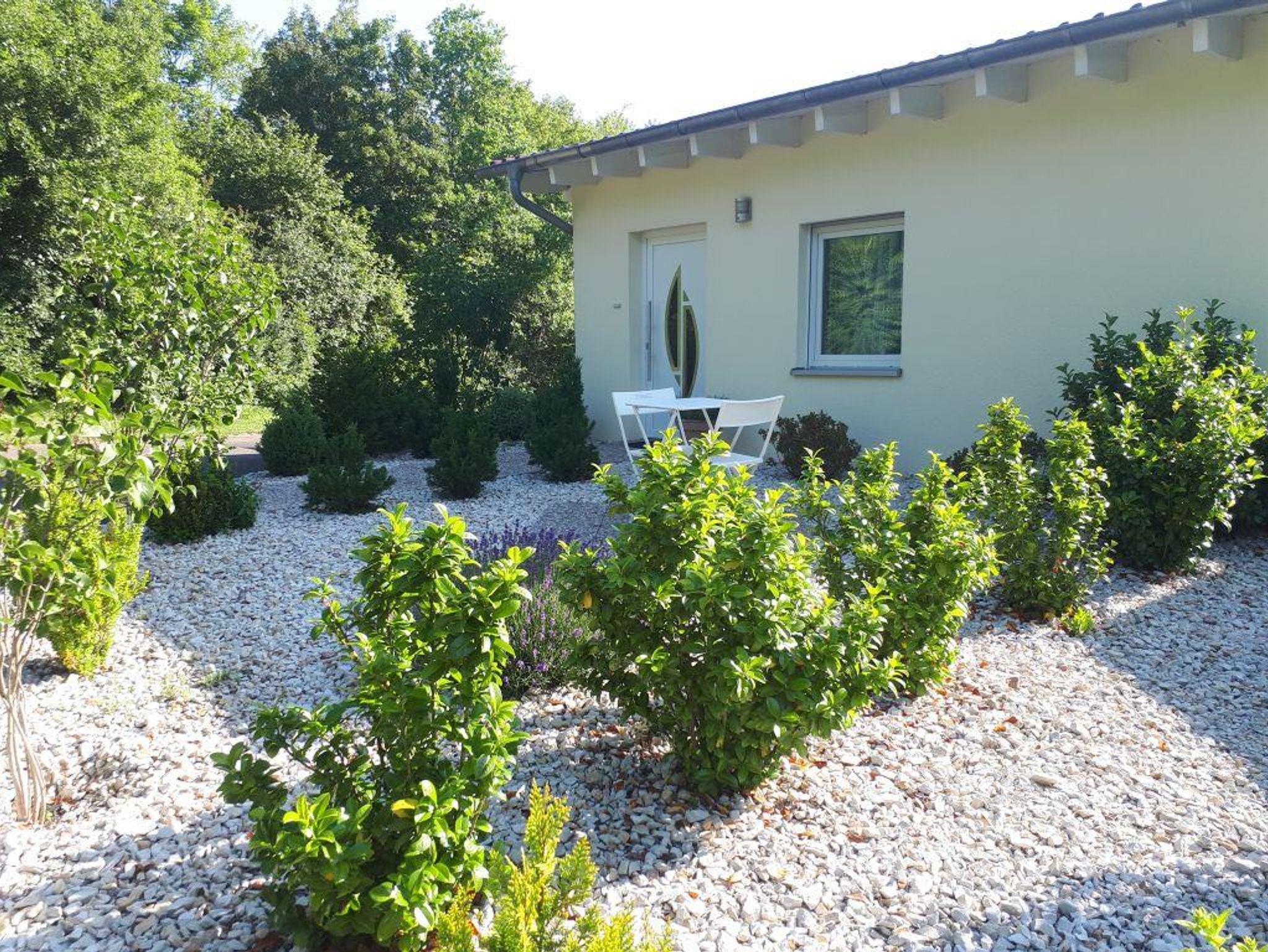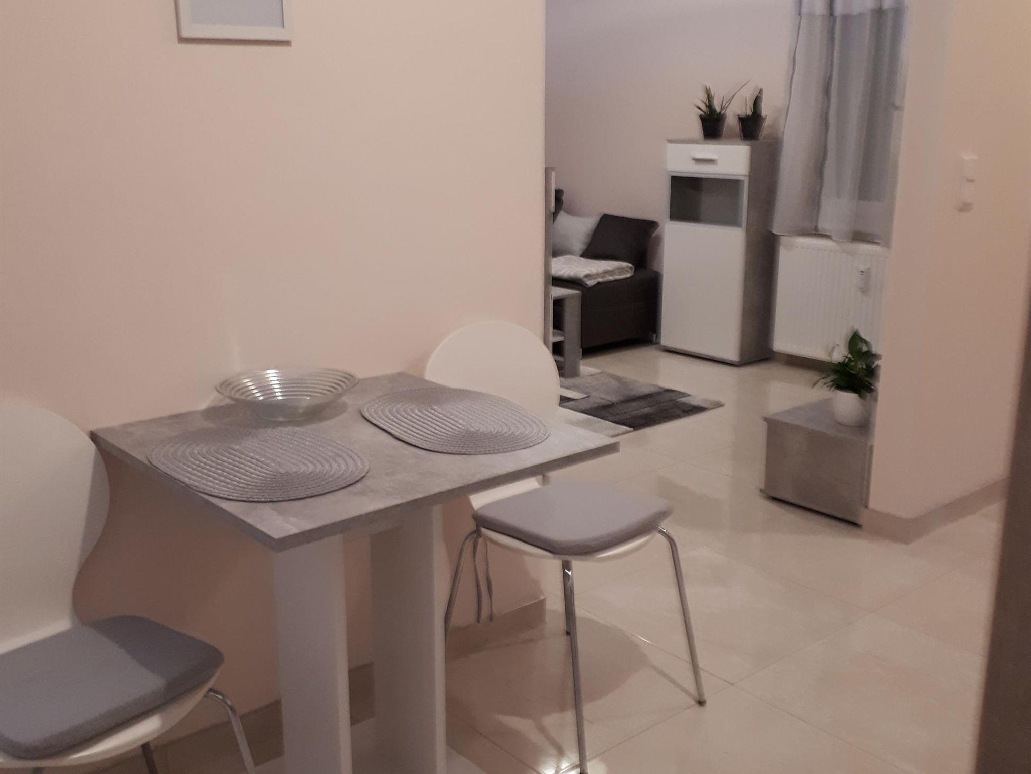 Wohnbereich mit Doppelschlafcouch und TV, Schlafbereich mit 1 Doppelbett sowie Kochnische und Bad mit Dusche und WC, WLAN Terrasse und Gartennutzung. Die Wohnung ist ohne Stufen barrierefrei zu erreichen.