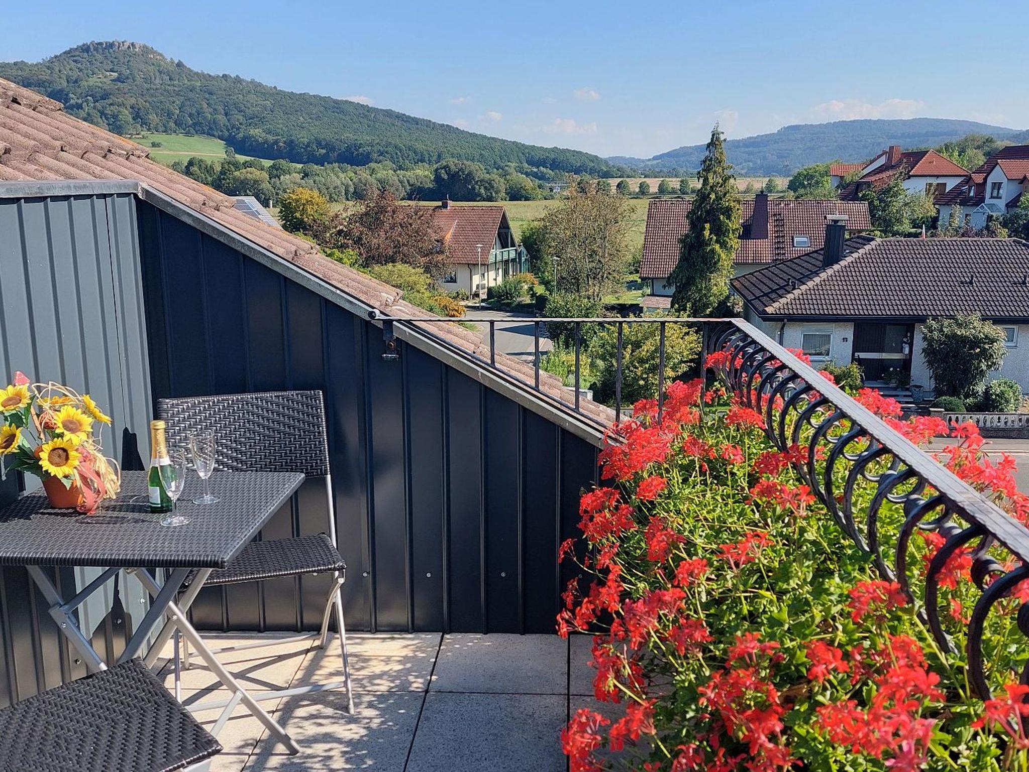 Die Ferienwohnung befindet sich im Dachgeschoss mit Ausblick auf den Staffelberg, Vierzehnheiligen und den Ansberg mit der Veitskapelle.