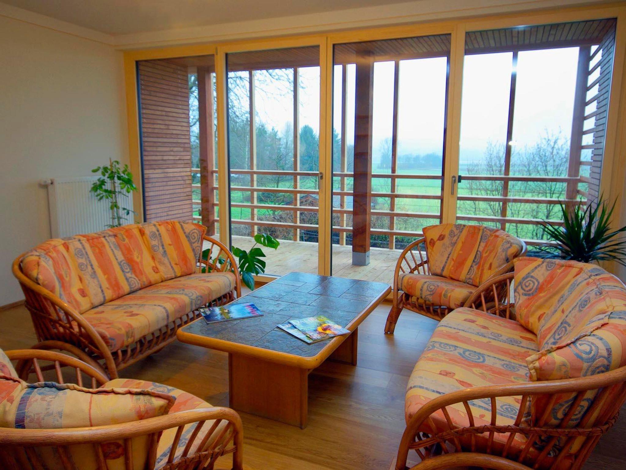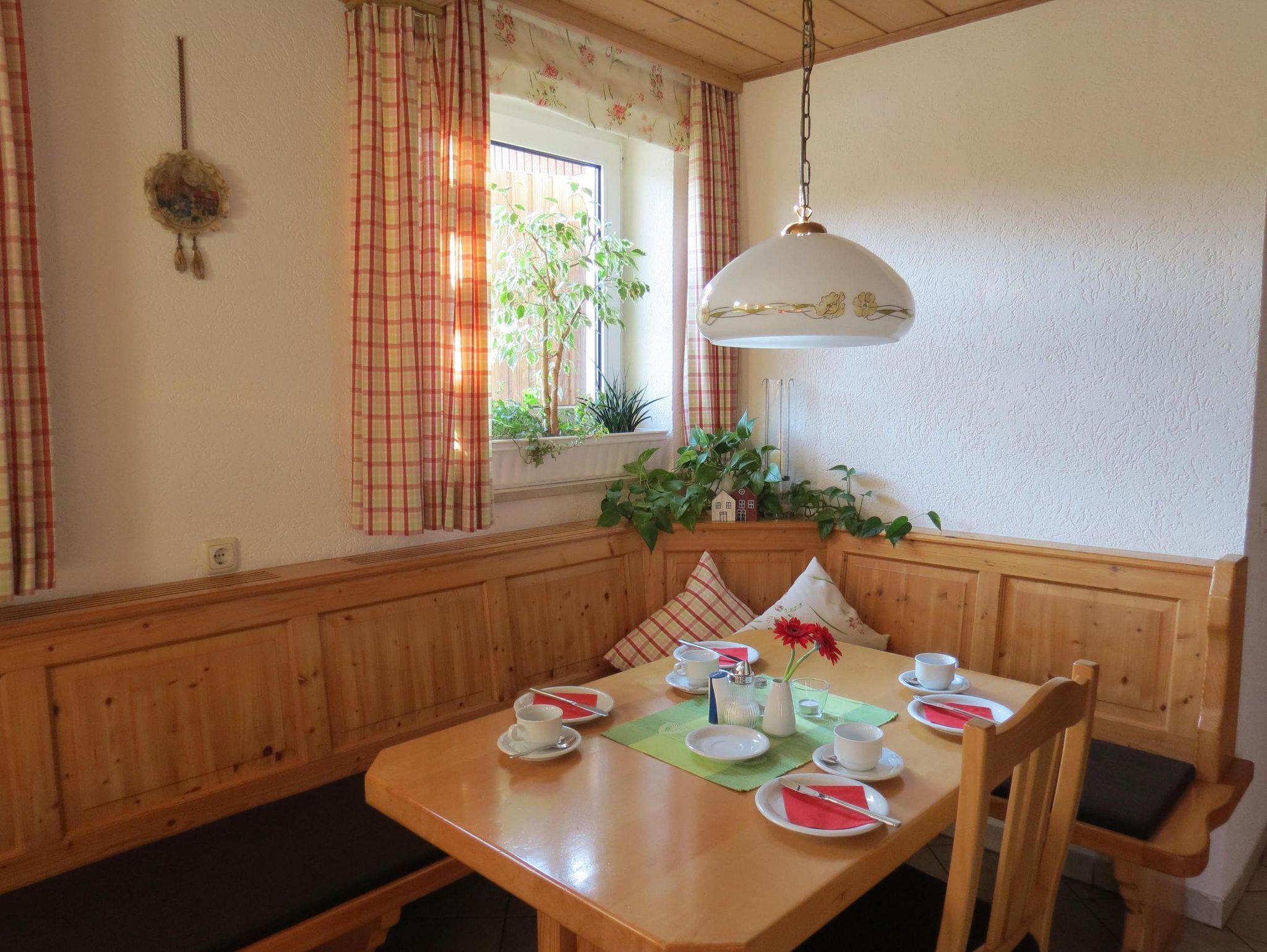 Der Tag beginnt mit einem abwechslungsreichen, reichhaltigen Frühstück vom Buffet mit regionalen und hofeigenen Produkten wie frischen Eiern und hausgemachten Marmeladen. Im Frühstücksraum steht Ihnen zudem eine voll ausgestattete Gästeküche zur freien Nutzung zur Verfügung. Ein Getränkekühlschrank mit alkoholfreien Getränken, regionalen Bieren und Franken-Weinen ergänzt das Angebot. Ein Aufenthalts- und Leseraum mit Panoramablick lädt zum Entspannen ein und ein Wasch- und Trockenraum steht für nasse Kleidung oder Badesachen bereit. Haustiere sind in der Pension nicht erlaubt.